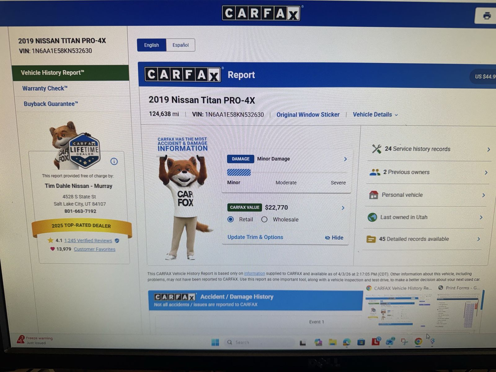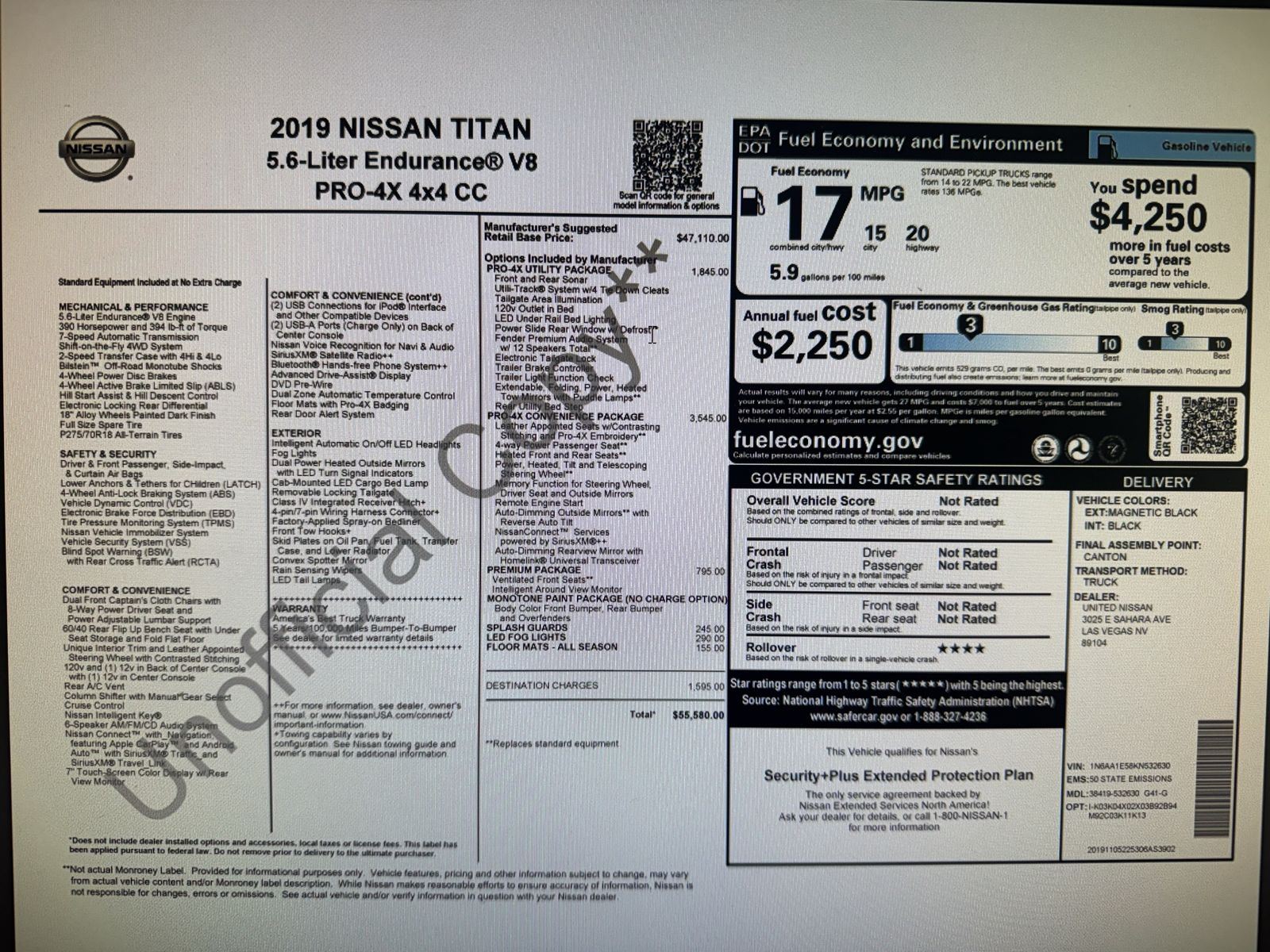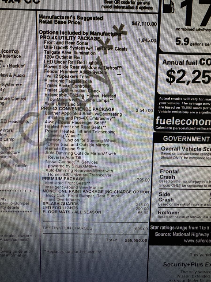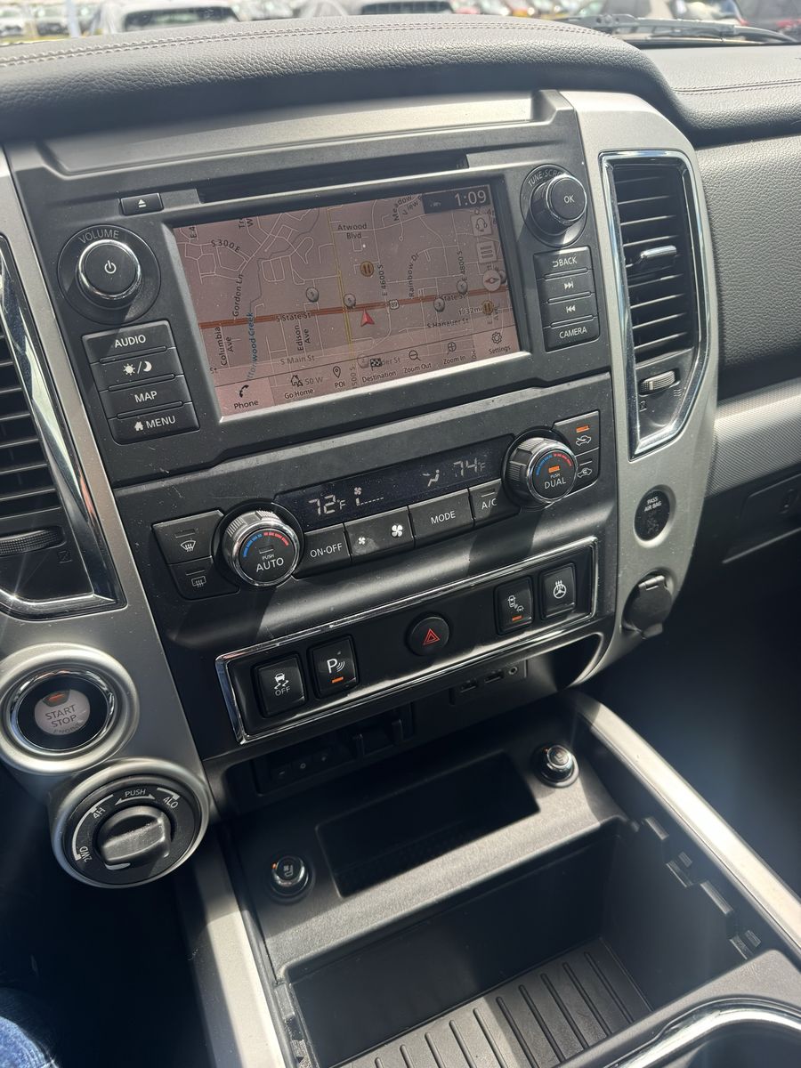 2019 Nissan Titan PRO4X 4X4 Crew Cab. Every available package. Loaded to the max and gorgeous. Black in black leather. Heated, cooled, memory, leather power seats. Navigation. 359W Rockford Fosgate Stereo. Remote start. Even the rear seats are heated. Smart key. Inverter. Factory spray in liner. 400 Horsepower Endurance V8 5.6 liter. 4 cameras all the way around the truck. Just gorgeous. Clean CarFax. No accidents. Clean title. Financing available. Trades welcome. Call or text Josh at 8O1-8nine8-6nineO1. Dl#1385