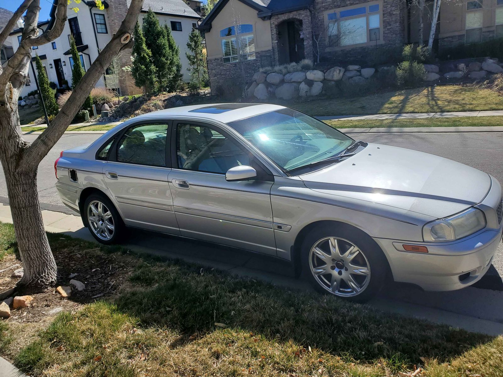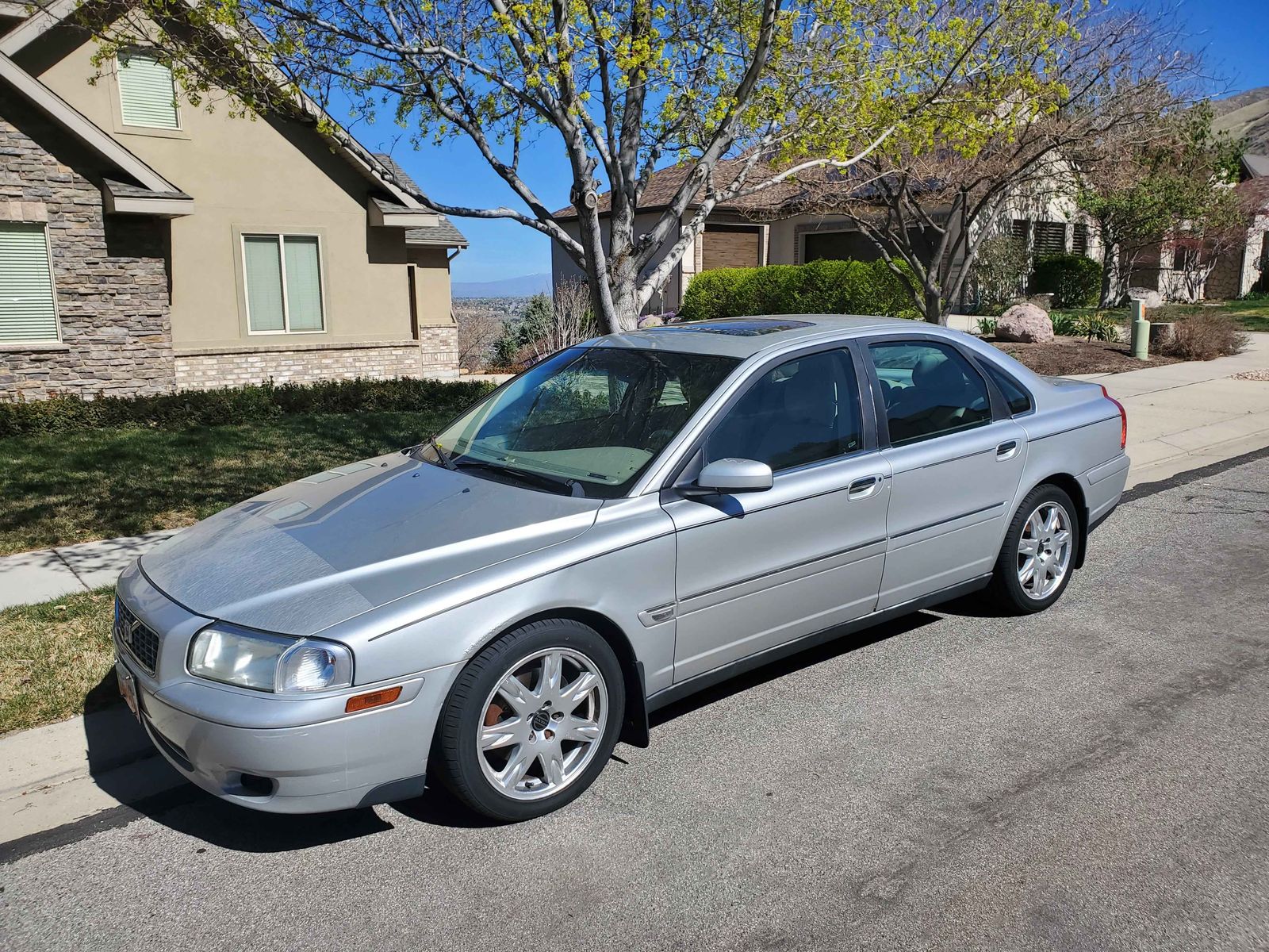 2004 Volvo S80 2.5T with two additional spare wheels and tires. Low mileage for age, runs well. Moderately worn interior. Minor damage above and behind passenger side rear wheel well. Gas cover broken off, but still have it. Body has some other minor dents and scratches.