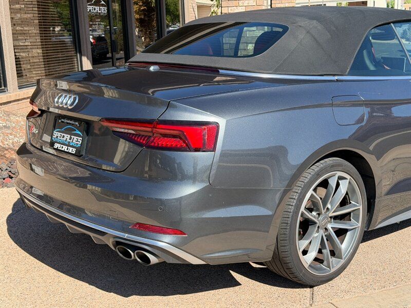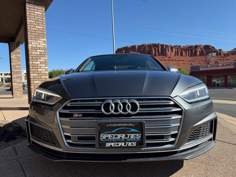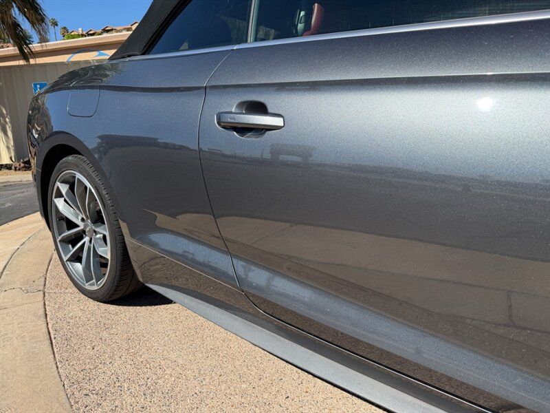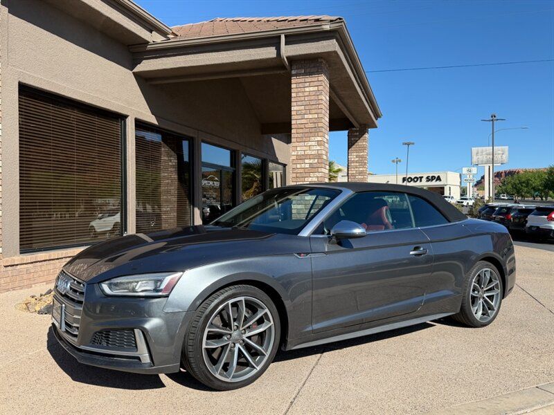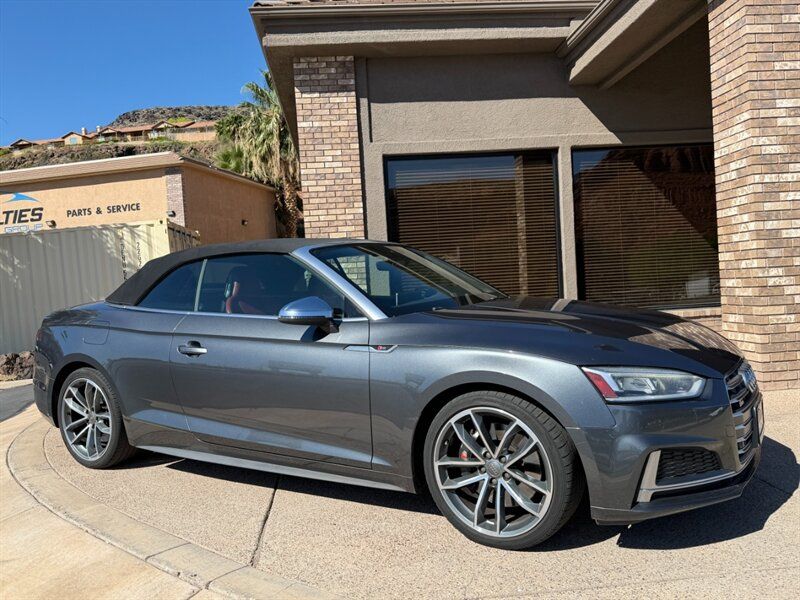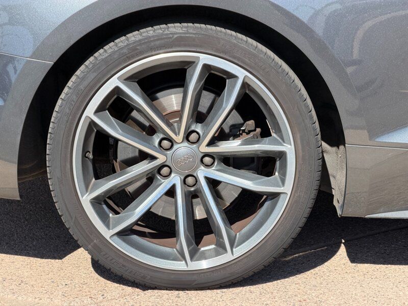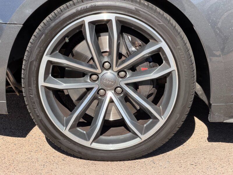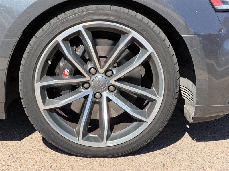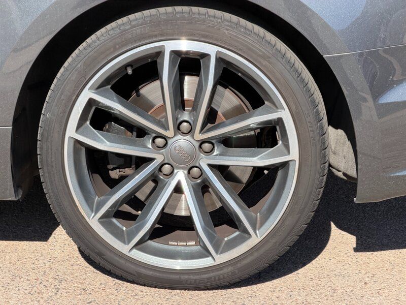 INSTALLED FEATURES: Air filtration, Front air conditioning: automatic climate control, Front air conditioning zones: dual, Rear air conditioning: automatic climate control / independently controlled, Rear air conditioning zones: single, Airbag deactivation: occupant sensing passenger, Front airbags: dual, Knee airbags: dual front, Side airbags: front / head protection chambers, Antenna type: diversity, Auxiliary audio input: Bluetooth / iPod/iPhone / jack / memory card slot / USB, Radio: AM/FM / HD radio / voice operated, Radio data system, Remote CD: DVD audio / single disc, Remote CD location: glove compartment, Satellite radio: SiriusXM, Speed sensitive volume control, Subwoofer: 1, Total speakers: 9, Watts: 180, ABS: 4-wheel, Brake drying, Braking assist, Electronic brakeforce distribution, Electronic parking brake: auto off, Emergency braking preparation, Front brake type: ventilated disc, Power brakes, Rear brake type: ventilated disc, Regenerative braking system, Armrests: rear center folding with storage and pass-thru / rear center with cupholders, Door sill trim: illuminated scuff plate / stainless steel, Floor mat material: carpet, Floor material: carpet, Floor mats: front / rear, Foot pedal trim: stainless steel, Interior accents: aluminum, Shift knob trim: alloy / leather, Steering wheel trim: leather, Ambient lighting, Cargo area light, Center console: front console with armrest and storage / illuminated, Courtesy lights: door, Cruise control, Cupholders: front / rear, Easy entry: power driver seat / power passenger seat, Footwell lights, Memorized settings: 2 driver / driver seat / side mirrors, Multi-function remote: panic alarm / proximity entry system / trunk release / vehicle and key memory, One-touch windows: 2, Overhead console: front, Power outlet(s): 12V cargo area / 12V front / 12V rear, Power steering: variable/speed-proportional, Power windows: lockout button, Push-button start, Reading lights: front, Rearview mirror: auto-dimming, Steering wheel: tilt and telescopic, Steering wheel mounted controls: audio / cruise control / multi-function / paddle shifter / phone / voice control, Storage: cargo tie-down anchors and hooks / cooled compartment / door pockets / front seatback / grocery bag holder, Universal remote transmitter: Homelink - garage door opener, Vanity mirrors: dual illuminating, Door handle color: body-color, Exhaust: quad tip, Exhaust tip color: chrome, Front bumper color: body-color, Grille color: chrome, Mirror color: aluminum, Rear bumper color: body-color, Rear spoiler: lip, Rear spoiler color: body-color, Rear trunk/liftgate: power operated, Window trim: aluminum, Connected in-car apps: Google POIs / Google search, Infotainment: Audi MMI Connect, Infotainment screen size: 8.3 in., Smartphone integration: Android Auto / Apple CarPlay, Clock, Compass, Digital odometer, External temperature display, Fuel economy display: MPG / range, Gauge: tachometer, Instrument cluster screen size: 4.2 in., Multi-function display, Trip odometer, Warnings and reminders: coolant temperature warning / lamp failure / low fuel level / low oil pressure / low washer fluid / maintenance due, Daytime running lights: LED, Exterior entry lights: approach lamps, Headlights: auto delay off / auto on/off / LED / wiper activated, Taillights: LED, Side mirror adjustments: power / power folding / reverse gear tilt, Side mirrors: auto-dimming / heated / integrated turn signals, 4WD type: full time, Alternator: 150 amps, Auto start/stop, Battery: maintenance-free, Battery rating: 420 CCA, Battery saver, Drive mode selector, Convertible rear window: glass, Convertible roof: power / soft top, Convertible roof wind blocker, Automatic emergency braking: front, Automatic hazard warning lights, Blind spot safety: sensor/alert, Camera system: rearview, Child seat anchors: LATCH system, Crumple zones: front / rear, Emergency interior trunk release, Impact sensor: door unlock / fuel cut-off / post-collision safety system, Parking sensors: front / rear, Pre-collision warning system: audible warning / visual warning, Rearview monitor: in dash, Rollover protection system, Emergency locking retractors: front / rear, Front seatbelts: 3-point, Rear seatbelts: 3-point, Seatbelt force limiters: front / rear, Seatbelt pretensioners: front / rear, Seatbelt warning sensor: front, Driver seat: heated, Driver seat power adjustments: 12 / 4-way power lumbar / height / reclining, Front headrests: 2 / adjustable, Front seat type: sport bucket, Passenger seat: heated, Passenger seat power adjustments: 12 / 4-way power lumbar / height / reclining, Rear headrests: 2 / adjustable, Rear seat folding: split, Rear seat type: 50-50 split bench, Upholstery: premium leather, Anti-theft system: alarm / perimeter alarm / vehicle immobilizer, Power door locks: anti-lockout / auto-locking, Hill holder control, Off-road driving assist: hill descent, Stability control, Traction control, Front shock type: gas, Front spring type: coil, Front stabilizer bar, Front struts, Front suspension classification: independent, Front suspension type: double ball joint, Rear shock type: gas, Rear spring type: coil, Rear stabilizer bar, Rear suspension classification: independent, Rear suspension type: multi-link, Tuned suspension: sport, Driver assistance app: roadside assistance, Electronic messaging assistance: voice operated / with read function, Hands-free phone call integration: voice operated, Smart device app compatibility: myAudi with Audi connect, Wireless data link: Bluetooth, Spare tire mount location: inside, Spare tire size: temporary, Spare wheel type: steel, Tire Pressure Monitoring System, Wheel spokes: 10, Wheels: aluminum alloy, Front wipers: rain sensing / speed sensitive / variable intermittent, Heated windshield washer jet