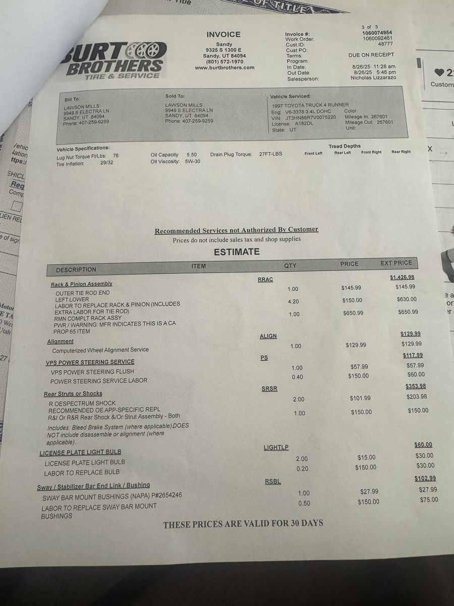 Been a great daily driver, everything mechanically works great very smooth ride. Have done some recent repairs such as Valve cover gasket, new rack and pinion assembly, new power steering pump, transmission fluid flush and new brakes in the front. Receipts to prove every repair we’ve done. Truck is overall really clean and a smooth drive.