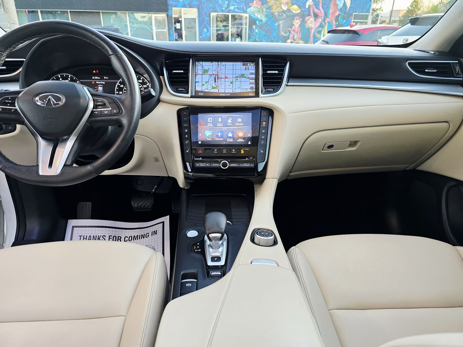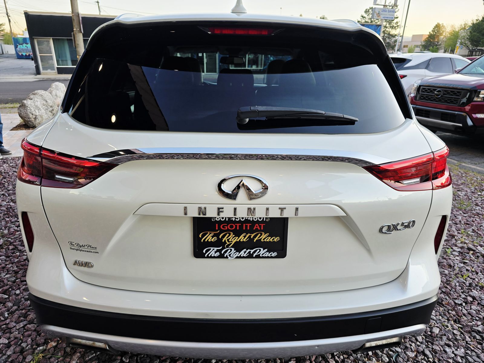 BEAUTIFUL PEARL WHITE AND SUPER CLEAN 2019 INFINITI QX50 (AWD) WITH LOW ONLY 52000 MILES AND EQUIPPED WITH NAVIGATION SYSTEM, BACK UP CAMERA, PANAROMIC SUNROOF, POWER LEATHER SEAT, HEATED SEAT, PWR WINDOW, MIRROR AND DOOR LOCK, ICE COLD AC, ADAPTIVE CRUISE CONTROL, BLIND SPOT MONITOR, LANE ASSIST, COLLISION WARNING, LED HEADLIGHT, ALLOY WHEELS WITH NEW TIRES, LUGGAGE RACK AND MUCH MORE... MUST SEE PLEASE CALL 801-450-4601 OR VISIT OUR WEBSITE AT www.therightplaceauto.com FOR MORE INFO THANKS