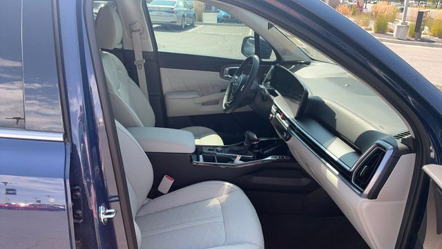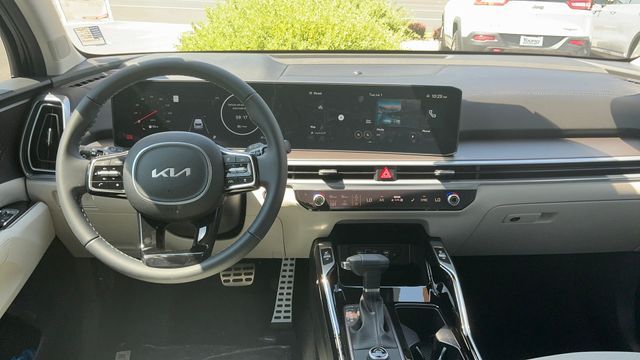 Inside, the Sorento SX elevates the experience with upscale materials and advanced connectivity. A 12.3-inch digital instrument cluster, 12.3-inch touchscreen, integrated navigation, Apple CarPlay, and Android Auto create a seamless, intuitive tech environment. Premium features such as leather trimmed seats, heated and ventilated front seats, a panoramic sunroof, and customizable ambient lighting add comfort and sophistication.