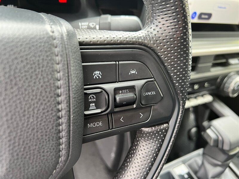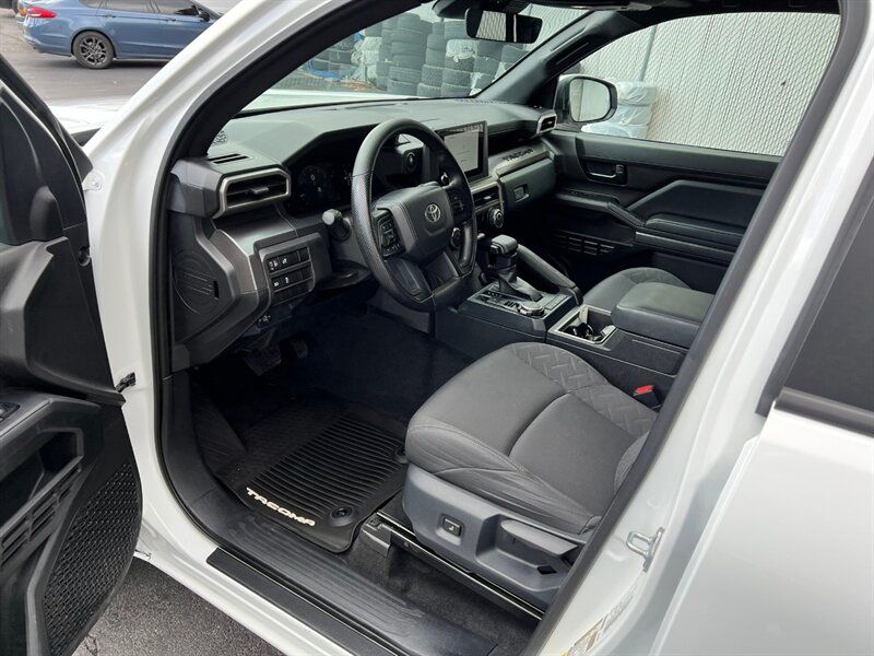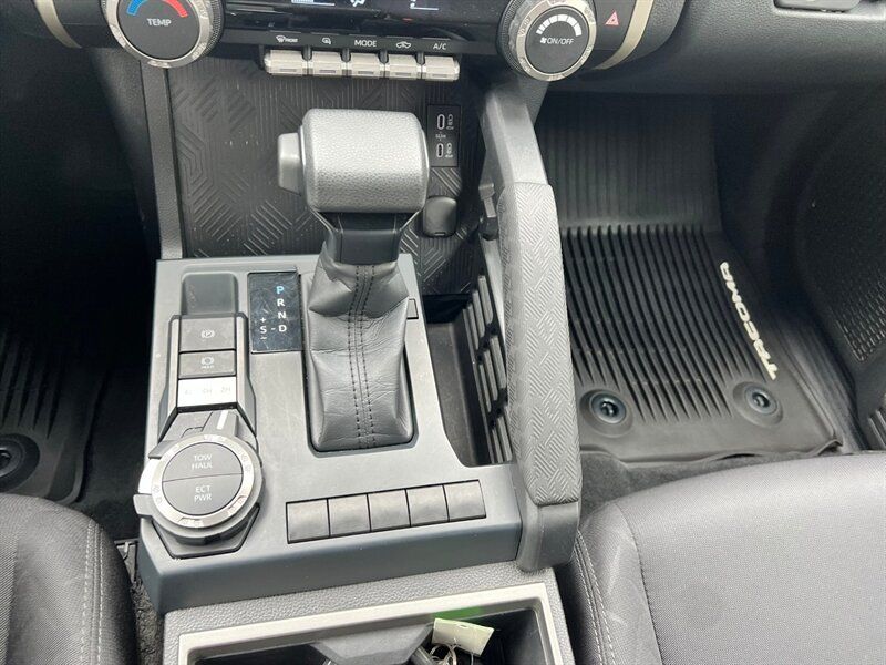 INSTALLED FEATURES: Air filtration, Front air conditioning, Front air conditioning zones: single, Rear vents: second row, Airbag deactivation: occupant sensing passenger, Front airbags: dual, Knee airbags: dual front, Side airbags: front, Side curtain airbags: front / rear, Antenna type: diversity / mast, Auxiliary audio input: Bluetooth / iPod/iPhone / USB, Radio: AM/FM / HD radio / touch screen display / voice operated, Radio data system, Satellite radio: SiriusXM, Speed sensitive volume control, Total speakers: 6, ABS: 4-wheel, Braking assist, Electronic brakeforce distribution, Electronic parking brake: auto off, Emergency braking preparation, Front brake type: ventilated disc, Power brakes, Rear brake type: ventilated disc, Floor material: carpet, Shift knob trim: urethane, Steering wheel trim: urethane, Adaptive cruise control, Adaptive stop and go cruise control: semi-automatic, Assist handle: passenger side / rear, Autonomous lane guidance: lane centering, Center console: front console with armrest and storage, Cupholders: front / rear, Multi-function remote: panic alarm / proximity entry system, One-touch windows: 2, Overhead console: front, Power outlet(s): 12V front / 12V rear / USB-C front, Power steering: variable/speed-proportional, Power windows: lockout button, Push-button start, Reading lights: front / rear, Rearview mirror: auto-dimming, Steering wheel: tilt and telescopic, Steering wheel mounted controls: audio / cruise control / multi-function / phone / voice control, Storage: accessory hook / door pockets / front seatback / grocery bag holder / sunglasses holder / under rear seats, Sun visors, Door handle color: body-color, Fender lip moldings: body-color, Front bumper color: body-color, Grille color: black / body-color surround, Mirror color: body-color, Pickup bed light, Rear bumper color: body-color, Rocker panel color: body-color, Tailgate: removable, Window trim: black, Connected in-car apps: Google POIs / Google search, Infotainment: Toyota Audio Multimedia, Infotainment screen size: 8 in., Smartphone integration: wireless Android Auto / wireless Apple CarPlay, Clock, Digital odometer, External temperature display, Fuel economy display: MPG / range, Gauge: boost / tachometer, Instrument cluster screen size: 7 in., Multi-function display, Trip odometer, Warnings and reminders: coolant temperature warning / lamp failure / low fuel level / low oil pressure / maintenance due, Daytime running lights: LED, Front fog lights: LED, Headlights: auto delay off / auto high beam dimmer / auto on/off / LED / manual leveling / wiper activated, Taillights: LED, Side mirror adjustments: manual folding / power, Side mirrors: heated, 4WD selector: electronic hi-lo, 4WD type: part time, Alternator: 130 amps, Auto start/stop, Auxiliary transmission fluid cooler, Battery: maintenance-free, Battery saver, Drive mode selector, Active head restraints: dual front, Automatic emergency braking: front / front pedestrian / intersection/junction cross / intersection/junction turn, Blind spot safety: sensor/alert, Camera system: rearview, Check rear seat reminder, Child safety door locks, Child seat anchors: LATCH system, Cross traffic alert: rear, Driver attention alert system, Impact sensor: alert system / door unlock / fuel cut-off / post-collision safety system, Lane deviation sensors, Lane keeping assist, Pre-collision warning system: audible warning / intersection/junction cross / intersection/junction turn / pedestrian detection / visual warning, Rearview monitor: in dash, Safety brake pedal system, Traffic sign recognition, Emergency locking retractors: front / rear, Front seatbelts: 3-point, Rear seatbelts: 3-point, Seatbelt force limiters: front, Seatbelt pretensioners: front / rear, Seatbelt warning sensor: front, Driver seat manual adjustments: 6 / height / reclining, Driver seat power adjustments: lumbar, Front headrests: 2 / adjustable, Front seat type: bucket, Passenger seat manual adjustments: 6 / height / reclining, Rear headrests: 3 / adjustable / foldable, Rear seat folding: folds up / split, Rear seat type: 60-40 split bench, Upholstery: cloth, Anti-theft system: alarm / vehicle immobilizer, Power door locks: anti-lockout / auto-locking, Hill holder control, Stability control, Traction control, Trailer stability control, Front shock type: twin-tube gas, Front spring type: coil, Front stabilizer bar, Front struts, Front suspension classification: independent, Front suspension type: double wishbone, Rear shock type: twin-tube gas, Rear spring type: coil, Rear stabilizer bar, Rear suspension classification: solid live axle, Rear suspension type: multi-link, Driver assistance app: roadside assistance, Electronic messaging assistance: voice operated / with read function, Hands-free phone call integration: voice operated, Smart device app compatibility: Toyota Connected Services, Smart device app function: maintenance scheduling / maintenance status / security event/collision alert / vehicle location, Wi-Fi: hotspot, Wireless data link: Bluetooth, Pickup bed cargo management: adjustable tie-down anchors, Tow hooks: front, Trailer backup guidance, Trailer hitch: Class IV, Trailer wiring: 4-pin / 7-pin, Spare tire mount location: underbody, Spare tire size: full-size, Spare wheel type: steel, Tire Pressure Monitoring System, Wheels: painted aluminum alloy, Front wipers: variable intermittent, Pickup sliding rear window: manual, Power windows: safety reverse, Rear privacy glass, Window defogger: rear