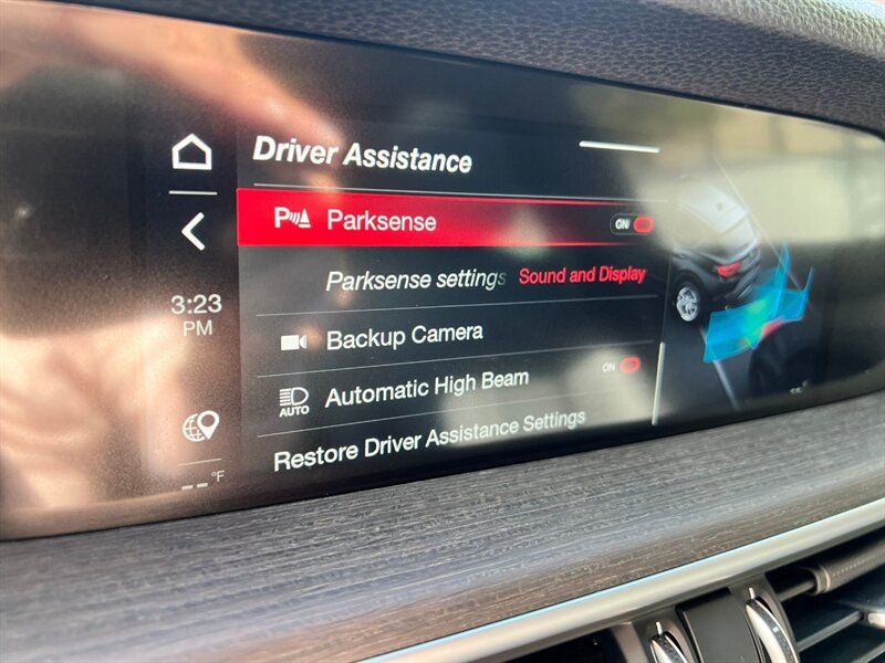 INSTALLED FEATURES: Air filtration, Front air conditioning: automatic climate control, Front air conditioning zones: dual, Humidity/dewpoint sensors, Rear vents: second row, Airbag deactivation: occupant sensing passenger, Front airbags: dual, Knee airbags: dual front, Side airbags: front, Side curtain airbags: front / rear, Antenna type: diversity / mast, Auxiliary audio input: Bluetooth / iPod/iPhone / jack / memory card slot / USB, Radio: AM/FM / HD radio / touch screen display / voice operated, Radio data system, Remote control: audio, Satellite radio: SiriusXM, Speed sensitive volume control, Total speakers: 8, ABS: 4-wheel, Braking assist, Electronic brakeforce distribution, Electronic parking brake: auto off, Front brake type: ventilated disc, Painted brake calipers, Power brakes, Premium brakes: Brembo, Rear brake type: ventilated disc, Armrests: rear center with cupholders / rear folding, Cargo area floor mat: carpet, Center console trim: aluminum / wood, Door sill trim: chrome, Floor mat material: carpet, Floor material: carpet, Floor mats: front / rear, Foot pedal trim: aluminum, Heated steering wheel, Interior accents: wood, Shift knob trim: leather, Steering wheel trim: leather, Adaptive cruise control, Adaptive stop and go cruise control: semi-automatic, Ambient lighting, Assist handle: front / rear, Cargo area light, Cargo cover: retractable, Center console: front console with armrest and storage / organizer tray, Courtesy lights: door, Cupholders: front / rear, Easy entry: power driver seat, Footwell lights, Memorized settings: 3 driver / driver seat / liftgate, Multi-function remote: panic alarm / proximity entry system / trunk release, One-touch windows: 4, Power outlet(s): 115V front / 12V front / USB front / USB rear, Power steering: variable/speed-proportional, Power windows: lockout button, Push-button start, Reading lights: front / rear, Rearview mirror: auto-dimming, Remote engine start, Steering wheel: tilt and telescopic, Steering wheel mounted controls: audio / cruise control / multi-function / phone / voice control, Storage: accessory hook / bin / cargo net / door pockets / front seatback / in dash, Universal remote transmitter: garage door opener, Vanity mirrors: dual illuminating, Wireless charging station: front, Door handle color: body-color, Exhaust: dual tip, Exhaust tip color: black, Front bumper color: body-color, Grille color: black / chrome surround, Mirror color: body-color, Rear bumper color: body-color, Rear spoiler: roofline, Rear spoiler color: body-color, Rear trunk/liftgate: liftgate / power operated / sensor-activated, Rocker panel color: black, Window trim: black, Connected in-car apps: Google POIs / Google search, Infotainment screen size: 8.8 in., Smartphone integration: Android Auto / Apple CarPlay, Clock, Compass, Customizable instrument cluster, Digital odometer, External temperature display, Fuel economy display: MPG / range, Gauge: tachometer, Instrument cluster screen size: 7 in., Multi-function display, Trip odometer, Warnings and reminders: coolant temperature warning / lamp failure / low battery / low fuel level / low oil pressure / low washer fluid / maintenance due, Daytime running lights: LED, Exterior entry lights: approach lamps, Headlight cleaners, Headlights: auto delay off / auto high beam dimmer / auto on/off / HID/Xenon, Rear fog lights, Taillights: LED, Side mirror adjustments: power / power folding, Side mirrors: auto-dimming / heated / integrated turn signals, 4WD type: on demand, Alternator: 180 amps, Auto start/stop, Battery: maintenance-free, Battery saver, Drive mode selector, Emissions: 50 state, Moonroof / Sunroof: anti-trapping / one-touch open/close / power panoramic / power sunshade / tilt/slide, Rear moonroof / sunroof: fixed glass, Roof rails: black, Automatic emergency braking: front / front pedestrian, Automatic hazard warning lights, Blind spot safety: sensor/alert, Camera system: rearview, Child safety door locks, Child seat anchors: LATCH system, Cross traffic alert: rear, Crumple zones: front / rear, Impact sensor: fuel cut-off, Lane deviation sensors, Parking sensors: front / rear, Pre-collision warning system: audible warning / pedestrian detection / visual warning, Rearview monitor: in dash, Emergency locking retractors: front / rear, Front seatbelts: 3-point, Rear seatbelts: 3-point, Seatbelt force limiters: front, Seatbelt pretensioners: front / rear, Seatbelt warning sensor: front, Driver seat: heated, Driver seat power adjustments: 4-way power lumbar / 6 / height / reclining, Front headrests: 2 / adjustable, Front seat type: bucket, Passenger seat: heated, Passenger seat power adjustments: 4-way power lumbar / 6 / height / reclining, Rear headrests: 3 / adjustable, Rear seat: heated, Rear seat folding: split, Rear seat type: 40-20-40 split bench, Upholstery: leather, Anti-theft system: alarm / vehicle immobilizer, Power door locks: anti-lockout / auto-locking, Hill holder control, Off-road driving assist: hill descent, Stability control, Traction control, Front shock type: monotube, Front spring type: coil, Front stabilizer bar, Front struts, Front suspension classification: independent, Front suspension type: double wishbone, Rear shock type: monotube, Rear spring type: coil, Rear stabilizer bar, Rear suspension classification: independent, Rear suspension type: multi-link, Driver assistance app: roadside assistance, Electronic messaging assistance: voice operated / with read function, Hands-free phone call integration: voice operated, Navigation system: touch screen display / voice operated, Smart device app compatibility: SiriusXM Guardian, Wireless data link: Bluetooth, Spare tire kit: inflator kit / tire sealant, Tire Pressure Monitoring System, Wheels: aluminum alloy with painted accents, Front wipers: rain sensing / speed sensitive / variable intermittent, Heated windshield washer jets, Laminated glass: acoustic windshield / infrared-reflecting windshield, Liftgate window: fixed, Power w