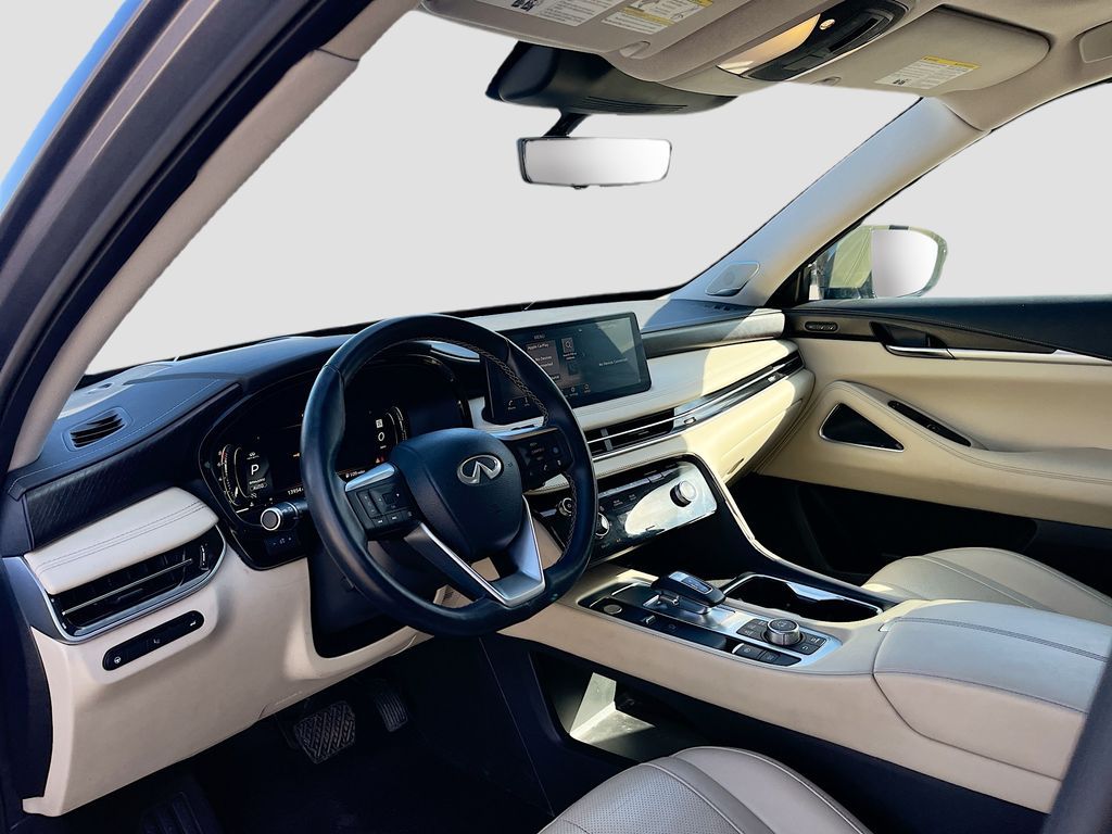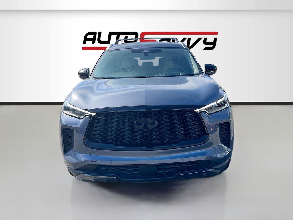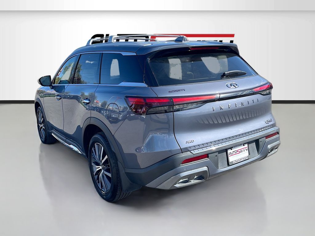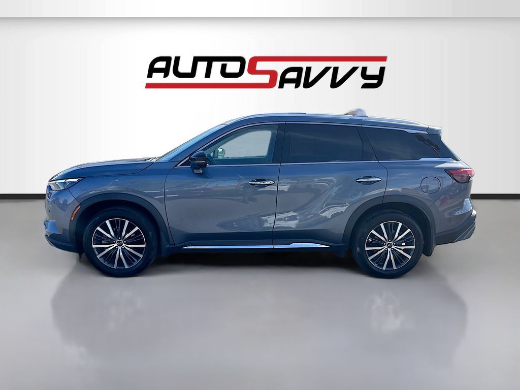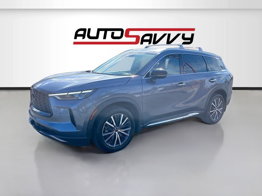 Discover the 2023 INFINITI QX60 SENSORY AWD at AutoSavvy Las Vegas, a luxurious SUV designed for those who demand excellence. With its striking Moonbow Blue exterior and sophisticated Sandstone leather interior, this vehicle is a true standout. Powered by a robust VQ 3.5L V-6 engine that delivers an impressive 295 horsepower, this SUV offers both power and efficiency, achieving up to 25 MPG on the highway. With only 13,803 miles, it promises a nearly new driving experience. The QX60 is equipped with a suite of premium features, including a 10.8-inch Head-Up Display, Bose Performance Series 17-Speaker Sound System, and climate-controlled front bucket seats. Advanced technology features like Apple CarPlay, Android Auto, and a navigation system ensure you stay connected on every journey. The current status of the title is branded, reflecting AutoSavvy's commitment to transparency and integrity. This vehicle is Savvy Certified, providing peace of mind with our 4-month/4,500 Mile Warranty. At AutoSavvy Las Vegas, we are dedicated to offering exceptional vehicles and outstanding customer service. Whether you're navigating city streets or embarking on a family adventure, the 2023 INFINITI QX60 SENSORY AWD delivers the perfect combination of luxury, performance, and cutting-edge technology. Visit us today to experience this remarkable SUV and elevate your driving experience.