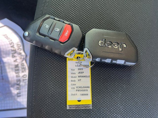 Discover the thrill of off-road adventure in the 2023 Jeep Wrangler Sport S. This exceptional SUV combines rugged capability, modern technology, and refined style to deliver an unparalleled driving experience.- CLEAN CARFAX, ONE OWNER- GREAT MILES FOR THE YEAR- ORIGINAL MSRP $45,335- Quick Order Package 22S Sport S- Technology Group- Trailer Tow & Aux Switch Group- 8.4 Radio & Premium Audio Group- Alpine Premium Audio System- Air Conditioning with Auto Temperature Control- Remote Keyless Entry- Security Alarm- 4G LTE Wi-Fi Hot Spot- GPS Navigation- ParkView Rear Back-Up CameraPowered by a potent 2.0L I4 DOHC DI Turbo engine paired with an 8-Speed Automatic transmission, this Wrangler Sport S offers impressive performance and efficiency, with an EPA-estimated 22 city/24 highway MPG. The advanced 4WD system and Selec-Speed Control provide exceptional off-road capability, while the Black 3-Piece Hard Top adds a touch of rugged style.Inside, the Wrangler Sport S is equipped with a host of premium features, including an 8.4 Uconnect 4C Nav touchscreen display, Apple CarPlay and Android Auto integration, and an Alpine Premium Audio System. The spacious interior and versatile cargo area ensure you can bring all your gear along for the adventure.Safety is also a top priority, with features like Dual Front Impact Airbags, Electronic Stability Control, and an Emergency Communication System to give you peace of mind on the road.Whether you're tackling the trails or navigating the city streets, the 2023 Jeep Wrangler Sport S is the perfect companion. Experience the unmatched capability and refined sophistication of this iconic SUV. Visit our showroom today and let us demonstrate how this Wrangler can enhance your driving experience.