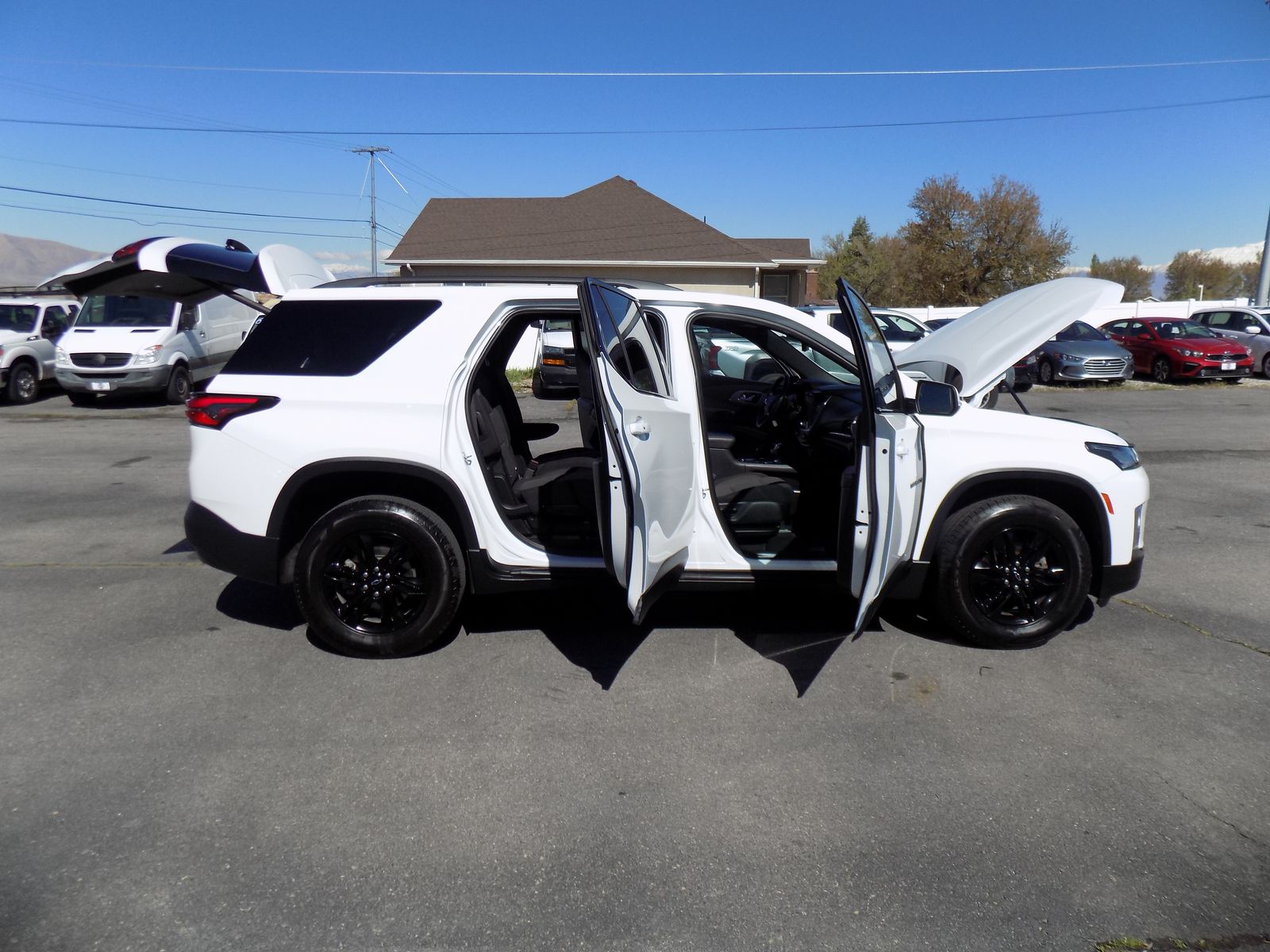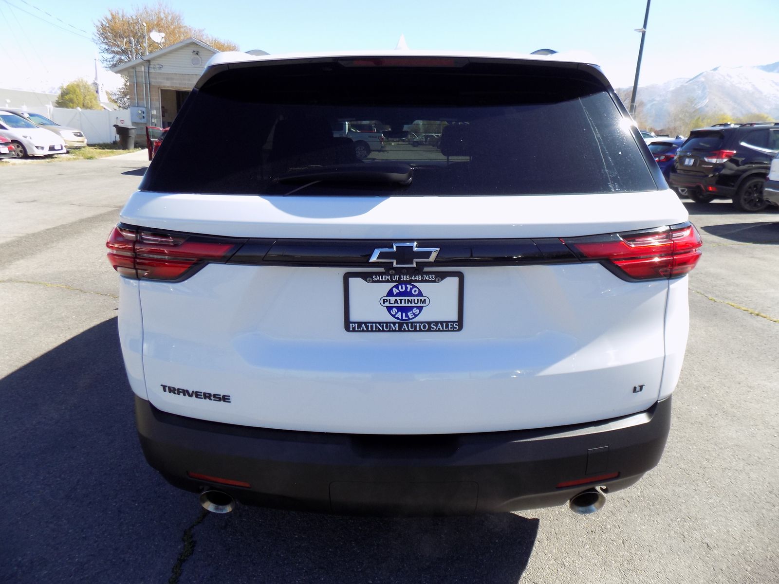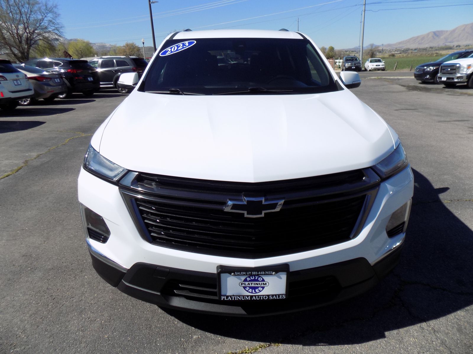 2023 CHEVROLET TRAVERSE LT FWD SUV, 75,851 MILES, CLEAN TITLE. The 2023 Chevrolet Traverse LT Cloth (1LT) is a mid-size 3-row SUV featuring a standard 310-hp 3.6L V6 ENGINE, 9 speed automatic transmission and 18 inch wheels. Seats 7 with second-row captain's chairs , featuring premium cloth seating and more. Stop by Platinum Auto Sales for a test drive, or give us a call at 385-448-7433. We’ll give you a great deal on a great SUV!.
