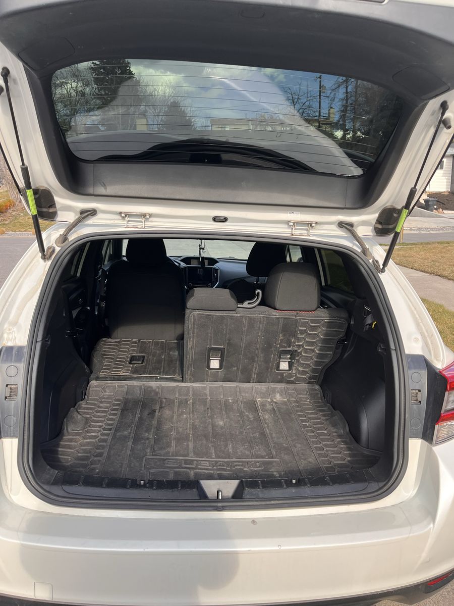 Comes with heads up display, back up camera, eyesight cameras, lane assist, adaptive cruise control, car play, usb charging ports, 60/40 split rear seats that lay flat, protective rubber mats in cargo area and all foot wells.