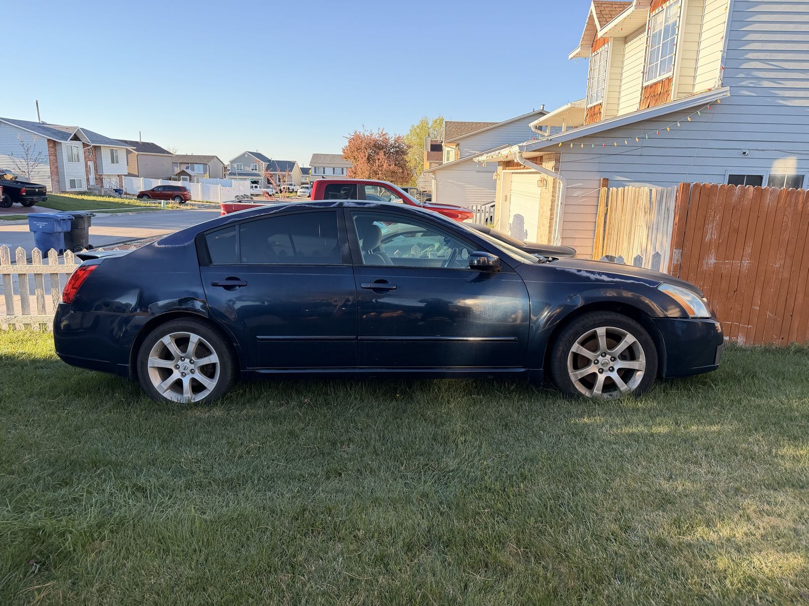 Blue Nissan Maxima 2007 Sedan. Needs work done such as new battery, transmission may need fixing and the front brakes are all worn out needs replacing. Still drives great if desired to fix it up. Open to any offers.