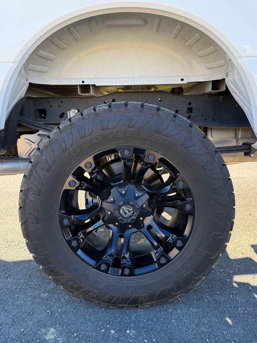 Like-new Toyo Open Country A/T tires, Fuel Vapor Matte Black rims, and brakes