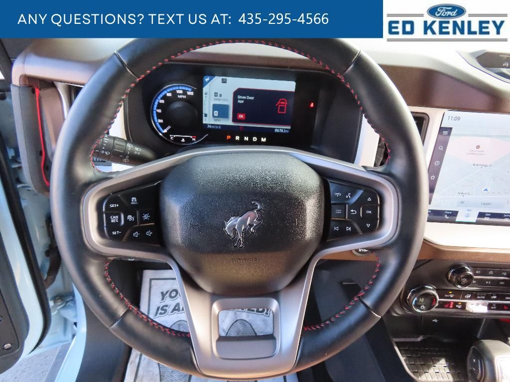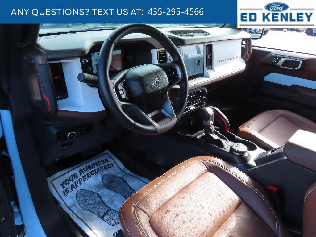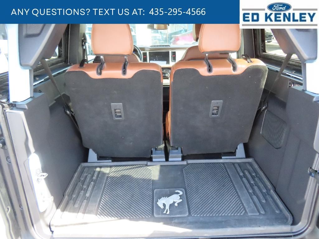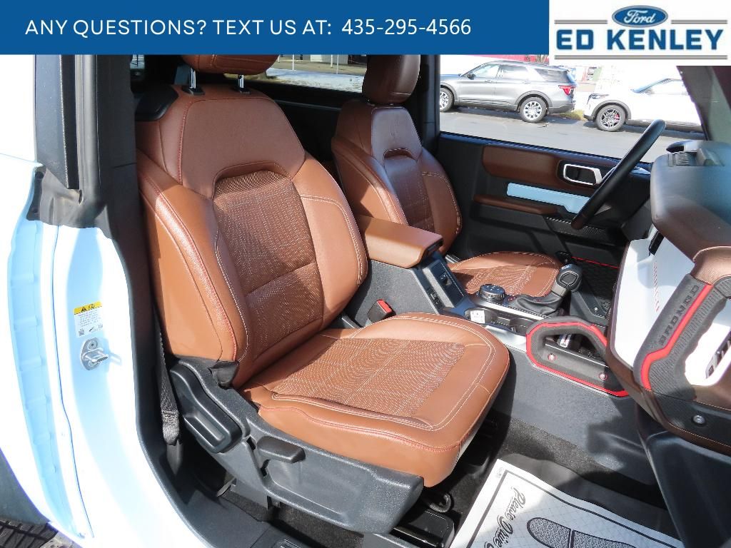 Equipment Group 664A Lux Package: 2.7L EcoBoost V6 Engine; 17" Black High Gloss-Painted Aluminum Wheels; 4.7 Axle Ratio; 10-Speed Automatic Transmission; LT315/70R17 Mud-Terrain Tires; Leather-Trimmed/vinyl Heated Bucket Seats; 5,720 lbs GVWR; B&O Sound System by Bang and Olufsen,Tube Doors - 2-Door,Trailer Tow Package,Black Roof Rails with Crossbars,Front Row Top Panels and Door Storage Bags,Mesh Shade Top,Tailgate Table,Upgraded Carpet Floor Mats,Modular Roof Porthole Panel Roof Bag Storage,Cargo Area Protector,Cargo Net Kit,SYNC 4 AppLink/Apple CarPlay/Android Auto smart device wireless mirroring,Pre-Collision Assist with Pedestrian Detection,Pre-Collision Assist with Pedestrian Detection,FordPass Connect mobile hotspot internet access,Rear mounted camera,Lane Keeping Alert,Adaptive cruise control,Predictive brake assist system,Cruise control with steering wheel mounted controls,FordPass Connect smart device and keyfob engine start control,Connected Navigation integrated navigation system with voice activation,Heated steering wheel,Heated driver and front passenger seats,Leather and leatherette front seat upholstery,Manual convertible roof,Primary monitor touchscreen,Cross-Traffic Alert collision warning,First-row targa composite sunroof with manual activation,Part and full-time 4WD,EcoBoost 2.7L V-6 port/direct injection, DOHC, Ti-VCT variable valve control, twin turbo, regular unleaded, engine with cylinder deactivation and 315HP,Front wireless smart device charging,SYNC 4 with Enhanced Voice Recognition (Alexa-Built-In) virtual assistant,Driver Alert,Evasive Steering Assist evasion assist system,MyKey restricted driving mode,Intelligent Access with hands-free access and push button start,Ford Co-Pilot360 - 360 Degree Camera aerial view camera,Video-feed rearview mirror,Bluetooth wireless audio streaming,Front mounted camera,Right side camera,Left side camera,BLIS (Blind Spot Information System),Dual-zone front climate control,SYNC 4 with Enhanced Voice Recognition voice-activated climate control,Trail Control off-road speed control,Active front anti-roll bar with driver control,Auto High Beam auto high-beam headlights,Selectable Terrain Modes,B&O speakers,Real-time traffic,SYNC 4 handsfree wireless device connectivity,Trailer sway control,SYNC 4 external memory control,Internet radio capability,6 USB ports,Digital/analog instrumentation display,Configurable instrumentation gauges