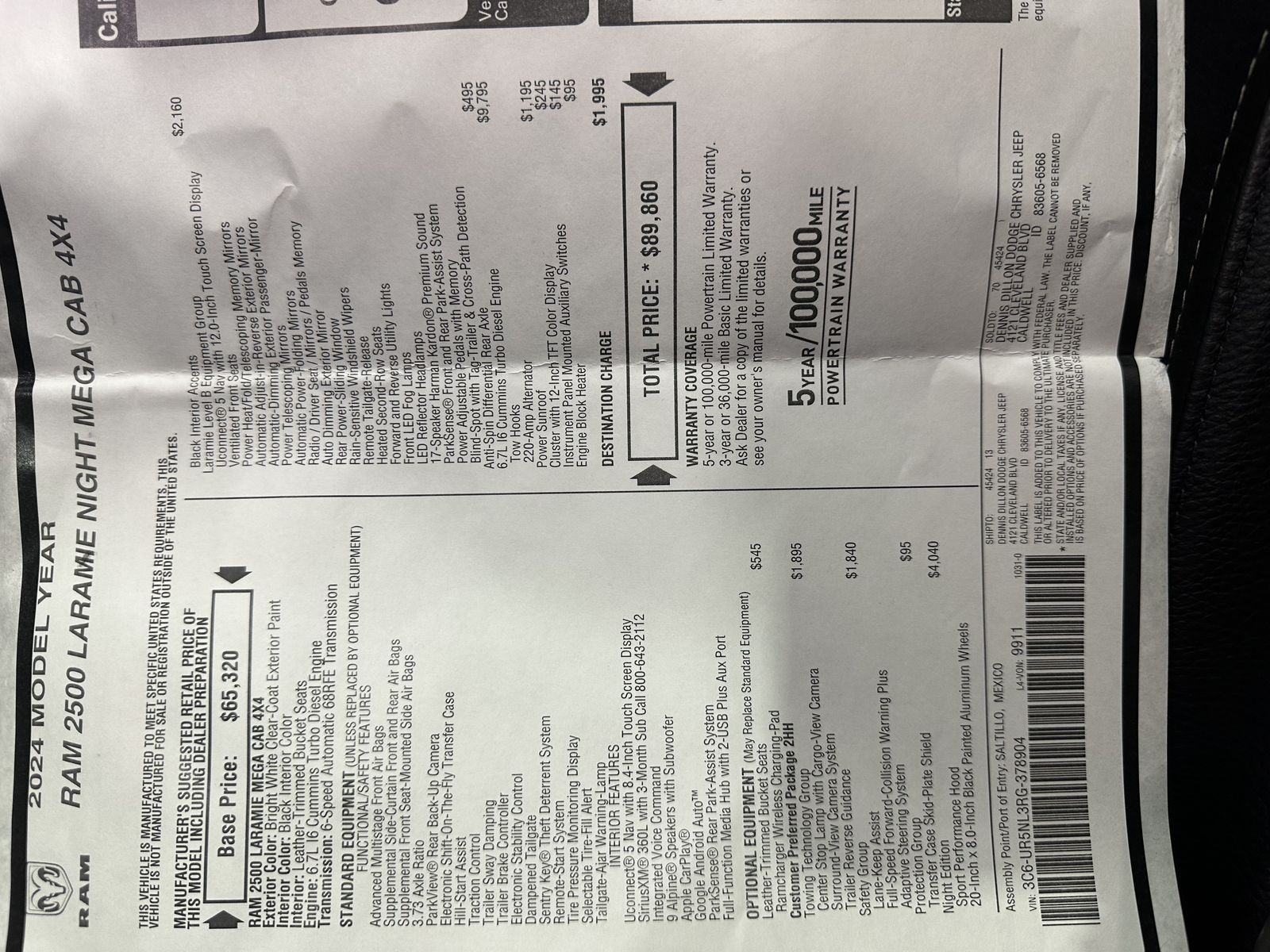 2024 Ram 2500 6.7L Diesel Laramie Night Edition Mega Cab 4x4 6 speed transmission. Clean title and is fully loaded with upgraded automatic AMP power steps, BAKFlip bed cover, and weather tech floor mats. This truck is grandpa owned and has mostly sat in a heated shop. The truck has no issues, still smells brand new, and has been kept up to date on all services from the local Ram dealership. It does still have Ram bumper to bumper, drivetrain factory warranty. Serious inquiries only. No trades.
