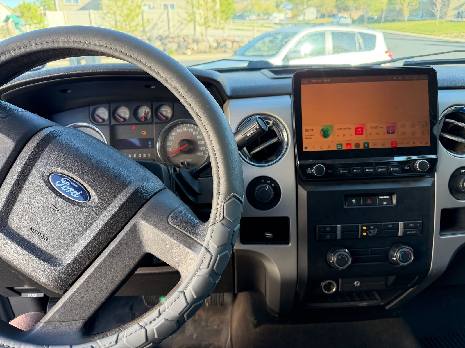 The interior is clean and updated, making the cabin feel like a much newer truck: