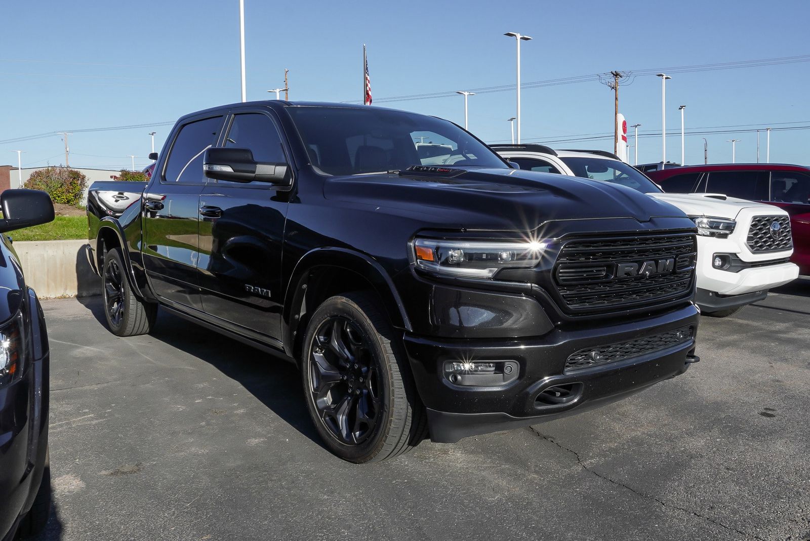 WHEELS: 22 X 9 BLACK ALUMINUM,3.92 REAR AXLE RATIO,DIAMOND BLACK CRYSTAL PEARLCOAT,LIMITED LEVEL 1 EQUIPMENT GROUP -inc: Adaptive Cruise Control w/Stop & Go Parallel & Perp Park Assist w/Stop Ventilated Rear Seats Full Speed Forward Collision Warning Plus Lane Keep Assist,ENGINE: 3.0L V6 TURBO DIESEL GEN 3 -inc: Lower Active Grille Shutters 800 Amp Maintenance Free Battery EcoDiesel Badge Heavy Duty Engine Cooling 250 Amp Alternator GVWR: 7 200 lbs Dual Rear Exhaust w/Bright Tips Thermal Rear Axle,BLACK APPEARANCE PACKAGE -inc: Tri-Fold Tonneau Cover Black Headlamp Bezels Body Color Premium Power Mirrors Sport Performance Hood Body Color Door Handles harman/kardon 19 Speaker Premium Sound Black Exterior Truck Badging Black Day Light Opening Moldings Tow Hooks Body Color Exterior Mirrors Dual Exhaust w/Black Tips Body Color Front Bumper Black Grille Surround Texture 7 Chrome Body Color Rear Bumper w/Step Pads RAM Grille Badge - Black,BED UTILITY GROUP -inc: 4 Adjustable Cargo Tie-Down Hooks Pick-Up Box Lighting Deployable Bed Step,BLACK PREMIUM LEATHER TRIMMED BUCKET SEATS,PROTECTION GROUP -inc: Transfer Case Skid Plate Steering Gear Skid Plate Front Suspension Skid Plate Fuel Tank Skid Plate,QUICK ORDER PACKAGE 28M LIMITED -inc: Engine: 3.0L V6 Turbo Diesel Gen 3 Transmission: 8-Speed Automatic (8HP75) (DFV),MANUFACTURER'S STATEMENT OF ORIGIN,GVWR: 7 200 LBS,TRI-FOLD TONNEAU COVER,MULTI-FUNCTION TAILGATE,33 GALLON FUEL TANK,TIRES: 285/45R22XL BSW ALL SEASON,TRAILER BRAKE CONTROL,TRANSMISSION: 8-SPEED AUTOMATIC (8HP75) (DFV),COLD WEATHER GROUP -inc: Engine Block Heater,ENGINE BLOCK HEATER,Four Wheel Drive,Tow Hitch,Air Suspension,Power Steering,Air Suspension,Air Suspension,ABS,4-Wheel Disc Brakes,Brake Assist,Lithium Ion Traction Battery,Aluminum Wheels,Tires - Front Performance,Tires - Rear Performance,Bed Liner,Conventional Spare Tire,Tow Hooks,Heated Mirrors,Power Mirror(s),Integrated Turn Signal Mirrors,Power Folding Mirrors,Rear Defrost,Privacy Glass,Intermittent Wipers,Variable Speed Intermittent Wipers,Rain Sensing Wipers,Running Boards/Side Steps,Power Retractable Running Boards,Power Door Locks,Fog Lamps,Daytime Running Lights,Automatic Headlights,LED Headlights,Automatic Highbeams,AM/FM Stereo,Navigation System,Satellite Radio,Bluetooth Connection,HD Radio,Requires Subscription,Premium Sound System,MP3 Capability,Steering Wheel Audio Controls,Auxiliary Audio Input,Premium Sound System,Bluetooth Connection,Power Driver Seat,Power Passenger Seat,Mirror Memory,Driver Adjustable Lumbar,Seat Memory,Heated Front Seat(s),Cooled Front Seat(s),Power Driver Seat,Driver Adjustable Lumbar,Power Passenger Seat,Passenger Adjustable Lumbar,Pass-Through Rear Seat,Heated Rear Seat(s),Rear Bench Seat,Adjustable Steering Wheel,Trip Computer,Power Windows,WiFi Hotspot,Leather Steering Wheel,Heated Steering Wheel,Keyless Entry,Power Door Locks,Keyless Entry,Power Door Locks,Keyless Start,Universal Garage Door Opener,Cruise Control,Climate Control,Multi-Zone A/C,A/C,Woodgrain Interior Trim,Leather Seats,Bucket Seats,Auto-Dimming Rearview Mirror,Driver Vanity Mirror,Passenger Vanity Mirror,Driver Illuminated Vanity Mirror,Passenger Illuminated Visor Mirror,Floor Mats,Remote Engine Start,Smart Device Integration,Requires Subscription,Navigation System,Mirror Memory,Seat Memory,Remote Engine Start,Keyless Start,Smart Device Integration,Power Windows,Power Door Locks,Adjustable Pedals,Trip Computer,Immobilizer,Security System,Traction Control,Stability Control,Traction Control,Front Side Air Bag,Rear Parking Aid,Telematics,Requires Subscription,Blind Spot Monitor,Cross-Traffic Alert,Tire Pressure Monitor,Driver Air Bag,Passenger Air Bag,Front Head Air Bag,Rear Head Air Bag,Passenger Air Bag Sensor,Child Safety Locks,Back-Up Camera