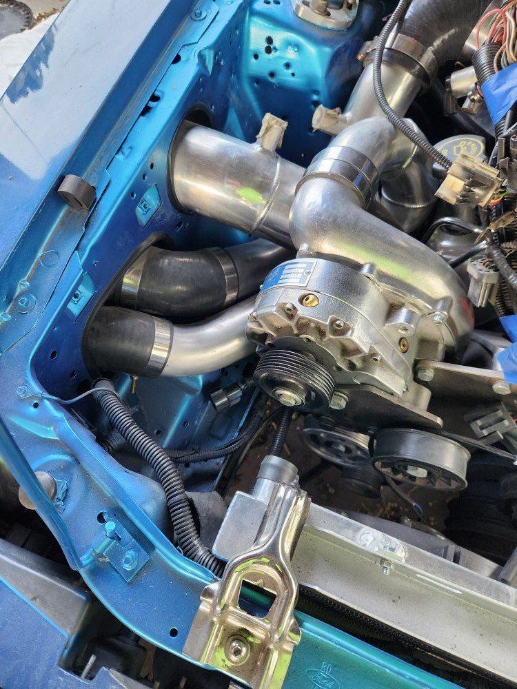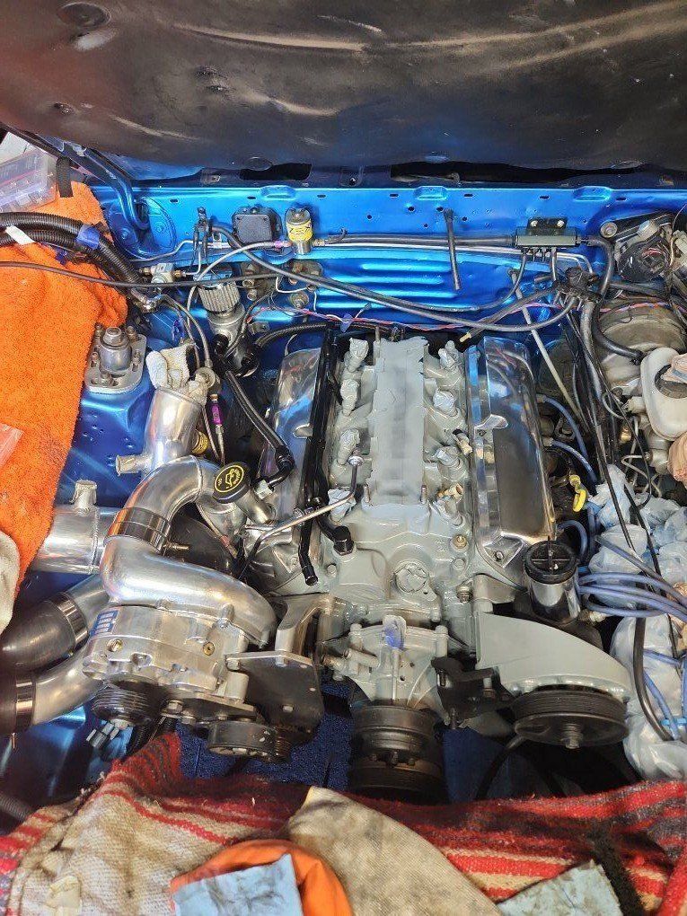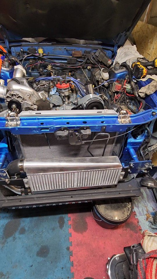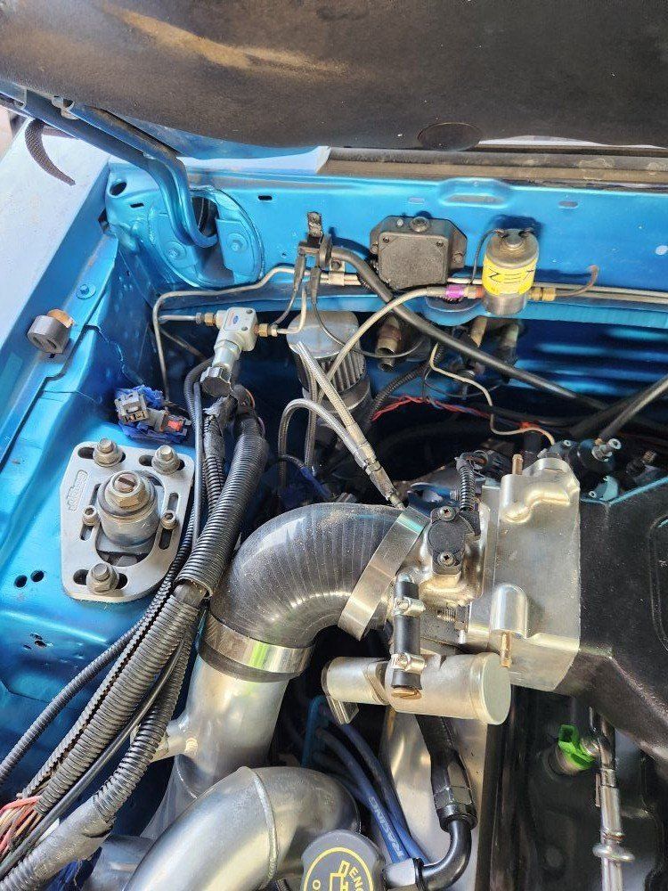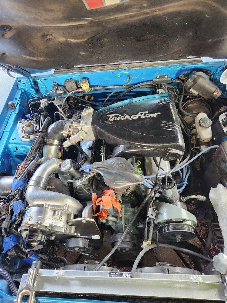 I'm converting to Holly Terminator X EFI, so all the wiring's disconnected and it won't drive—you'll need to tow it. The paint's worn and needs redoing, and the front driver's side fender was backed into, so it needs replacing. I have a fender and bumper that can go with it, plus a ton of extra parts that haven't been put on yet. The front bumper Isn't all the way on Because of the front mount intercooler kit I was working on. all the photos are old I can try to get some newer ones tonight or in the next couple days. the engine an engine bay is put back together more than in the pictures just don't have updated pictures