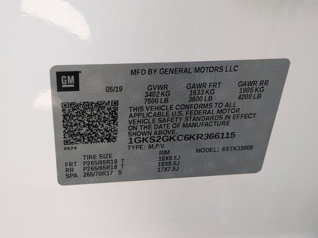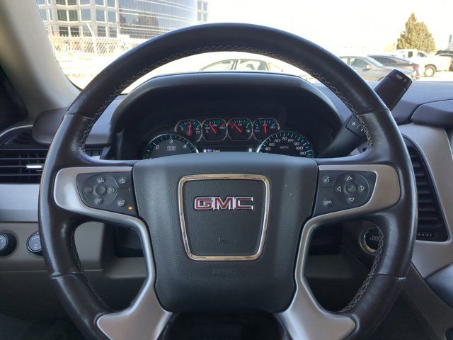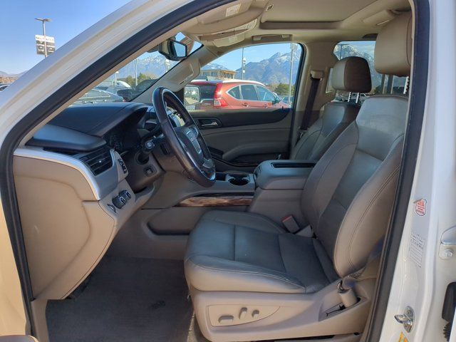Enhanced Driver Alert Package,Memory Package,Open Road Package,Preferred Equipment Group 4SA,Premium Smooth Ride Suspension Package,9 Speakers,AM/FM radio: SiriusXM,Bose Premium 9-Speaker System,CD Player,CD player,Premium audio system: IntelliLink,Radio: AM/FM/SiriusXM,Radio: AM/FM/SiriusXM w/Navigation,SiriusXM Radio,Air Conditioning,Automatic temperature control,Front dual zone A/C,Rear air conditioning,Rear window defroster,5 Auxiliary 12-volt Power Outlets,Hands Free Power Programmable Rear Liftgate,Memory seat,Pedal memory,Power driver seat,Power steering,Power windows,Power-Adjustable Pedals For Accelerator & Brake,Remote Keyless Entry,Remote keyless entry,Steering wheel memory,Steering wheel mounted audio controls,Universal Home Remote,Speed-sensing steering,Traction control,4-Wheel Antilock Disc Brakes,4-Wheel Disc Brakes,ABS brakes,Dual front impact airbags,Dual front side impact airbags,Emergency communication system: OnStar and GMC connected services capable,Front anti-roll bar,Front wheel independent suspension,Low tire pressure warning,Occupant sensing airbag,Overhead airbag,Passive Entry System,Push Button Keyless Start,Rear anti-roll bar,Power Tilt-Sliding Sunroof w/Express-Open/Close,3rd Row DVD Screen,Power Liftgate,Brake assist,Electronic Stability Control,Exterior Parking Camera Rear,Auto High-beam Headlights,Delay-off headlights,Front fog lights,Fully automatic headlights,Panic alarm,Security system,Speed control,Auto-dimming door mirrors,Black Assist Steps w/Chrome Strip,Bumpers: body-color,Heated door mirrors,IntelliBeam Automatic High Beam On/Off,Power door mirrors,Roof rack: rails only,Spoiler,Turn signal indicator mirrors,Adjustable pedals,Apple CarPlay/Android Auto,Auto-dimming Rear-View mirror,Compass,Driver door bin,Driver vanity mirror,Forward Collision Alert,Front reading lights,Garage door transmitter,Heated Leather-Wrapped Steering Wheel,Heated steering wheel,Illuminated entry,Inside Rear-View Auto-Dimming Mirror,Lane Change Alert w/Side Blind Zone Alert,Lane Keep Assist w/Lane Departure Warning,Low Speed Forward Automatic Braking,Outside temperature display,Overhead console,Passenger vanity mirror,Power Tilt & Telescopic Steering Column,Rear Cross Traffic Alert,Rear reading lights,Rear Seat Blu-Ray/DVD Entertainment System,Rear seat center armrest,SiriusXM NavTraffic,Tachometer,Telescoping steering wheel,Tilt steering wheel,Trip computer,Voltmeter,3rd row seats: split-bench,Front Bucket Seats,Front Center Armrest,Full-Feature Reclining Bucket Seats,Heated & Ventilated Driver & Front Passenger Seats,Heated front seats,Heated rear seats,Perforated Leather-Appointed Seat Trim,Power passenger seat,Power Release 2nd Row 60/40 Split-Folding Bench Seat,Split folding rear seat,Ventilated front seats,Passenger door bin,Alloy wheels,Wheels: 18 x 8.5 Bright Machined Aluminum,Rain sensing wipers,Rear window wiper,Variably intermittent wipers,3.08 Rear Axle Ratio,Bluetooth Wireless,USB Port(s),OPEN ROAD PACKAGE (CF5) power sunroof (U42) rear seat entertainment system and on SLT (IO6) Audio system with navigation,ENTERTAINMENT SYSTEM REAR SEAT BLU-RAY/DVD with remote control overhead display Wi-Fi wireless projection capability four 2-channel wireless digital headphones auxiliary HDMI/MHL audio/video input and 2 USB ports,SLT PREFERRED EQUIPMENT GROUP Includes Standard Equipment,WHEELS 18 X 8.5 (45.7 CM X 21.6 CM) BRIGHT MACHINED ALUMINUM (STD),SUSPENSION PACKAGE PREMIUM SMOOTH RIDE (STD),SEATS SECOND ROW 60/40 SPLIT-FOLDING BENCH power release (STD),SUNROOF POWER TILT-SLIDING with express-open and close and wind deflector,DVD SCREEN THIRD ROW,SUMMIT WHITE,SEATS FRONT BUCKET WITH PERFORATED LEATHER-APPOINTED heated and ventilated seat cushions 12-way power driver and passenger seat includes 6-way power cushions driver seat 2-position memory 4-way power lumbar control and power recline (STD),COCOA/DUNE PERFORATED LEATHER-APPOINTED SEAT TRIM (Interior color has lighter/darker two-tone effect.),REAR AXLE 3.08 RATIO,AUDIO SYSTEM 8 DIAGONAL COLOR TOUCH SCREEN NAVIGATION WITH GMC INFOTAINMENT SYSTEM AM/FM/SiriusXM stereo with seek-and-scan and digital clock includes Bluetooth streaming audio for music and select phones; voice-activated technology for radio and phone; and Shop. Featuring Apple CarPlay and Android Auto capability for compatible phone; 5 USB ports and 1 auxiliary jack,TRANSMISSION 6-SPEED AUTOMATIC ELECTRONICALLY CONTROLLED with overdrive tow/haul mode and tap up/tap down shifting (STD),ENGINE 5.3L ECOTEC3 V8 with Active Fuel Management Direct Injection and Variable Valve Timing includes aluminum block construction (355 hp [265 kW] @ 5600 rpm 383 lb-ft of torque [518 N-m] @ 4100 rpm) (STD),TIRES P265/65R18 ALL-SEASON BLACKWALL (STD),LICENSE PLATE FRONT MOUNTING PACKAGE,Mirror Memory,Adjustable Pedals,Seat Memory,Lane Departure Warning,Lane Keeping Assist,Front Collision Mitigation,Front Collision Warning,Automatic Highbeams,Keyless Start,Locking/Limited Slip Differential,Four Wheel Drive,Tow Hitch,Power Steering,ABS,4-Wheel Disc Brakes,Brake Assist,Aluminum Wheels,Tires - Front All-Season,Tires - Rear All-Season,Conventional Spare Tire,Conventional Spare Tire,Luggage Rack,Running Boards/Side Steps,Fog Lamps,Heated Mirrors,Power Mirror(s),Integrated Turn Signal Mirrors,Power Folding Mirrors,Privacy Glass,Intermittent Wipers,Variable Speed Intermittent Wipers,Rain Sensing Wipers,Remote Trunk Release,Power Liftgate,Hands-Free Liftgate,AM/FM Stereo,Satellite Radio,MP3 Capability,Bluetooth Connection,Auxiliary Audio Input,Smart Device Integration,Requires Subscription,Premium Sound System,CD Player,Satellite Radio,Requires Subscription,HD Radio,WiFi Hotspot,Power Driver Seat,Power Passenger Seat,Leather Seats,Bucket Seats,Heated Front Seat(s),Driver Adjustable Lumbar,Passenger Adjustable Lumbar,Seat Memory,Cooled Front Seat(s),Pass-Through Rear Seat,Rear Bench Seat,3rd Row Seat,Pass-Through Rear Seat,Leather Seats,Heated Front Seat(s),Cooled Front Seat(s),Heated Re