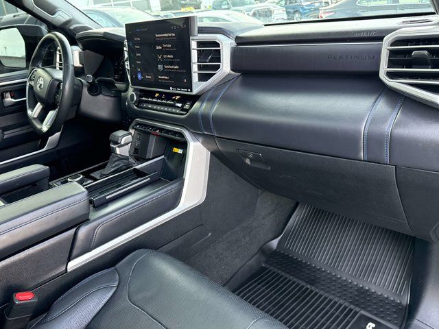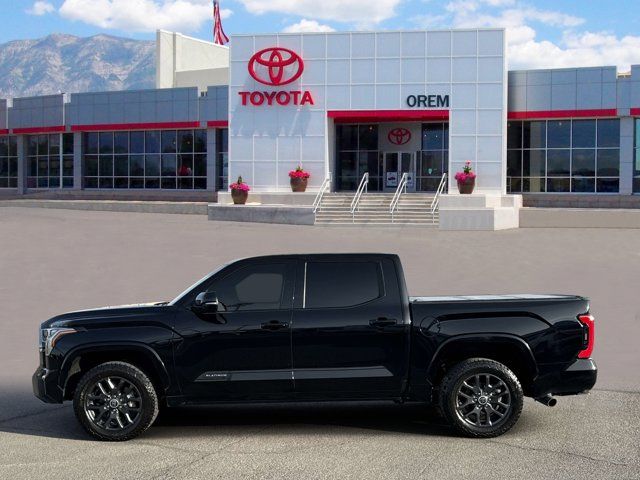 2023 Toyota Tundra PlatinumMidnight Black Metallic 3.4L V6CARFAX One-Owner.To see more quality vehicles like this one right here just click on www.oremtoyota.com or dial (801) 823-6020. At Orem Toyota, we pledge to consistently provide a caring, value driven, and exceptional experience for all of our guests. We love being a family owned business and hope to welcome you to be part of our family. This Toyota Tundra is equipped with the following features: 4WD, Black w/Leather Seat Trim, 10-Way Pwr Adj Heated and Ventilated Front Seats, Apple CarPlay/Android Auto, Automatic temperature control, Garage door transmitter: HomeLink, Heated front seats, Heated rear seats, Heated steering wheel, Memory seat, Power Running Boards, Rear step bumper, Steering wheel mounted audio controls, Turn signal indicator mirrors, Ventilated front seats, Wheels: 20 Dark Painted Alloy, 12 Speakers, 3.31 Axle Ratio, 4-Wheel Disc Brakes, ABS brakes, Air Conditioning, Alloy wheels, AM/FM radio: SiriusXM, Auto High-beam Headlights, Auto-dimming door mirrors, Auto-dimming Rear-View mirror, Brake assist, Bumpers: body-color, Delay-off headlights, Driver door bin, Driver vanity mirror, Dual front impact airbags, Dual front side impact airbags, Electronic Stability Control, Emergency communication system: Safety Connect (10-year trial), Front anti-roll bar, Front Bucket Seats, Front Center Armrest, Front dual zone A/C, Front fog lights, Front reading lights, Front wheel independent suspension, Fully automatic headlights, Heated door mirrors, Illuminated entry, Knee airbag, Leather Seat Trim, Leather Shift Knob, Low tire pressure warning, Navigation System, Occupant sensing airbag, Outside temperature display, Overhead airbag, Overhead console, Panic alarm, Passenger door bin, Passenger vanity mirror, Power door mirrors, Power driver seat, Power moonroof, Power passenger seat, Power steering, Power windows, Radio data system, Radio: Audio Multimedia System, Rain sensing wipers, Rear reading lights, Rear seat center armrest, Rear window defroster, Remote keyless entry, Safety Connect, Security system, Speed control, Speed-sensing steering, Split folding rear seat, Steering wheel memory, Tachometer, Telescoping steering wheel, Tilt steering wheel, Traction control, Trip computer, Variably intermittent wipers, Ventilated rear seats, and VoltmeteR.4WD, Black w/Leather Seat Trim, 10-Way Pwr Adj Heated and Ventilated Front Seats, Apple CarPlay/Android Auto, Automatic temperature control, Garage door transmitter: HomeLink, Heated front seats, Heated rear seats, Heated steering wheel, Memory seat, Power Running Boards, Rear step bumper, Steering wheel mounted audio controls, Turn signal indicator mirrors, Ventilated front seats, Wheels: 20 Dark Painted Alloy.