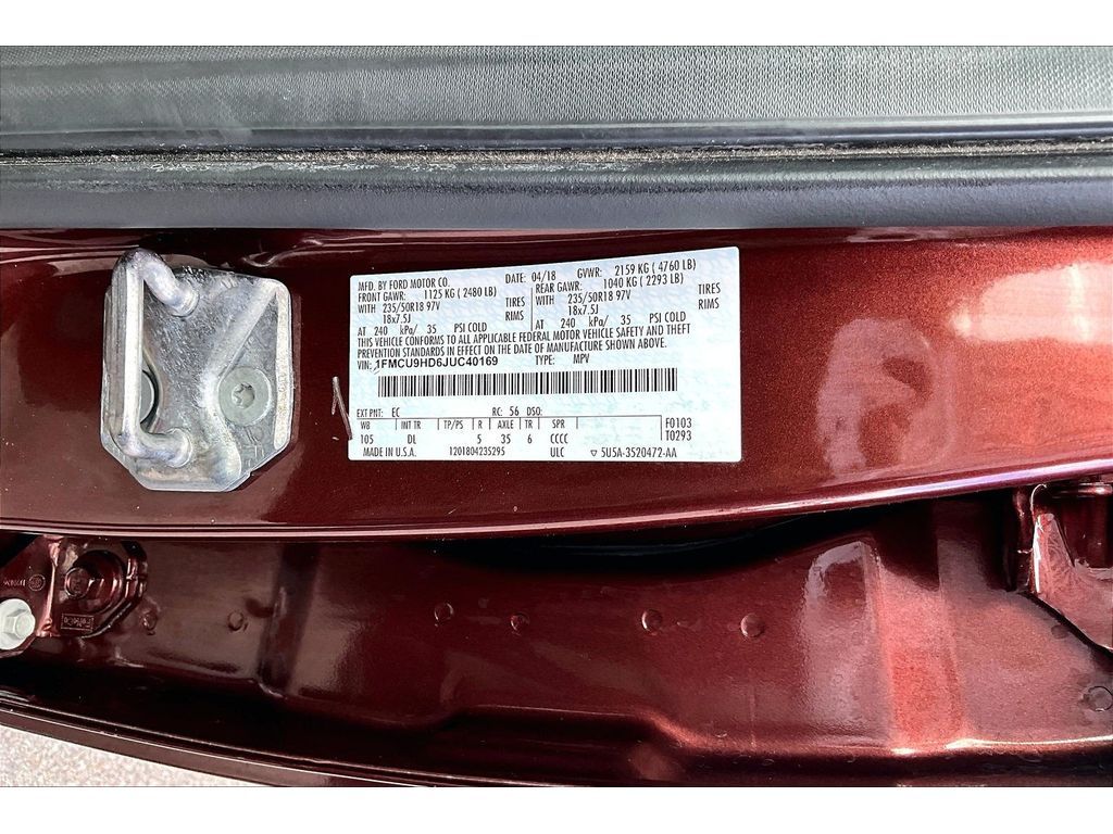 Equipment The rear parking assist technology on this model will put you at ease when reversing. The system alerts you as you get closer to an obstruction. The leather seats in this unit are a must for buyers looking for comfort, durability, and style. Protect this small suv from unwanted accidents with a cutting edge backup camera system. Start this vehicle from inside with remote start. This 2018 Ford Escape keeps you comfortable with Auto Climate. This unit comes equipped with Android Auto for seamless smartphone integration on the road. This Ford Escape offers Apple CarPlay for seamless connectivity. Bluetooth technology is built into this vehicle, keeping your hands on the steering wheel and your focus on the road. Load groceries and much more with ease into it thanks to the power liftgate. When you encounter slick or muddy roads, you can engage the four wheel drive on this small suv and drive with confidence. Packages Equipment Group 300A: 3.51 Axle Ratio 1.5L EcoBoost Engine Heated Leather-Trimmed Front Bucket Seats 6-Speed Automatic Transmission with SelectShift TBD GVWR AM/FM Stereo with single-CD/MP3 Player. 18' Ultra Bright-Machined Aluminum Wheels. Equipment listed is based on original vehicle build and subject to change. Please confirm the accuracy of the included equipment by calling the dealer prior to purchase.
