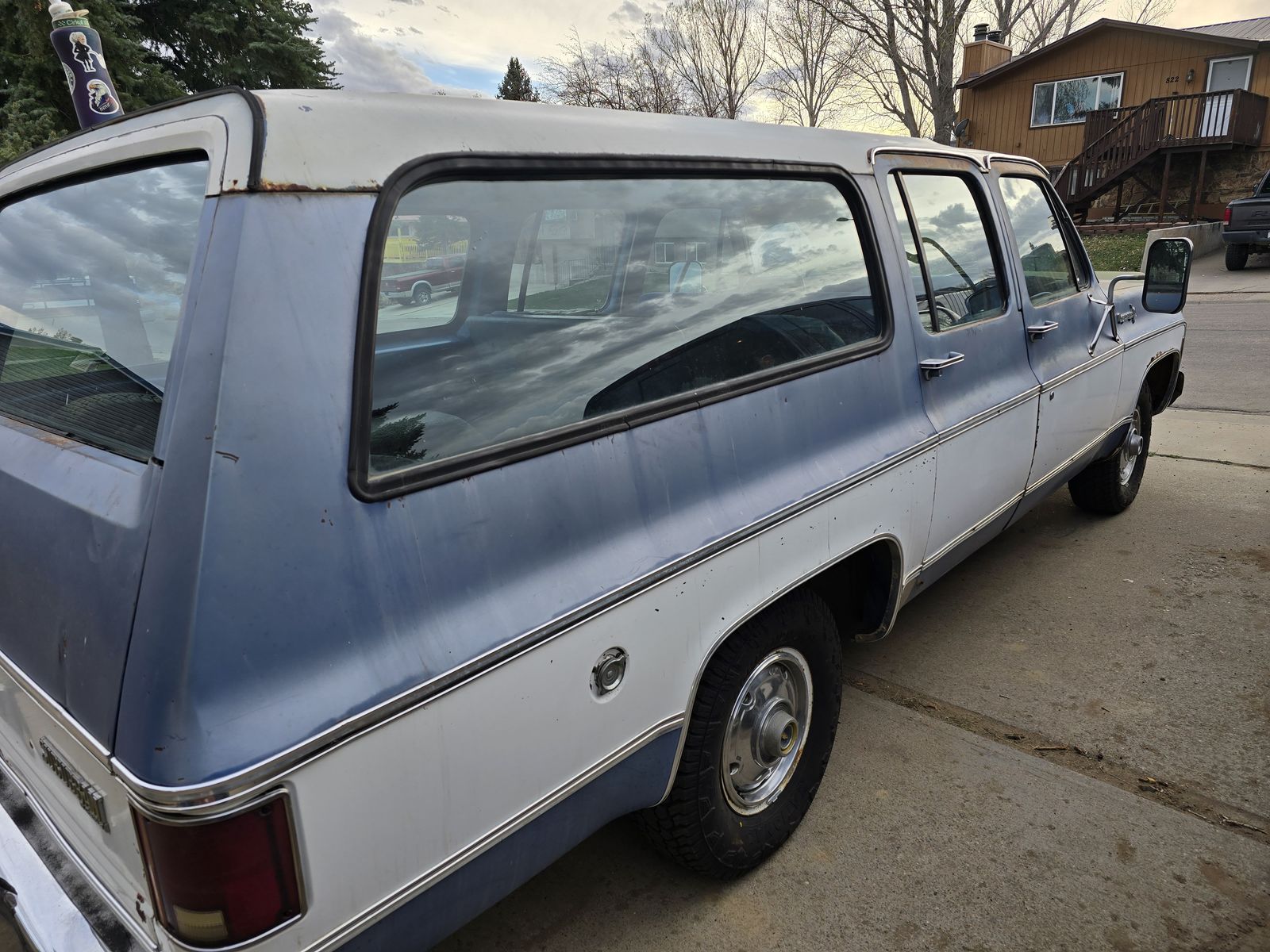 Great and strong running suburban, has front and rear a/c, stereo cb 8track combo from factory. Interior is in really good shape for the year, has tares on the rear seats but they are still soft. Brand new tires and misc work done. 55,760 original miles. 3500 obo