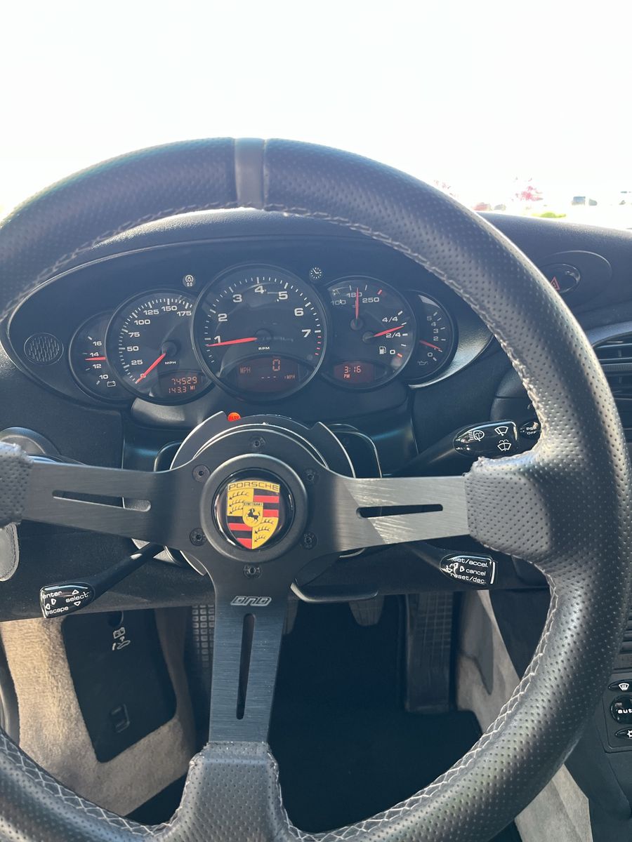 Porsche 911 Carrera. This is a clean car and a blast to drive. It has been slightly modified with a roll cage, sparco seats and tighter suspension.