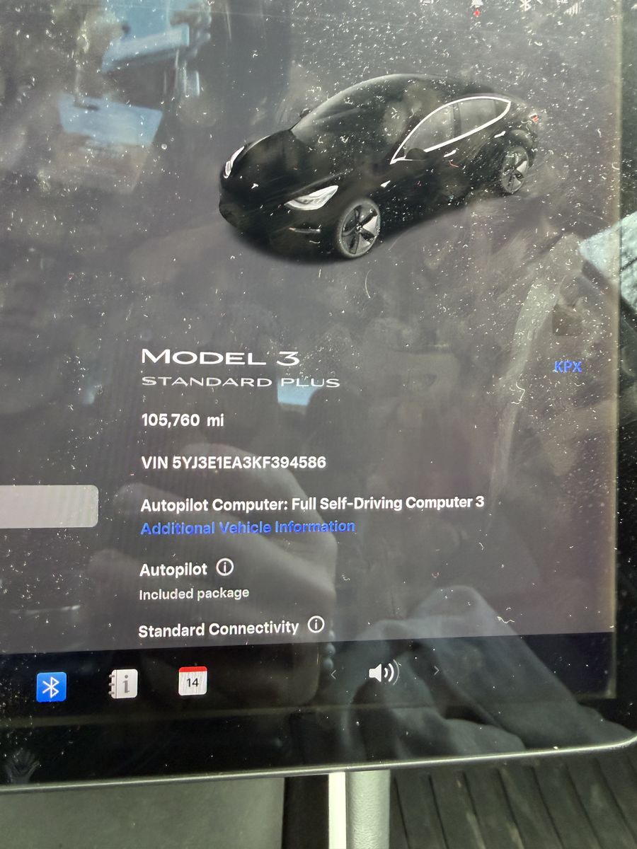 Black Tesla Model 3 with 105,000 miles. Battery is healthy and gets around 180 miles on a full charge. Drives great and has been a reliable daily driver.