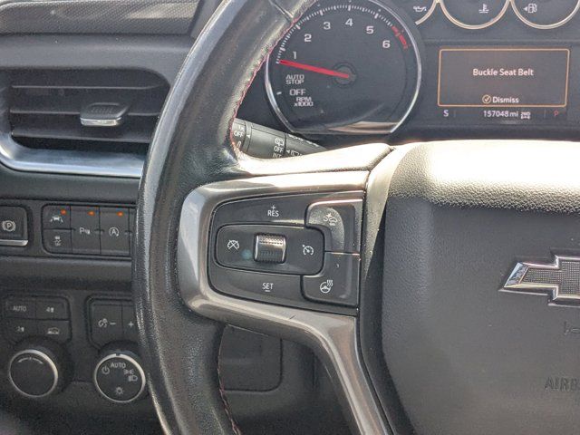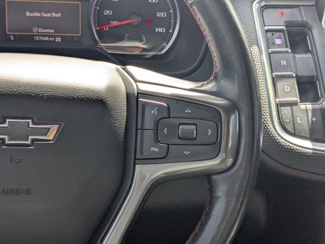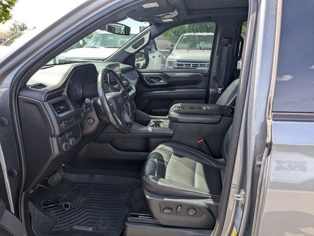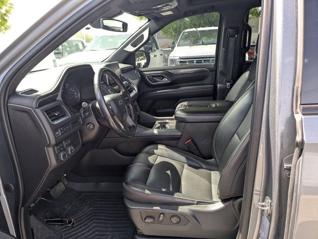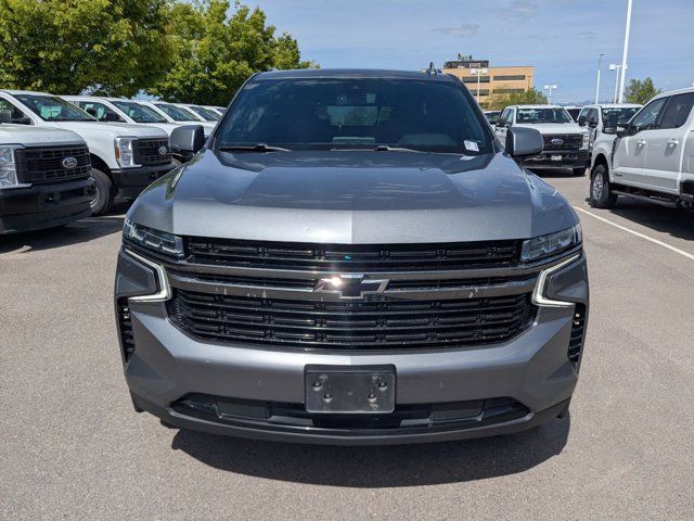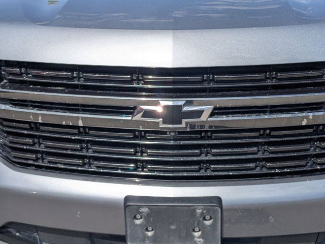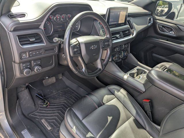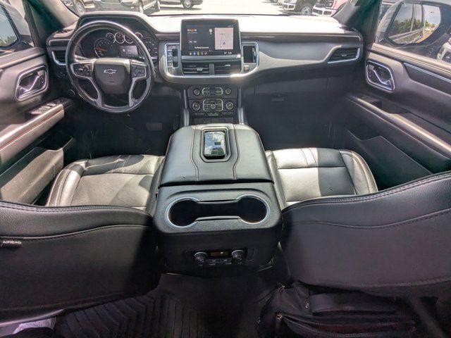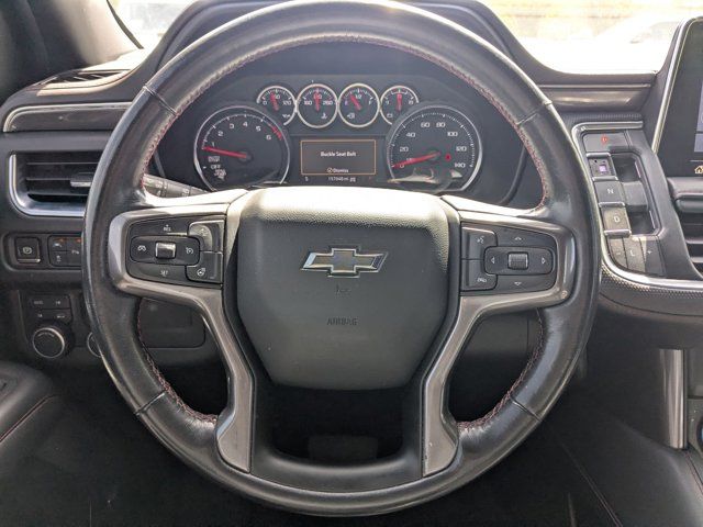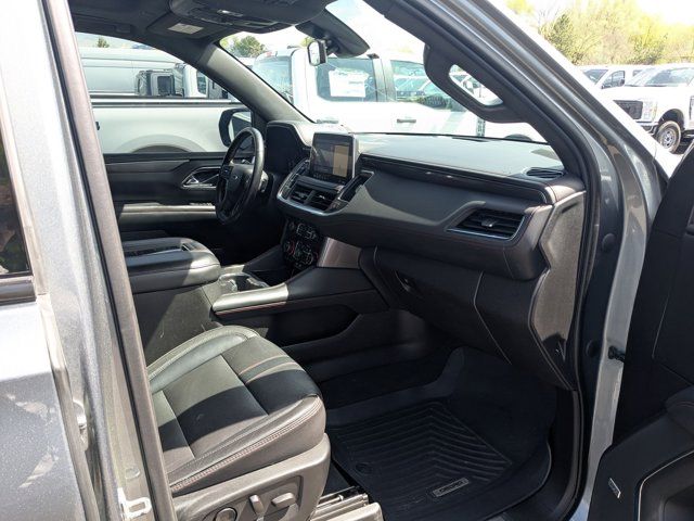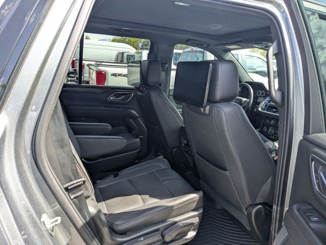 SATIN STEEL METALLIC,REAR AXLE 3.23 RATIO,LANE CHANGE ALERT WITH SIDE BLIND ZONE ALERT,LANE KEEP ASSIST with Lane Departure Warning,SEATS SECOND ROW BUCKET POWER RELEASE,DRIVER ALERT PACKAGE includes (UHX) Lane Keep Assist with Lane Departure Warning (UKC) Lane Change Alert with Side Blind Zone Alert (UFG) Rear Cross Traffic Alert and (UD5) Front and Rear Park Assist,LUXURY PACKAGE includes (WPD) Driver Alert Package content (UV2) HD Surround Vision (UKK) Rear Pedestrian Alert (A45) memory settings (DXR) outside heated power-adjustable power-folding body-color mirrors with driver-side auto-dimming and integrated turn signal indicators (N38) power tilt and telescopic steering column (KI3) automatic heated steering wheel (KA6) second row outboard heated seats (ATT) second row power 60/40 split-folding bench seats and (AS8) third row power 60/40 split-folding bench seats,MEMORY SETTINGS RECALLS 2 DRIVER PRESETS FOR POWER DRIVER SEAT OUTSIDE REARVIEW MIRRORS AND POWER AND TILT AND TELESCOPIC STEERING COLUMN,RST PREFERRED EQUIPMENT GROUP includes standard equipment,FRONT AND REAR PARK ASSIST,SEATS THIRD ROW 60/40 SPLIT-BENCH POWER FOLDING,SEATS HEATED SECOND ROW OUTBOARD SEATS,TRANSMISSION 10-SPEED AUTOMATIC electronically controlled with overdrive includes Traction Select System including tow/haul (Most vehicles built on or after 6-7-2021 with a V8 engine will have (NSS) Not Equipped with Automatic Stop/Start which removes Automatic Stop/Start Engine control stop/start disable button and its content.) (STD),SUNROOF POWER PANORAMIC DUAL-PANE TILT-SLIDING with express-open and close and power sunshade,REAR MEDIA AND NAV PACKAGE includes (UW9) Rear Seat Media System and (IOT) Chevrolet Infotainment 3 Premium system with connected Navigation 10.2 diagonal HD color touchscreen,STEERING COLUMN POWER TILT AND TELESCOPIC,ENGINE 5.3L ECOTEC3 V8 with Dynamic Fuel Management Direct Injection and Variable Valve Timing includes aluminum block construction (355 hp [265 kW] @ 5600 rpm 383 lb-ft of torque [518 Nm] @ 4100 rpm) (STD),REAR SEAT MEDIA SYSTEM includes dual rear seat-mounted 12.6 diagonal color-touch LCD HD screens Wi-Fi wireless projection capability two 2-channel wireless infrared digital headphones with 2 HDMI ports on the back of the center console; compatible with Bluetooth headphones,MIRRORS OUTSIDE HEATED POWER-ADJUSTABLE POWER-FOLDING DRIVER-SIDE AUTO-DIMMING integrated turn signal indicators and puddle lighting,HD SURROUND VISION,SEATS FRONT BUCKET (STD),STEERING WHEEL HEATED AUTOMATIC,JET BLACK/VICTORY RED PERFORATED LEATHER SEATING SURFACES 1ST AND 2ND ROW,REAR CROSS TRAFFIC ALERT,WHEEL 22 X 9.0 STEEL INTERIM,GVWR 7500 LBS. (3402 KG) (STD),AUDIO SYSTEM CHEVROLET INFOTAINMENT 3 PREMIUM SYSTEM WITH CONNECTED NAVIGATION 10.2 DIAGONAL HD COLOR TOUCHSCREEN AM/FM stereo Bluetooth audio streaming for 2 active devices Apple CarPlay and Android Auto capable enhanced voice recognition additional memory for in-vehicle apps cloud connected personalization for select infotainment and vehicle settings. Subscription required for enhanced and connected services after trial period.,REAR PEDESTRIAN ALERT,LICENSE PLATE FRONT MOUNTING PACKAGE,Locking/Limited Slip Differential,Four Wheel Drive,Tow Hitch,Power Steering,ABS,4-Wheel Disc Brakes,Aluminum Wheels,Wheel Locks,Tires - Front Performance,Tires - Rear Performance,Conventional Spare Tire,Wheel Locks,Conventional Spare Tire,Luggage Rack,Running Boards/Side Steps,Automatic Highbeams,Heated Mirrors,Power Mirror(s),Privacy Glass,Intermittent Wipers,Variable Speed Intermittent Wipers,Rain Sensing Wipers,Intermittent Wipers,Remote Trunk Release,Power Liftgate,AM/FM Stereo,MP3 Capability,Bluetooth Connection,Auxiliary Audio Input,Smart Device Integration,Premium Sound System,MP3 Capability,Bluetooth Connection,Auxiliary Audio Input,Satellite Radio,Requires Subscription,HD Radio,Bluetooth Connection,Bluetooth Connection,Smart Device Integration,WiFi Hotspot,Bucket Seats,Immobilizer,Keyless Start,Leather Seats,Power Driver Seat,Power Passenger Seat,Driver Adjustable Lumbar,Passenger Adjustable Lumbar,Heated Front Seat(s),Pass-Through Rear Seat,Rear Bench Seat,3rd Row Seat,Floor Mats,Adjustable Steering Wheel,Leather Steering Wheel,Cruise Control,Steering Wheel Audio Controls,Front Collision Warning,Power Door Locks,Keyless Entry,Power Door Locks,Remote Engine Start,Cruise Control,Universal Garage Door Opener,Security System,MP3 Capability,Auxiliary Audio Input,MP3 Capability,Auxiliary Audio Input,Power Windows,Power Windows,Power Windows,Seat Memory,Climate Control,Multi-Zone A/C,A/C,Rear A/C,A/C,Rear A/C,Rear Defrost,Auto-Dimming Rearview Mirror,Driver Vanity Mirror,Passenger Vanity Mirror,Driver Illuminated Vanity Mirror,Passenger Illuminated Visor Mirror,Front Collision Mitigation,Front Collision Warning,Traction Control,Stability Control,Brake Assist,Daytime Running Lights,Driver Restriction Features,Driver Air Bag,Passenger Air Bag,Front Side Air Bag,Front Head Air Bag,Rear Head Air Bag,Passenger Air Bag Sensor,Telematics,Requires Subscription,Rear Parking Aid,Back-Up Camera,Front Collision Mitigation,Front Collision Warning,Child Safety Locks,Tire Pressure Monitor