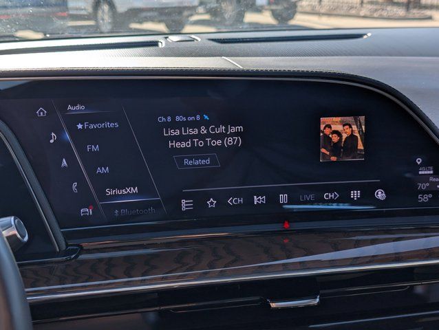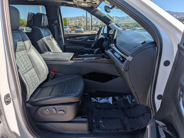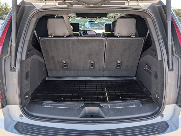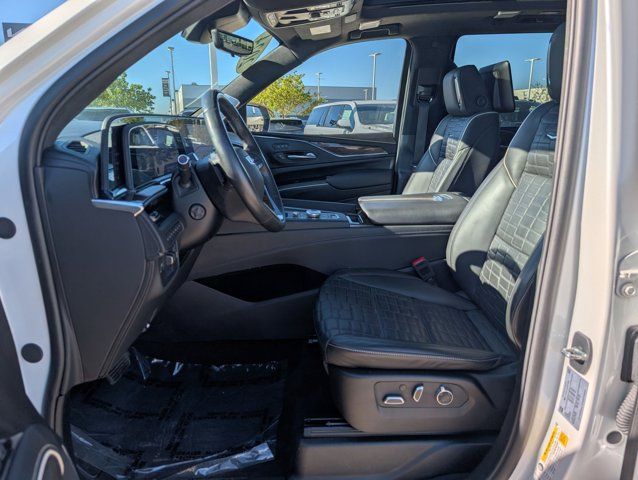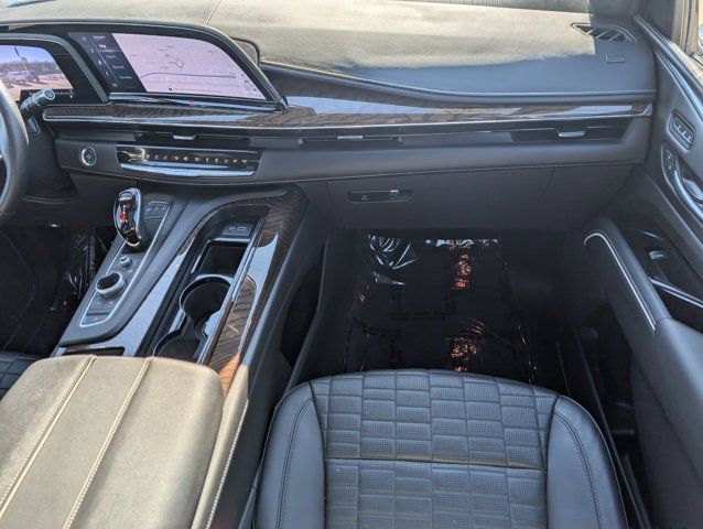 Navigation System,Heavy-Duty Trailering Package,Onyx Package (LPO),Preferred Equipment Group 1SH,Touring Package,AKG Studio Reference 36-Speaker Audio System,AM/FM radio: SiriusXM with 360L,Audio memory,HD Radio,Radio data system,Radio: AM/FM w/Navigation,Rear audio controls,SiriusXM w/360L,Air Conditioning,Automatic temperature control,Front dual zone A/C,Rear air conditioning,Rear window defroster,4-Way Power Driver Lumbar Seat Adjuster,8-Way Power Driver Seat Adjuster,8-Way Power Front Passenger Seat Adjuster,Front Auxiliary 12-volt Power Outlet,Heads-Up Display,Memory seat,Power driver seat,Power steering,Power windows,Remote keyless entry,Steering wheel memory,Steering wheel mounted audio controls,A/V remote,Headphones,Adaptive suspension,Air Ride Adaptive Suspension,Electronic Limited-Slip Differential,Four wheel independent suspension,Magnetic Ride Control Suspension,Traction control,4-Wheel Disc Brakes,ABS brakes,Door Lock & Latch Shields,Dual front impact airbags,Dual front side impact airbags,Emergency communication system: OnStar and Cadillac connected services capable,Front anti-roll bar,Low tire pressure warning,Occupant sensing airbag,Overhead airbag,Rear anti-roll bar,Power moonroof,Power Panoramic Tilt-Sliding Sunroof,Rear Seat Entertainment System,Power Liftgate,Brake assist,Electronic Stability Control,Full Semi-Aniline Leather Seat Trim,Exterior Parking Camera Rear,Auto High-beam Headlights,Delay-off headlights,Fully automatic headlights,Automatic Seat Belt Tightening,Panic alarm,Security system,Theft-Deterrent Alarm System,Adaptive Cruise Control,Speed control,2-Speed Active Transfer Case,Extra Capacity Cooling System,Auto-dimming door mirrors,Body-Color Door Handles,Bumpers: body-color,Door auto-latch,Front License Plate Bracket,Gloss Black Escalade Nameplate (LPO),Heated door mirrors,Monochrome Cadillac Emblems (LPO),Power door mirrors,Power-Retractable Assist Steps,Rear Camera Mirror Washer,Running Board Assist Steps,Soft Closing Front & Rear Doors,Spoiler,Turn signal indicator mirrors,16.9 inch Diagonal OLED Infotainment Screen,Apple CarPlay/Android Auto,Auto tilt-away steering wheel,Auto-dimming Rear-View mirror,Compass,Cooled Console w/Covered Storage,Driver door bin,Driver vanity mirror,Enhanced Automatic Emergency Braking,Enhanced Automatic Parking Assist,Floor Console w/Covered Storage,Front reading lights,Garage door transmitter,Genuine wood console insert,Genuine wood dashboard insert,Genuine wood door panel insert,Glass Breakage Sensor,Heated steering wheel,Illuminated entry,Illuminating Front & Rear Sill Plates,Leather steering wheel,Night Vision,Outside temperature display,Overhead console,Passenger vanity mirror,Platinum Interior Trim,Rear Camera Mirror,Rear Cross Traffic Alert,Rear reading lights,Reconfigurable Full-Color Head-Up Display,Reverse Automatic Braking,Smart Trailer Integration Indicator,Tachometer,Teen Driver,Telescoping steering wheel,Tilt steering wheel,Trailer Side Blind Zone Alert,Trip computer,Vehicle Inclination Sensor,Vehicle Interior Movement Sensor,Voltmeter,Wired Auxiliary Trailer Camera (LPO),Wireless Apple CarPlay/Wireless Android Auto,2-Presets Memory For Driver Seat Adjuster,3rd row seats: split-bench,4-Way Power Front Passenger Lumbar Seat Adjuster,Front Bucket Seats,Heated & Ventilated Driver & Front Passenger Seats,Heated Driver & Front Passenger Seats,Heated front seats,Heated rear seats,Power Lumbar Massage Driver Seat,Power Lumbar Massage Front Passenger Seat,Power passenger seat,Split folding rear seat,Ventilated front seats,Front Center Armrest w/Storage,Passenger door bin,Hitch Guidance w/Hitch View,Integrated Trailer Brake Controller,Trailer Tire Pressure Monitoring System,Trailering Assist Guidelines,Alloy wheels,Wheel Locks,Wheels: 22 inch 12-Spoke Gloss Black Alloy (LPO),Wheels: 22 inch 12-Spoke Polished Alloy,Wheels: 22 inch Interim (LPO),Rain sensing wipers,Rear window wiper,Variably intermittent wipers,3.23 Axle Ratio,LICENSE PLATE BRACKET FRONT,CONSOLE REFRIGERATOR freezer mode covered storage large and small storage bins dual cup holders second row electronic climate and heated seat controls. Also includes auxiliary power outlet USB A/C ports and 110-volt outlet,TRANSFER CASE ACTIVE 2-SPEED PUSH-BUTTON CONTROLS includes neutral position for dinghy towing.,REAR AXLE 3.23 RATIO,LPO AUXILIARY TRAILER CAMERA WIRED one camera and hardware shipped loose for dealer or aftermarket installation. Additional cameras are available through the dealer.,GVWR 7600 LBS. (3447 KG) (STD),TRANSMISSION 10-SPEED AUTOMATIC electronically controlled with overdrive tow/haul mode and tap up/tap down shifting (STD),NIGHT VISION,SPORT PLATINUM PREFERRED EQUIPMENT GROUP includes standard equipment,LPO 22 (55.9 CM) 12-SPOKE GLOSS BLACK ALLOY WHEELS includes wheel locks,HEAVY-DUTY TRAILERING PACKAGE includes (TRO) Auxiliary trailer camera LPO (NQH) 2-speed electronic transfer case (PTT) Trailer Tire Pressure Monitoring System (THS) Trailering Assist Guidelines and (V03) extra capacity cooling system,LPO MONOCHROME CADILLAC EMBLEM,SEATS FRONT BUCKET (Includes Semi-Aniline leather 16-way driver and front passenger adjustments with massage.) (STD),SEATS SECOND ROW BUCKET POWER RELEASE (STD),COOLING SYSTEM EXTRA CAPACITY,JET BLACK FULL SEMI-ANILINE LEATHER SEATS WITH MONDRIAN QUILTING (With Natural Figured Ash wood trim.),TRAILER TIRE PRESSURE MONITORING SYSTEM,LPO ONYX PACKAGE includes (SFZ) Monochrome Cadillac emblems LPO (RIK) Gloss Black Escalade nameplate LPO and (SSX) 22 12-Spoke Gloss Black finish alloy wheels LPO (Includes wheel locks.),OLED INFOTAINMENT EXPERIENCE WITH NAVIGATION AM/FM/SiriusXM with 360L with 16.9 diagonal color information display (displays and controls navigation music and all features and functions of the vehicle) personalized profiles for each driver's settings Natural Voice Recognition Phone Integration for Wireless Apple CarPlay/Wireless Android Auto capability for compatible phone Connected Apps and Teen Driver