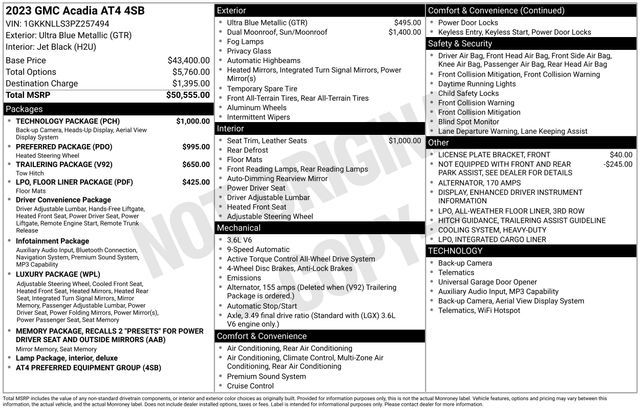 Take your drives to the next level with this GMC Acadia from Salt Lake Valley Buick GMC! Engineered for a smooth ride, advanced convenience, and lasting dependability, this vehicle is ready to handle everything your day throws at you. Price excludes tax, title, license fee, government fees, and $449 dealer documentary service fee. While every reasonable effort is made to ensure accuracy, we are not responsible for errors or omissions, and vehicles may be sold prior to inquiry—please contact the dealer to confirm availability. All financing is subject to approved credit. Looking for quality used cars in Salt Lake City? This GMC Acadia delivers style, versatility, and value - perfect for daily commutes, family trips, or weekend adventures. Stop by Salt Lake Valley Buick GMC to see this vehicle in person and explore our wide selection of pre-owned cars, trucks, and SUVs. Browse online at www.slvbuickgmc.com or call 801-265-1511 to schedule your test drive today! With Floor Liner Package (LPO) (1st & 2nd Row All-Weather Floor Liner (LPO), 3rd Row All-Weather Floor Liner (LPO), and Integrated Cargo Liner (LPO)), Luxury Package (8-Way Power Passenger Seat Adjuster, Heated & Ventilated Driver & Front Passenger Seats, Heated Rear Outboard Seating Positions, Power Passenger Lumbar Control Seat Adjuster, Power Tilt & Telescopic Steering Column, and Power-Adjustable Body-Color Outside Heated Mirrors), Memory Package, Preferred Equipment Group 4SB, Preferred Package (Heated Steering Wheel), Technology Package (8'' Multi-Color Enhanced Dr Instrument Info Display, HD Surround Vision, and Heads-Up Display), Trailering Package (170 Amp Alternator, Heavy-Duty Cooling System, Hitch Guidance w/Hitch View, and Trailering Assist Guidelines), 3.49 Final Drive Axle Ratio, 3rd row seats: split-bench, 4-Way Manual Passenger Seat Adjuster, 4-Wheel Disc Brakes, 6-Passenger (2-2-2 Seating Configuration), 8 Speakers, 8-Way Power Driver Seat Adjuster, ABS brakes, Air Conditioning, Alloy wheels, AM/FM radio: SiriusXM with 360L, Apple CarPlay/Android Auto, Auto High-beam Headlights, Auto-dimming Rear-View mirror, Automatic temperature control, Bose Premium 8-Speaker Audio System Feature, Brake assist, Bumpers: body-color, Compass, Delay-off headlights, Driver door bin, Driver vanity mirror, Dual front impact airbags, Dual front side impact airbags, Dual SkyScape 2-Panel Power Sunroof, Electronic Stability Control, Emergency communication system: OnStar and GMC connected services capable, Four wheel independent suspension, Front anti-roll bar, Front Bucket Seats, Front Center Armrest, Front dual zone A/C, Front fog lights, Front License Plate Bracket, Front reading lights, Fully automatic headlights, Garage door transmitter, Heated door mirrors, Heated Driver & Front Passenger Seats, Heated front seats, Illuminated entry, Knee airbag, Low tire pressure warning, Navigation System, Not Equipped w/Front & Rear Park Assist (060), Occupant sensing airbag, Outside temperature display, Overhead airbag, Overhead console, Panic alarm, Passenger door bin, Passenger vanity mirror, Power door mirrors, Power Driver Lumbar Control Seat Adjuster, Power driver seat, Power Liftgate, Power steering, Power windows, Premium Cloth Seat Trim, Radio data system, Radio: AM/FM 8'' Diagonal Multi-Touch Navigation, Rear air conditioning, Rear anti-roll bar, Rear reading lights, Rear window defroster, Rear window wiper, Remote keyless entry, Roof rack: rails only, Security system, SiriusXM w/360L, Speed control, Speed-sensing steering, Spoiler, Steering wheel mounted audio controls, Tachometer, Telescoping steering wheel, Tilt steering wheel, Traction control, Trip computer, Turn signal indicator mirrors, Variably intermittent wipers, Voltmeter, Wheels: 17'' Gloss Black Aluminum, and Wireless Apple CarPlay/Wireless Android Auto designed for convenience and enjoyment, this GMC Acadia is ready to take you wherever you want to go.