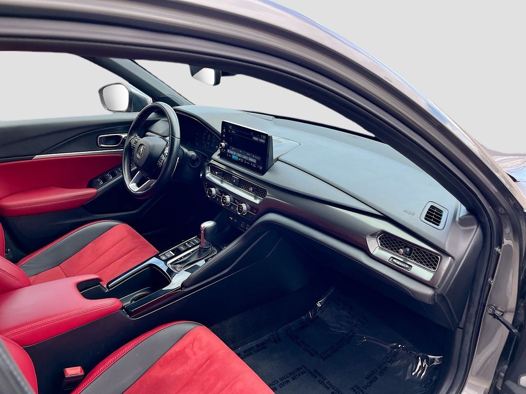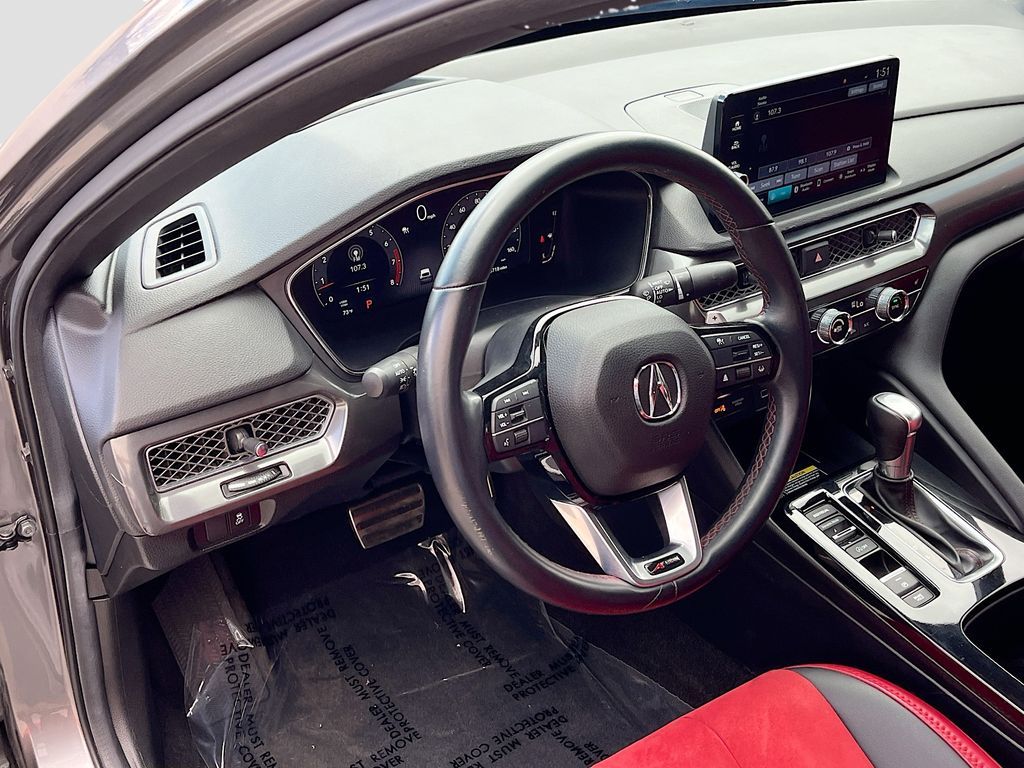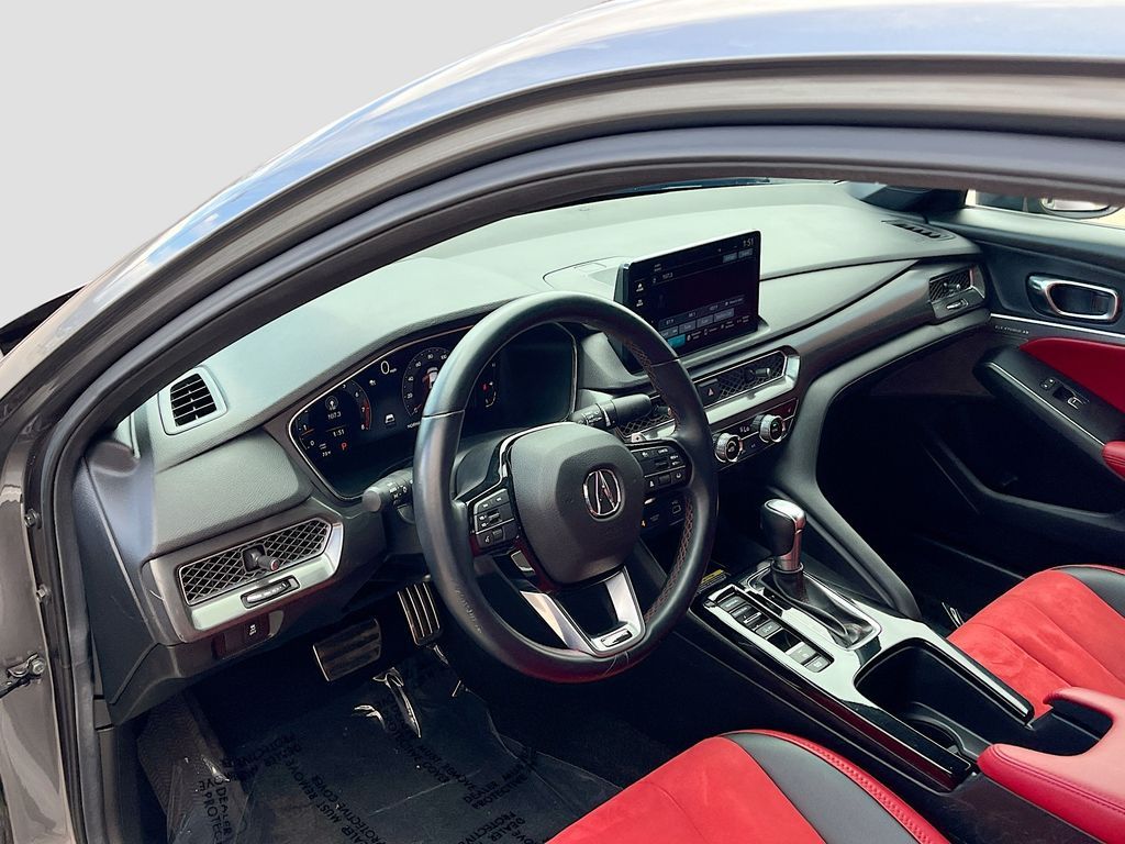 Discover the exceptional 2025 Acura Integra A-SPEC Technology at AutoSavvy Windsor, where cutting-edge design meets advanced technology. This sleek Liquid Carbon Metallic hatchback is equipped with a powerful 1.5L I-4 turbocharged engine, delivering an impressive 200 horsepower while achieving up to 36 MPG on the highway. With only 6,718 miles, this Integra promises a near-new driving experience. Inside, enjoy the luxurious Ebony interior, featuring simulated suede and leatherette upholstery, alongside a state-of-the-art infotainment system with Apple CarPlay, Android Auto, and a premium ELS Studio 3D audio system with 16 speakers. Safety is paramount, with features like Adaptive Cruise Control, Blind Spot Monitor, and Automatic Emergency Braking ensuring peace of mind on every journey. The current status of the title is branded, reflecting AutoSavvy Windsor's commitment to transparency and quality. This Acura Integra is Savvy Certified, having undergone a rigorous inspection to meet high safety and performance standards. Drive with confidence, knowing it is backed by our 4-month/4,500 Mile Warranty, safeguarding your investment. Visit AutoSavvy Windsor today to explore why the 2025 Acura Integra A-SPEC Technology is the ideal choice for those seeking a stylish, well-equipped, and dependable vehicle. Whether navigating bustling city streets or embarking on a long road trip, this Integra is ready to deliver an exceptional driving experience.