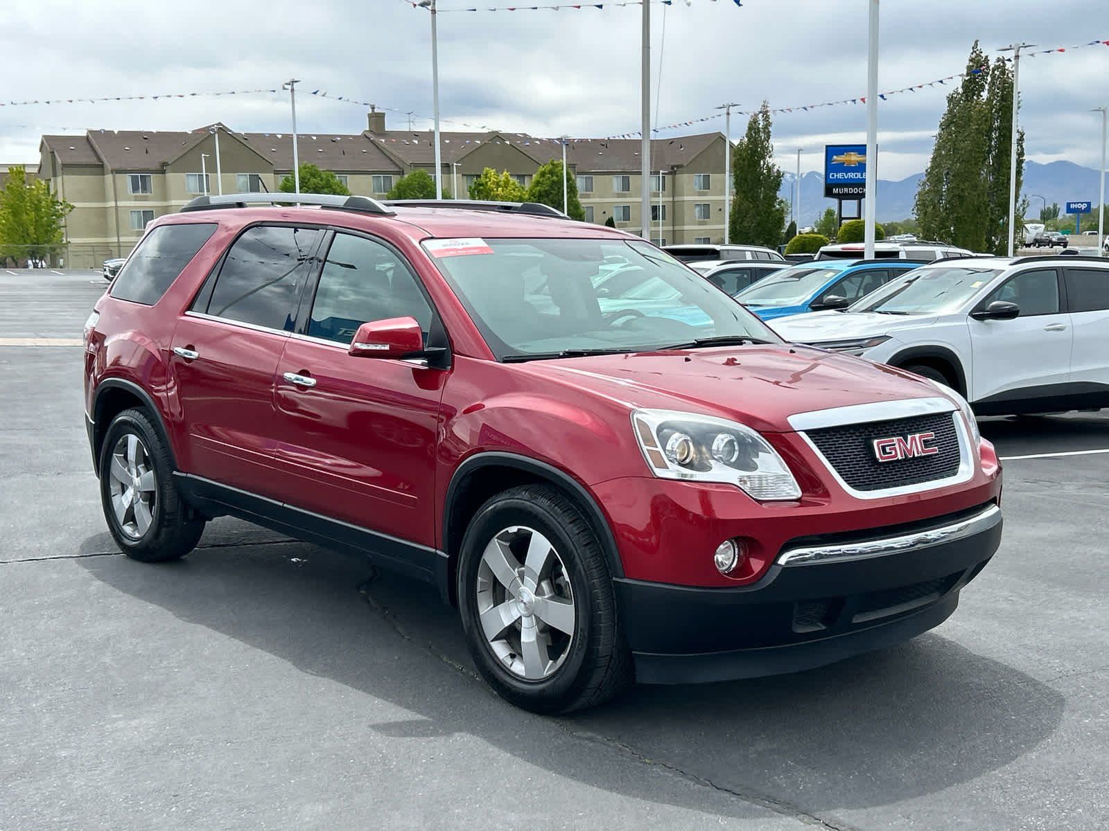 Leather Seats, Third Row Seat, Quad Bucket Seats, Power Liftgate, Rear Air, Heated Driver Seat, Back-Up Camera, Satellite Radio. Rear Spoiler, Rear Seat Audio Controls, Keyless Entry, Remote Trunk Release. GMC SLT1 with Crystal Red Tintcoat exterior and Light Titanium interior features a V6 Cylinder Engine with 288 HP at 6300 RPM*.