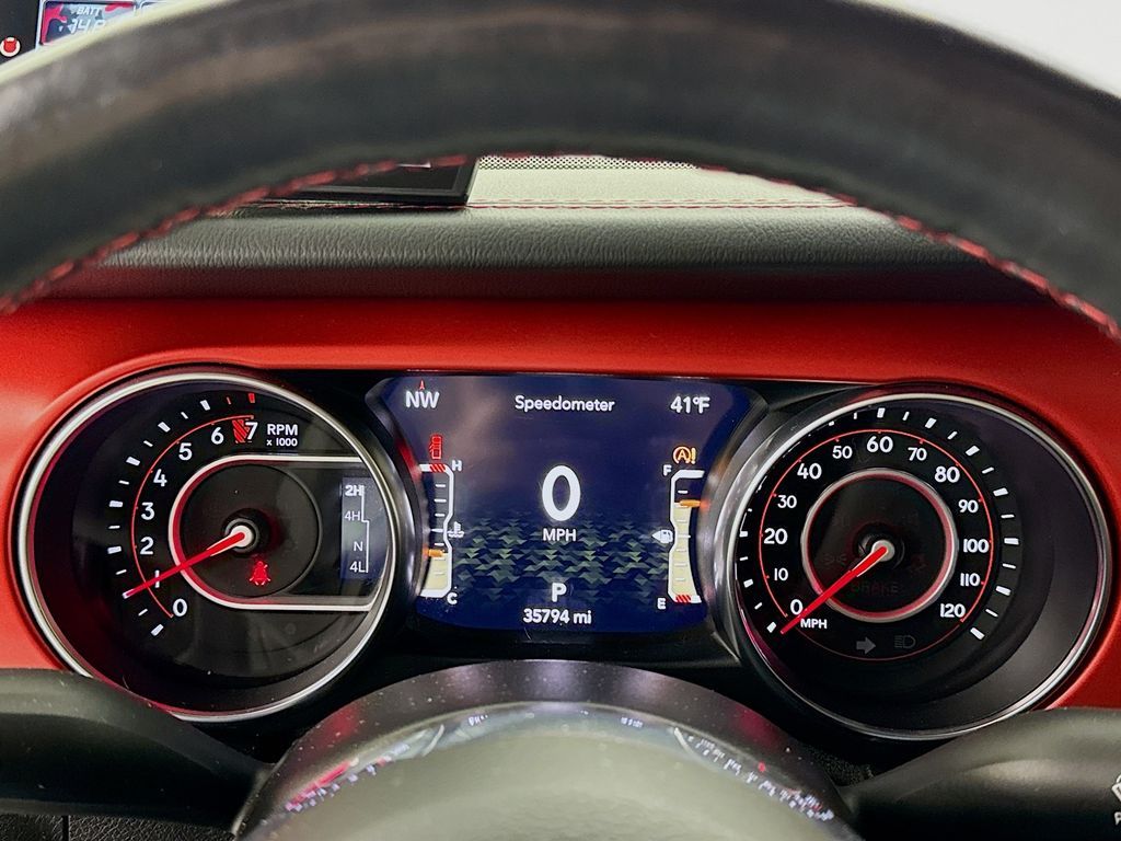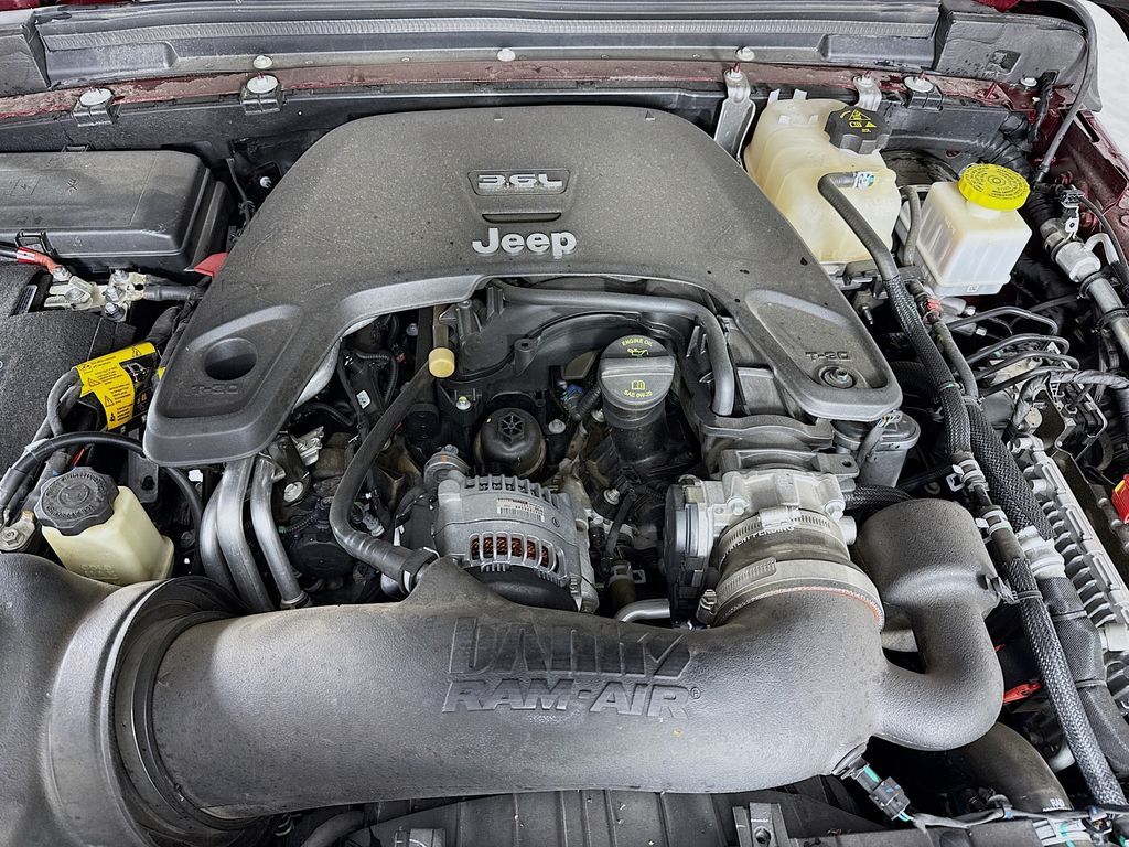 Advanced Safety Group: Advanced Brake Assist; Auto High Beam Headlamp Control; Adaptive Cruise Control with Stop; Full Speed Forward Collision Warning Plus,Cold Weather Group: Remote Start System; Heated Front Seats; Heated Steering Wheel,Safety Group: Blind Spot and Cross Path Detection; ParkSense Rear Park Assist System,LED Lighting Group: Daytime Running Lamps LED Accents; Front LED Fog Lamps; LED Premium Reflector Headlamps; LED Taillamps; LED Park Turn Lamps,Auxiliary Switch Group: 700 Amp Maintenance Free Battery; Auxiliary Switches; 240 Amp Alternator,8.4" Radio and Premium Audio Group: SiriusXM Traffic Plus; Alpine Premium Audio System; HD Radio; Uconnect 4C Navigation Radio with 8.4" Display; Rear View Auto Dim Mirror; For Details, Visit DriveUconnect.com; 1-Year SiriusXM Guardian Trial; 5-Year SiriusXM Travel Link Service; GPS Navigation; 5-Year SiriusXM Traffic Service; SiriusXM Travel Link; Emergency/assistance Call; 8.4" Touchscreen Display,Quick Order Package 24R,Trailer Tow Package: Heavy Duty Engine Cooling; Trailer Hitch Zoom; Class IV Hitch Receiver; 240 Amp Alternator,Body Color 3-Piece Hard Top,Leather Trimmed Bucket Seats,Alpine Premium Audio System,2-Piece Body Color Fender Flares,Remote Proximity Keyless Entry,MOPAR Hardtop Headliner,Remote Start System,MOPAR Spray in Bedliner,Bluetooth Wireless Speaker,Snazzberry Pearlcoat,MOPAR All-Weather Floor Mats,Apple CarPlay/Android Auto smart device mirroring,Integrated navigation system with voice activation,Blind-Spot Monitoring blind spot warning,Heated steering wheel,Uconnect w/Bluetooth handsfree wireless device connectivity,7 USB ports,First-row targa composite sunroof with manual activation,Leather front seat upholstery,Driver seat with 6-way directional controls,Front passenger seat with 4-way directional controls,8.4 inch primary display,Forward Collision Warning-Plus,ParkView w/Trailer Hitch Zoom rear mounted camera,Adaptive cruise control with stop and go,Predictive brake assist system,Cruise control with steering wheel mounted controls,Heated driver and front passenger seats,Manual convertible roof,Primary monitor touchscreen,Cross Path Detection collision warning,Rock-Trac part-time 4WD,3.6L V-6 DOHC, variable valve control, regular unleaded, engine with 285HP,Smart key with hands-free access and push button start,Bluetooth wireless audio streaming,Dual-zone front climate control,Voice-activated climate control,Active front anti-roll with driver control,Auto high-beam headlights,Sentry Key immobilizer,Alpine speakers,SiriusXM Traffic Plus real-time traffic,SiriusXM Guardian vehicle integrated emergency SOS system,Trailer sway control,External memory control,Internet radio capability,Configurable instrumentation gauges,Electronic stability control system with anti-roll,Selec-Speed Control hill descent control,Hill start assist,Removable sunroof,Leather rear seat upholstery,Sliding rear windshield,1 wireless speaker,Automatic climate control,ParkSense rear parking sensors,LED daytime running lights,LED brake lights,LED front fog lights,Leather steering wheel,SiriusXM Travel Link real-time weather