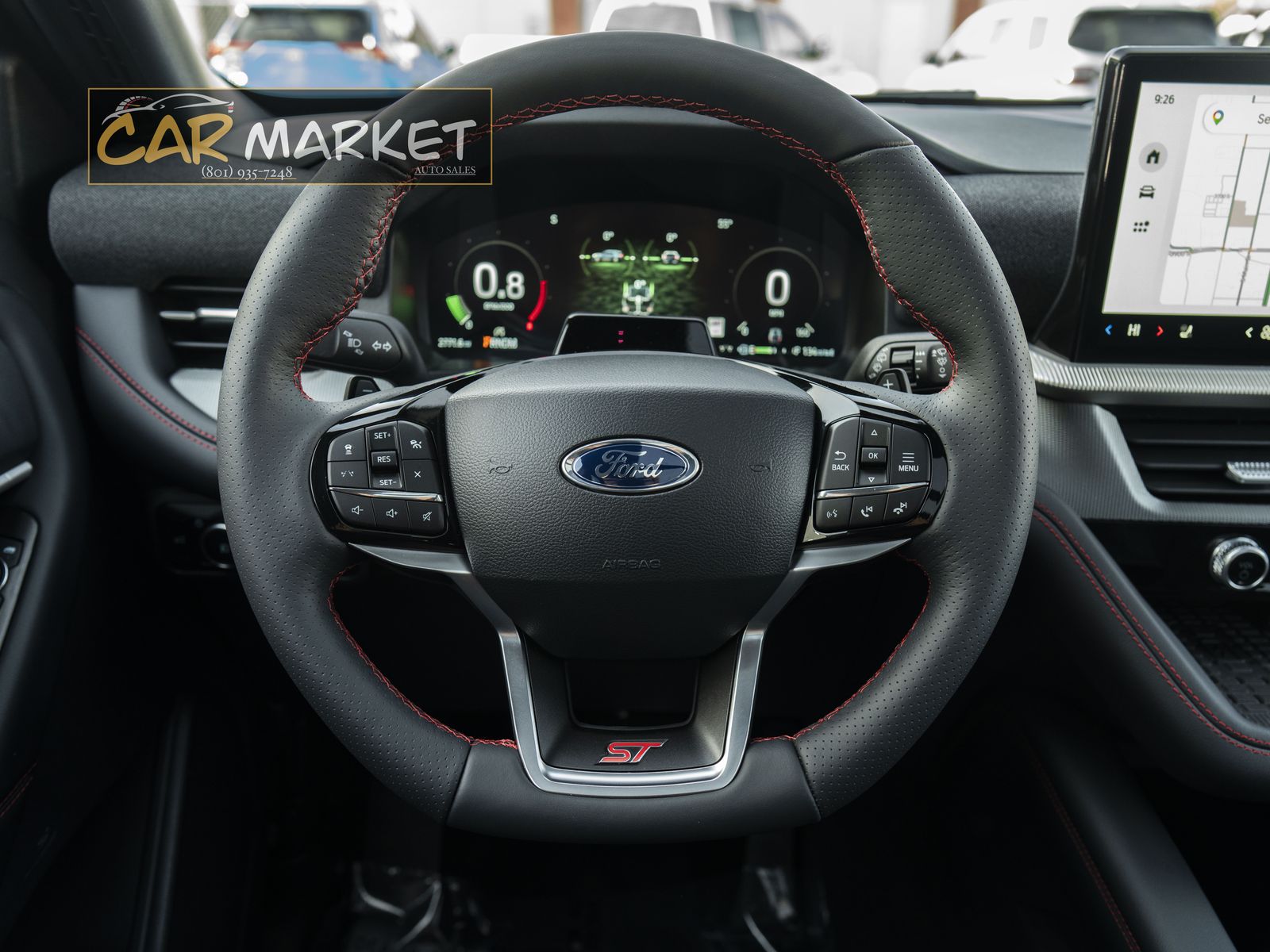 With its sport-tuned suspension, performance brakes, and 400hp twin-turbo 3.0L EcoBoost V6, this ST is built for enthusiasts who demand capability without compromise. The Onyx Miko leather interior features striking red stitching throughout with ST embroidering, captain's chairs in the second row, and a power-folding third row for flexible 6-passenger seating.