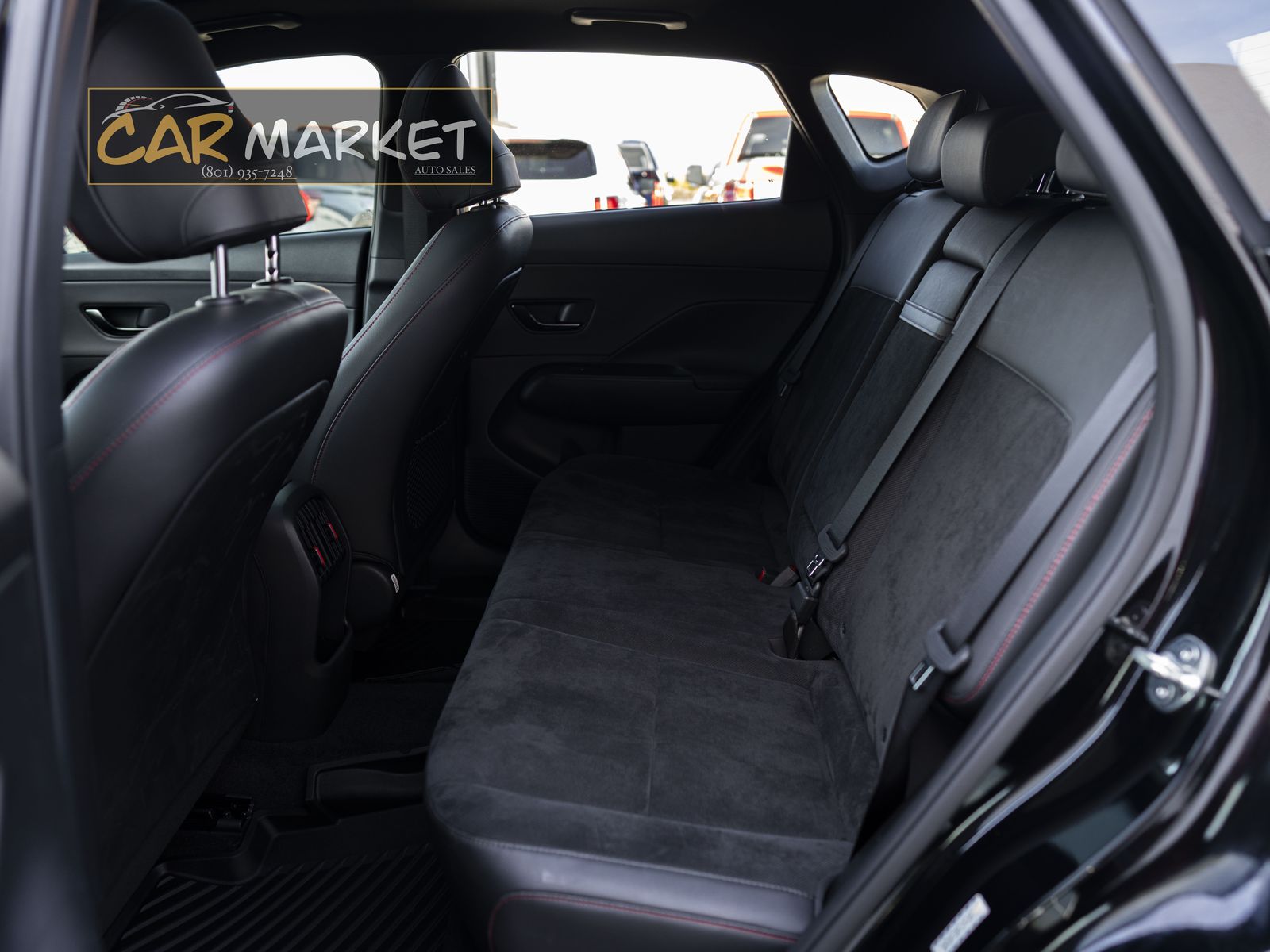 Sport leather seating surfaces with red stitching accents