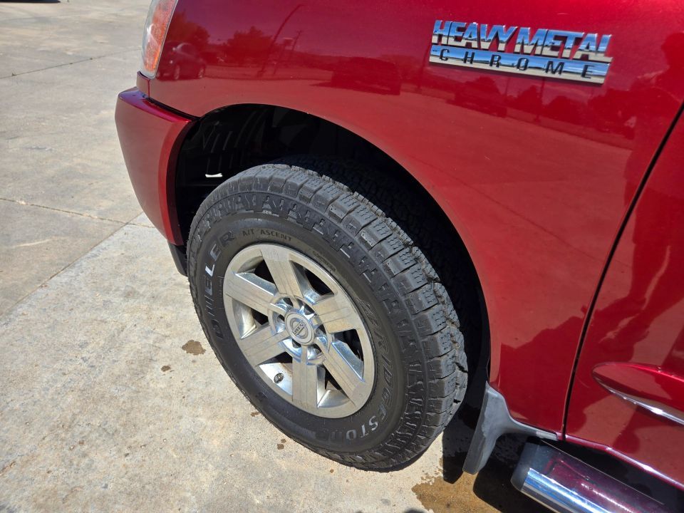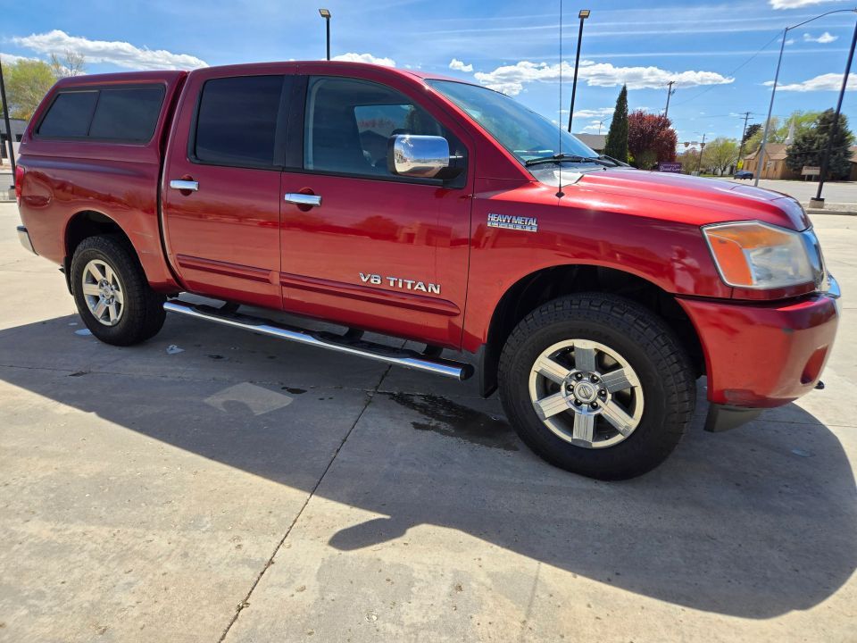 Nissan Titan crew cab 4x4 V8. Clean title. Custom shell. Heavy metal chrome edition. Power everything, back up camera, premium wheels, bed liner, tow package, and running boards. Runs and drives great. Stop by and give it a drive today!