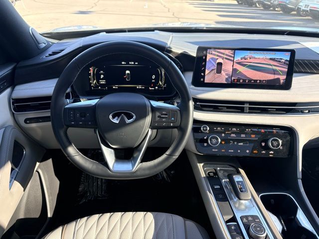 The exterior showcases a refreshed, modern design with bold lines, signature INFINITI styling, LED lighting, and 20-inch alloy wheels, giving it a sophisticated and commanding presence.