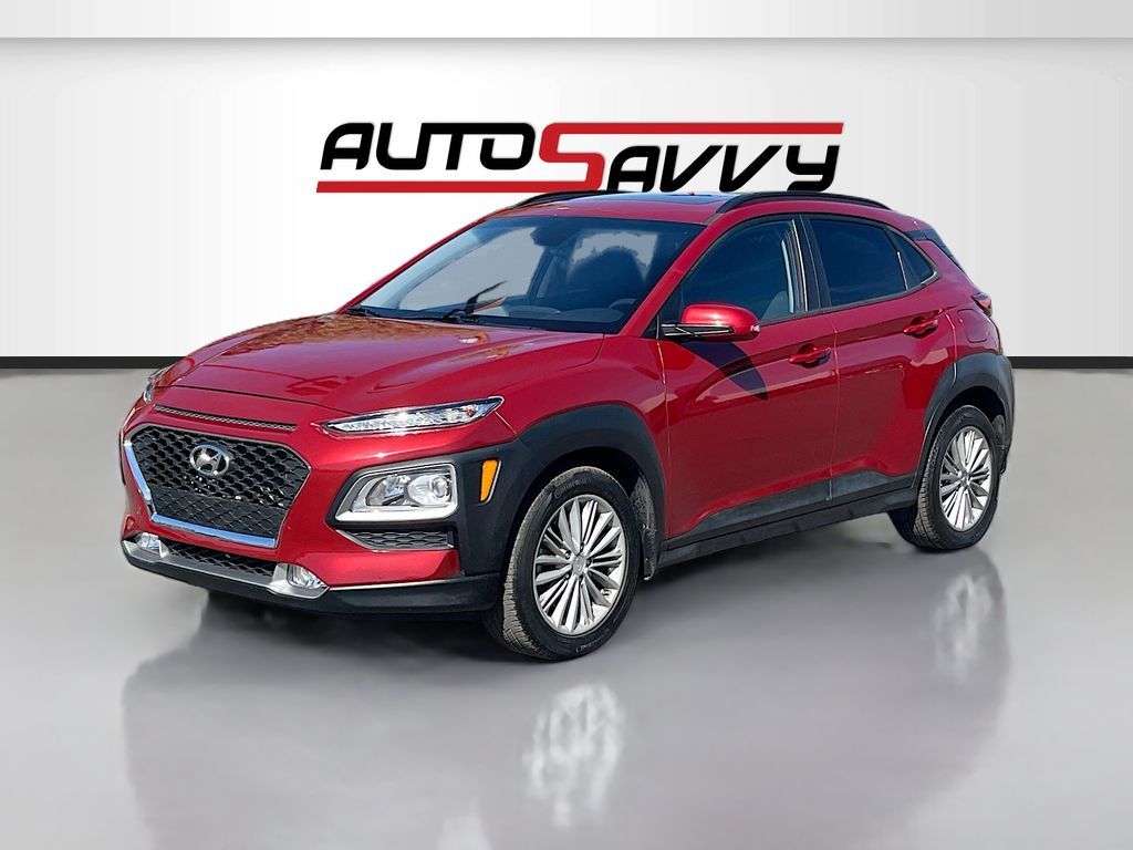 Discover the 2021 Hyundai Kona SEL Plus Auto AWD at AutoSavvy Las Vegas, a certified sport utility vehicle that combines style, performance, and technology. With a striking Pulse Red exterior and a sophisticated Gray/Black interior, this Kona stands out on the road. Powered by a 2.0L I-4 engine delivering 147 horsepower, it offers a smooth ride with its 6-speed automatic transmission and all-wheel drive system. Despite its low mileage of 40,041, this Kona promises longevity and efficiency, achieving up to 30 MPG on the highway. Inside, enjoy premium features like a power sunroof, heated front seats, and a 7-inch touchscreen with Apple CarPlay and Android Auto integration. Safety is paramount with advanced features such as Blind Spot Collision Warning, Lane Keep Assist, and a rearview camera. The current status of the title is branded, highlighting AutoSavvy's commitment to transparency and quality assurance. This Hyundai Kona has undergone a meticulous inspection to meet high standards of reliability and performance. As a Savvy Certified vehicle, it includes a 4-month/4,500 Mile Warranty, providing peace of mind for your investment. Visit AutoSavvy Las Vegas today to explore this exceptional vehicle and experience the perfect blend of innovation, comfort, and safety in the 2021 Hyundai Kona SEL Plus.