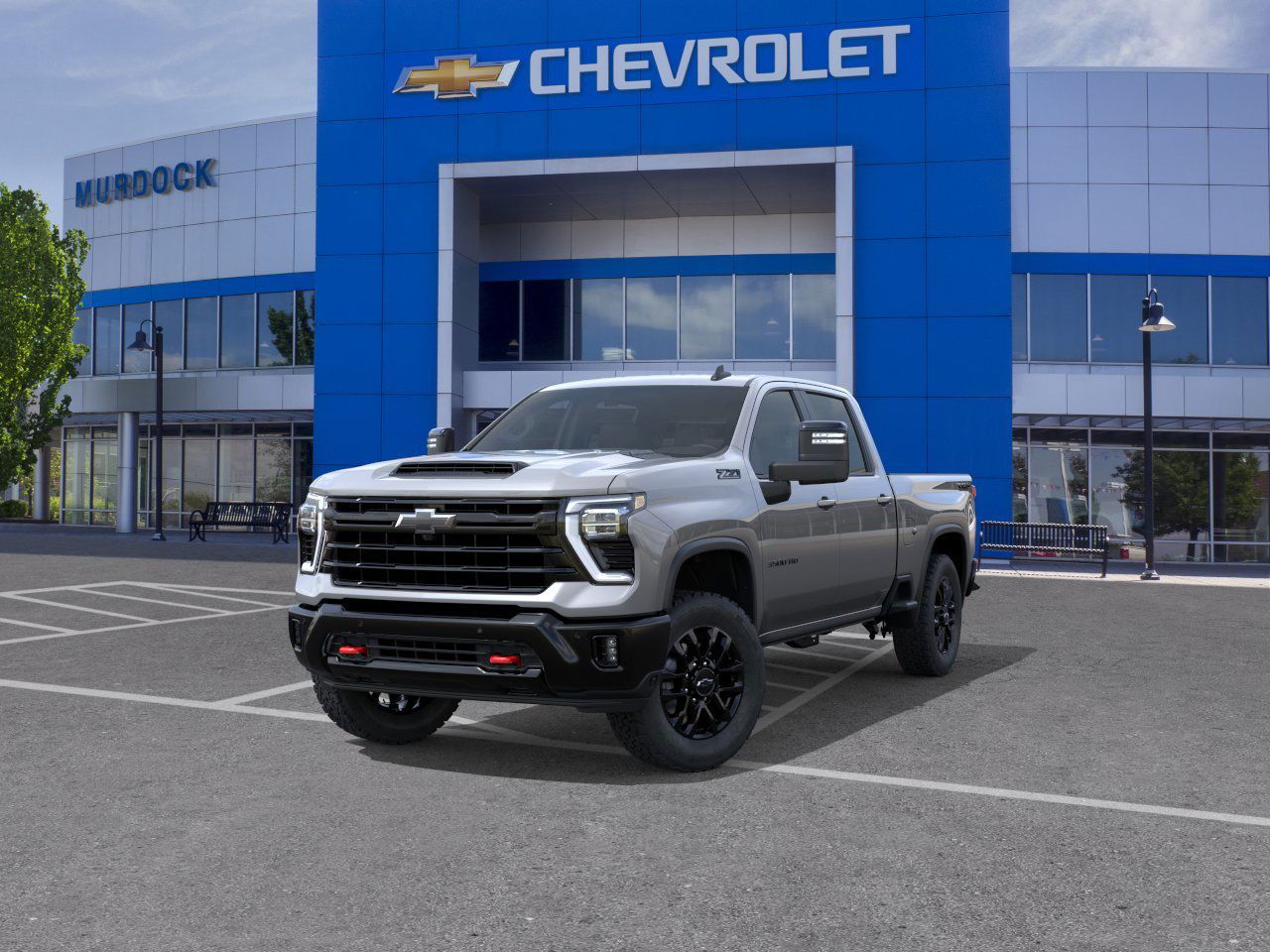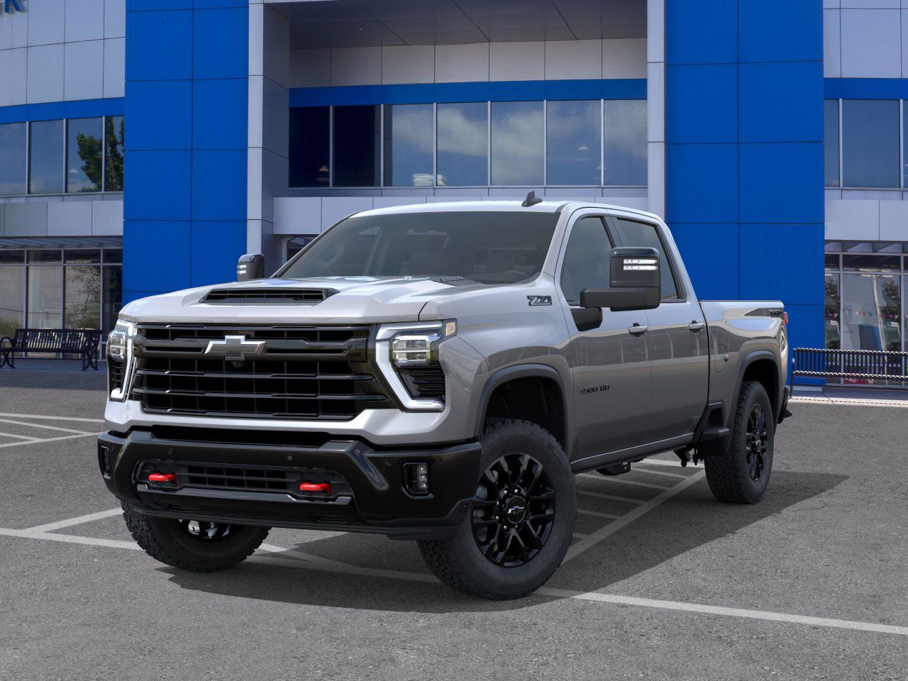 ENGINE, DURAMAX 6.6L TURBO-DIESEL V8, B20-DIESEL COMPATIBLE (470 hp [350.5 kW] @ 2800 rpm, 975 lb-ft of torque [1322 Nm] @ 1600 rpm), TRAIL BOSS PACKAGE includes black grille bar with "Chevy Black Bow Tie", Black grille inserts, (SRI) 20" High gloss Black painted wheels, (VB5) High Gloss Black painted front bumper, (VT5) High Gloss Black painted rear bumper, (UGA) Red Tow Hooks, (QFG) LT275/65R20 BF Goodrich off-road tires, Black skid plate, Black badging, Black bowtie on horn pad, (DP6) High Gloss Black mirror caps, Black hood vent surround, High Gloss Black door handles and (CGN) Chevytec spray-on bedliner Includes high-intensity LED headlamps and (DWI) trailer mirrors. When ordered with (QK2) Multi-Flex tailgate, will include Black tailgate bowtie. SAFETY PACKAGE includes (UD5) Front and Rear Park Assist, (UKV) Trailer Side Blind Zone Alert, (UFG) Rear Cross Traffic Alert, (UV2) HD Surround Vision, (UVN) Bed View Camera and (TRG) Trailer Camera Provisions (Includes (UET) Trailering App. CONVENIENCE PACKAGE includes (UF2) Cargo bed LED lighting, (CJ2) dual-zone automatic climate control, (A2X) 10-way power driver seat including power lumbar, (N37) manual tilt/telescoping steering column and (T3U) LED fog lamps, SEATS, FRONT BUCKET WITH CENTER CONSOLE, FOR CREW CAB AND DOUBLE CAB MODELS, REMOTE START PACKAGE includes (BTV) Remote Start, (UTJ) Theft-deterrent system and (C49) rear-window defogger, ADAPTIVE CRUISE CONTROL, MIRRORS, OUTSIDE POWER-ADJUSTABLE VERTICAL TRAILERING WITH HEATED AND AUTO-DIMMING UPPER GLASS lower convex mirrors, turn signal indicators, puddle lamps, perimeter lighting, auxiliary lighting, power folding/manual extending (extends 3.31" [84.25mm]) Includes (DD8) auto-dimming rearview mirror.), CONVENIENCE PACKAGE II includes (KC9) 120-volt bed-mounted power outlet, (PZ8) Hitch Guidance with Hitch View, (UET) Trailering App, (A48) rear sliding power window and (UG1) Universal Home Remote Includes (R7O) Cloth Rear Seat with Storage Package. HEAT PACKAGE includes (KA1) Heated driver and passenger seats and (KI3) Heated steering wheel, AUDIO SYSTEM, CHEVROLET INFOTAINMENT 3 PREMIUM SYSTEM with Google built-in compatibility (select service plan required, terms and limitations apply) including navigation capability, 13.4" diagonal HD color touchscreen, includes multi-touch display, AM/FM stereo, Bluetooth® streaming audio for music and most phones; featuring Wireless Apple CarPlay® and Wireless Android Auto® capability for compatible phones, advanced voice recognition, in-vehicle apps, personalized profiles for infotainment and vehicle settings (STD), TRANSMISSION, 10-SPEED AUTOMATIC, SEAT, UP-LEVEL REAR WITH STORAGE PACKAGE, 60/40 FOLDING BENCH includes full-length bench seat, seatback storage on left and right side, center fold out armrest with 2 cupholders, full cab width under-seat storage, (includes child seat top tether anchor).
