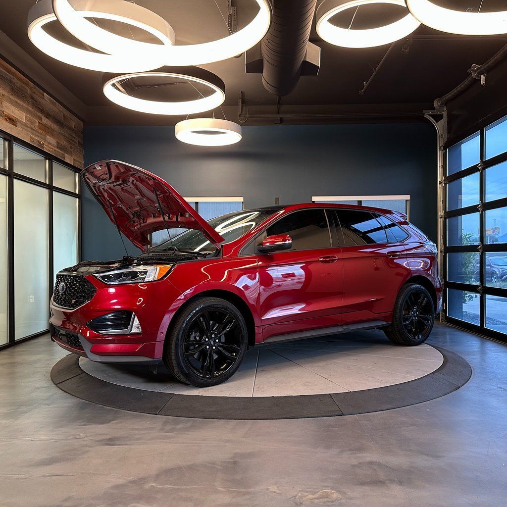 No accident history, AWD, ST trim with heated front and rear seats, panoramic vista roof, power liftgate, rear parking sensors, AppLink/Apple CarPlay/Android Auto, and much more! 2019 Ford Edge ST AWD with branded title from hail, 8-Speed Automatic 2.7L V6 EcoBoost 19/26 City/Highway MPG