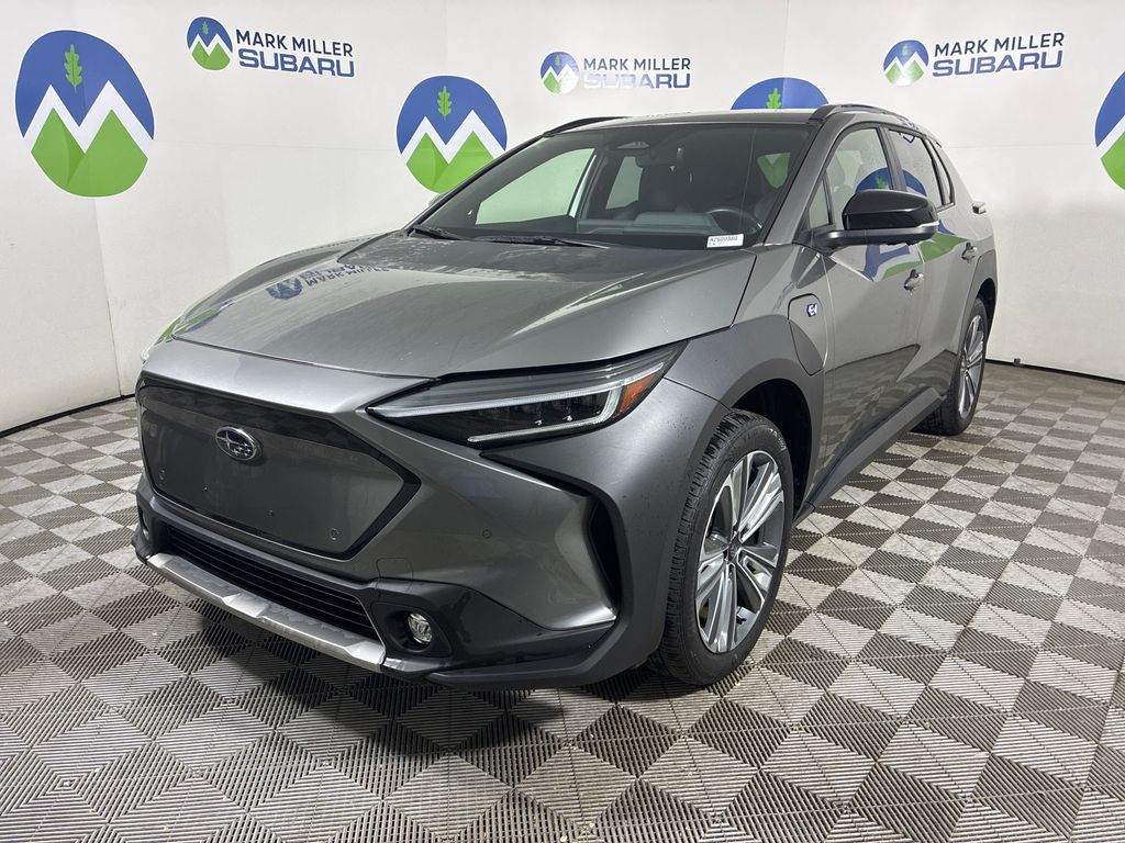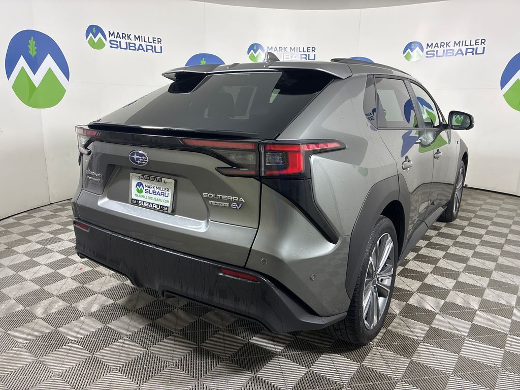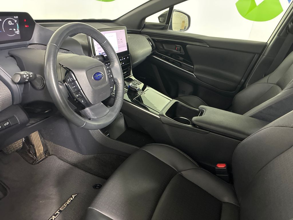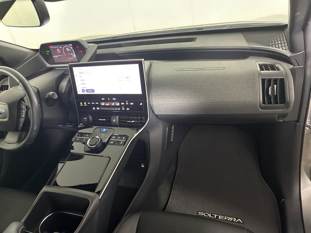 This 2023 Smoked Carbon Subaru Solterra Limited AWD is well equipped and includes these features and benefits: Standard Model, Subaru Certified Pre-Owned Certified, 11 Speakers, 13.8 Axle Ratio, 4-Wheel Disc Brakes, ABS brakes, Air Conditioning, All-Weather Floor Liners, Alloy wheels, AM/FM radio: SiriusXM, Auto High-beam Headlights, Auto-dimming Rear-View mirror, Automatic temperature control, Brake assist, Bumpers: body-color, Driver door bin, Driver vanity mirror, Dual front impact airbags, Dual front side impact airbags, Electronic Stability Control, Emergency communication system: Subaru Solterra Connect - Safety Connect (1 year trial included), Four wheel independent suspension, Front anti-roll bar, Front Bucket Seats, Front Center Armrest, Front dual zone A/C, Front fog lights, Front reading lights, Fully automatic headlights, Garage door transmitter: HomeLink, harman/kardon® Speakers, Heated door mirrors, Heated Front Bucket Seats, Heated front seats, Heated rear seats, Heated steering wheel, Illuminated entry, Knee airbag, Leather steering wheel, Low tire pressure warning, Memory seat, Navigation system: Cloud Navigation System (Subscription required), Occupant sensing airbag, Outside temperature display, Overhead airbag, Overhead console, Panic alarm, Passenger door bin, Passenger vanity mirror, Power door mirrors, Power driver seat, Power Liftgate, Power steering, Power windows, Radio data system, Radio: Subaru Solterra Connect 12.3'' Multimedia System, Rain sensing wipers, Rear anti-roll bar, Rear reading lights, Rear seat center armrest, Rear window defroster, Remote keyless entry, Security system, Speed control, Speed-sensing steering, Split folding rear seat, Spoiler, StarTex Upholstery, Steering wheel mounted audio controls, Telescoping steering wheel, Tilt steering wheel, Traction control, Trip computer, Turn signal indicator mirrors, Variably intermittent wipers, and Wheels: 20'' x 7.5'' J Aluminum-Alloy Gray Finish.