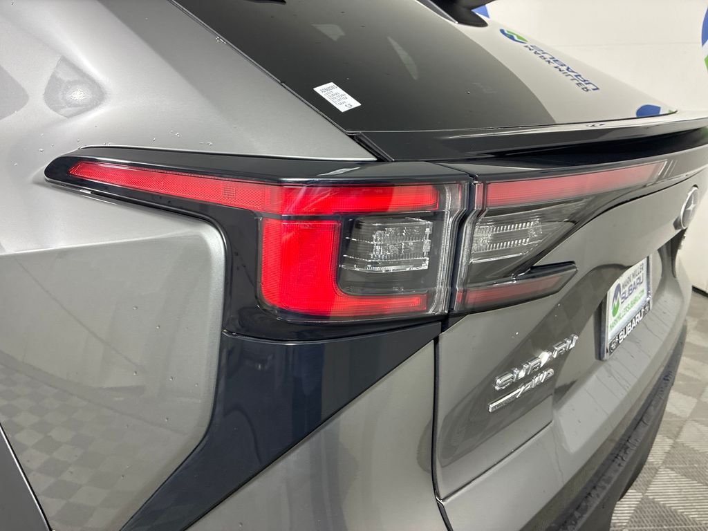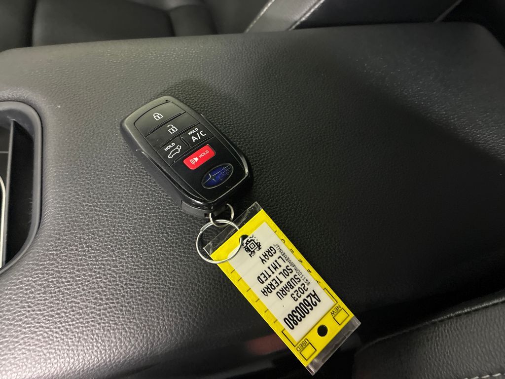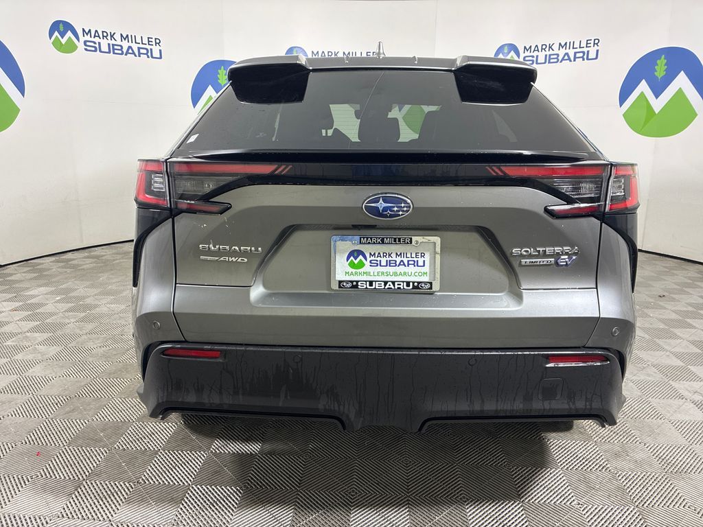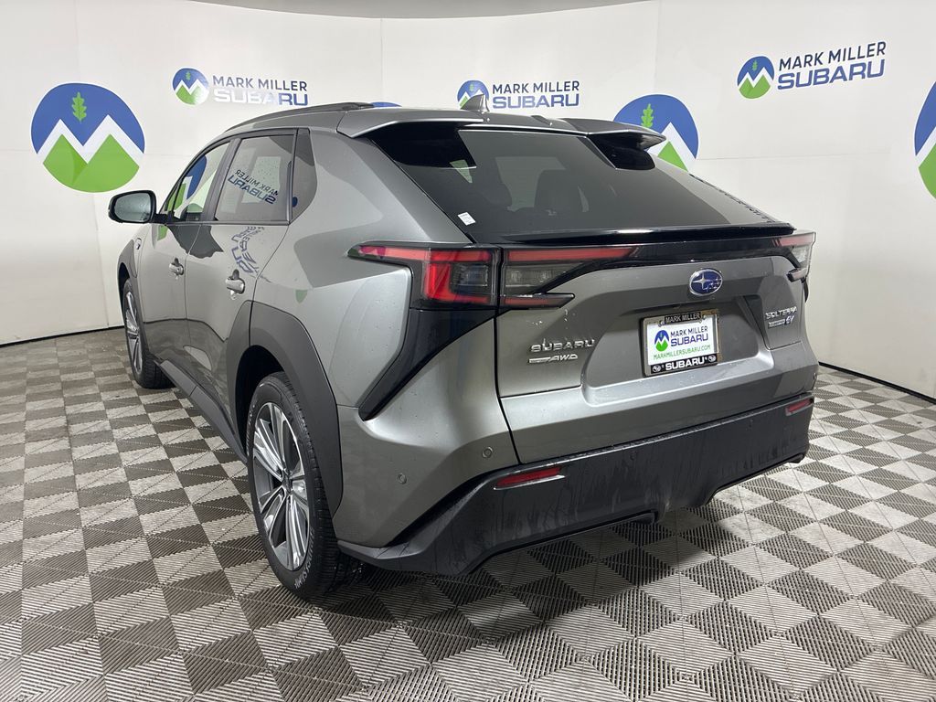 This 2023 Smoked Carbon Subaru Solterra Limited AWD is well equipped and includes these features and benefits: Standard Model, Subaru Certified Pre-Owned Certified, 11 Speakers, 13.8 Axle Ratio, 4-Wheel Disc Brakes, ABS brakes, Air Conditioning, All-Weather Floor Liners, Alloy wheels, AM/FM radio: SiriusXM, Auto High-beam Headlights, Auto-dimming Rear-View mirror, Automatic temperature control, Brake assist, Bumpers: body-color, Driver door bin, Driver vanity mirror, Dual front impact airbags, Dual front side impact airbags, Electronic Stability Control, Emergency communication system: Subaru Solterra Connect - Safety Connect (1 year trial included), Four wheel independent suspension, Front anti-roll bar, Front Bucket Seats, Front Center Armrest, Front dual zone A/C, Front fog lights, Front reading lights, Fully automatic headlights, Garage door transmitter: HomeLink, harman/kardon® Speakers, Heated door mirrors, Heated Front Bucket Seats, Heated front seats, Heated rear seats, Heated steering wheel, Illuminated entry, Knee airbag, Leather steering wheel, Low tire pressure warning, Memory seat, Navigation system: Cloud Navigation System (Subscription required), Occupant sensing airbag, Outside temperature display, Overhead airbag, Overhead console, Panic alarm, Passenger door bin, Passenger vanity mirror, Power door mirrors, Power driver seat, Power Liftgate, Power steering, Power windows, Radio data system, Radio: Subaru Solterra Connect 12.3'' Multimedia System, Rain sensing wipers, Rear anti-roll bar, Rear reading lights, Rear seat center armrest, Rear window defroster, Remote keyless entry, Security system, Speed control, Speed-sensing steering, Split folding rear seat, Spoiler, StarTex Upholstery, Steering wheel mounted audio controls, Telescoping steering wheel, Tilt steering wheel, Traction control, Trip computer, Turn signal indicator mirrors, Variably intermittent wipers, and Wheels: 20'' x 7.5'' J Aluminum-Alloy Gray Finish.