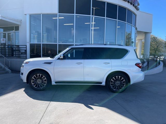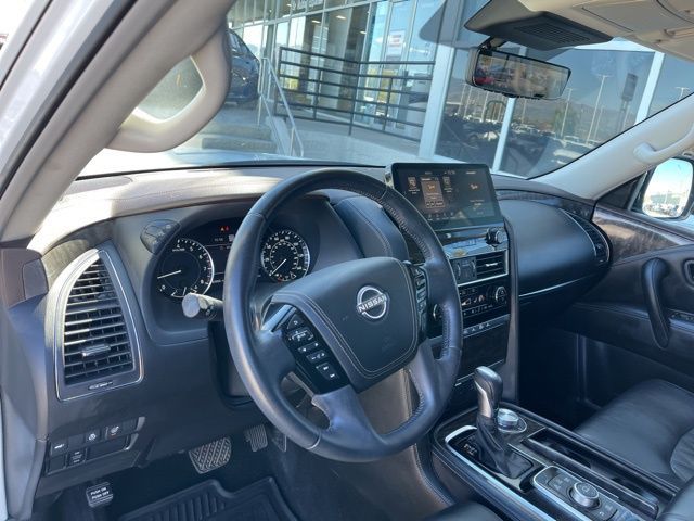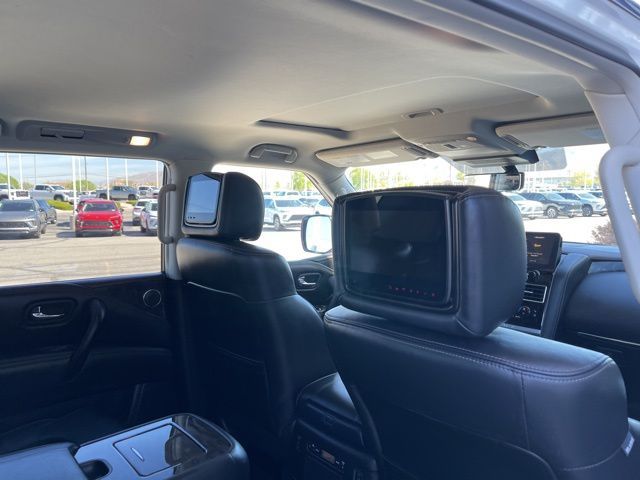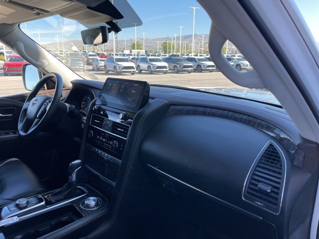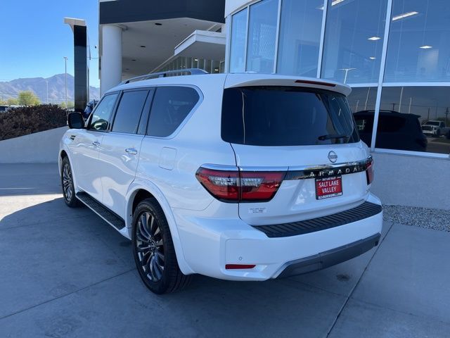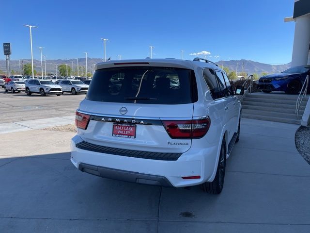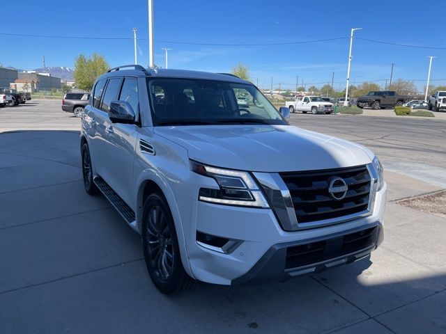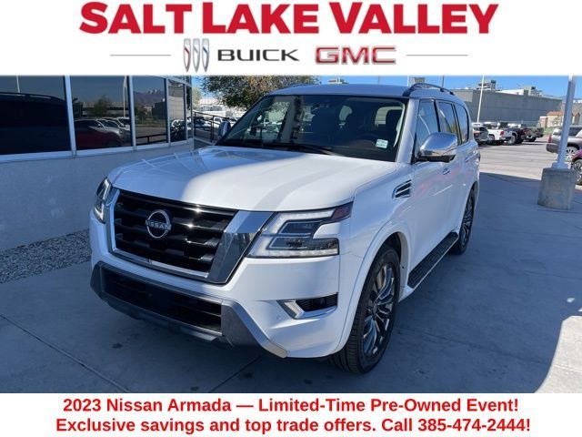 Take your drives to the next level with this Nissan Armada from Salt Lake Valley Buick GMC! Engineered for a smooth ride, advanced convenience, and lasting dependability, this vehicle is ready to handle everything your day throws at you. Price excludes tax, title, license fee, government fees, and $449 dealer documentary service fee. While every reasonable effort is made to ensure accuracy, we are not responsible for errors or omissions, and vehicles may be sold prior to inquiry—please contact the dealer to confirm availability. All financing is subject to approved credit. Looking for quality used cars in Salt Lake City? This Nissan Armada delivers style, versatility, and value - perfect for daily commutes, family trips, or weekend adventures. Stop by Salt Lake Valley Buick GMC to see this vehicle in person and explore our wide selection of pre-owned cars, trucks, and SUVs. Browse online at www.slvbuickgmc.com or call 801-265-1511 to schedule your test drive today! With Captain's Chairs Package (2nd Row Captain's Chairs and 2nd Row Center Console w/Padded Armrest), Cargo Package, 13 Speakers, 2.94 Axle Ratio, 3rd Row Carpeted Floor Mats - Captain Seat, 3rd row seats: split-bench, 4-Wheel Disc Brakes, A/V remote, ABS brakes, Air Conditioning, Alloy wheels, AM/FM radio: SiriusXM, Anti-whiplash front head restraints, Auto High-beam Headlights, Auto tilt-away steering wheel, Auto-dimming door mirrors, Auto-dimming Rear-View mirror, Auto-leveling suspension, Automatic temperature control, Bose 13-Speaker Premium Audio System, Brake assist, Bumpers: body-color, Climate-Controlled Front Bucket Seats, Cross Bars, Delay-off headlights, Driver door bin, Driver vanity mirror, Dual front impact airbags, Dual front side impact airbags, Electronic Stability Control, Emergency communication system: NissanConnect Services, Exterior Parking Camera Rear, Four wheel independent suspension, Front anti-roll bar, Front Bucket Seats, Front Center Armrest, Front dual zone A/C, Front fog lights, Front reading lights, Fully automatic headlights, Garage door transmitter: HomeLink, Headphones, Heated door mirrors, Heated front seats, Heated rear seats, Heated steering wheel, Illuminated entry, Knee airbag, Leather Shift Knob, Low tire pressure warning, Memory seat, Navigation System, Nissan USB Charging Cable Set, NissanConnect featuring Apple CarPlay and Android Auto, Occupant sensing airbag, Outside temperature display, Overhead airbag, Overhead console, Panic alarm, Passenger door bin, Passenger vanity mirror, Power door mirrors, Power driver seat, Power Liftgate, Power moonroof, Power passenger seat, Power steering, Power windows, Premium audio system: Bose, Quilted Leather Seat Trim, Radio: NissanConnect w/SiriusXM, Rain sensing wipers, Rear air conditioning, Rear anti-roll bar, Rear reading lights, Rear seat center armrest, Rear window defroster, Rear window wiper, Rear-Seat Entertainment, Reclining 3rd row seat, Remote keyless entry, Security system, Speed control, Speed-sensing steering, Speed-Sensitive Wipers, Split folding rear seat, Spoiler, Steering wheel memory, Steering wheel mounted audio controls, Tachometer, Telescoping steering wheel, Tilt steering wheel, Traction control, Trip computer, Turn signal indicator mirrors, Variably intermittent wipers, Ventilated front seats, Voltmeter, and Wheels: 22'' x 8J Machine-Faced w/Tinted Clear Coat designed for convenience and enjoyment, this Nissan Armada is ready to take you wherever you want to go.