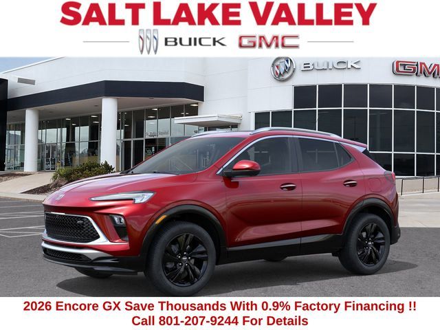 2026 Buick Encore GX Sport Touring 4D Sport Utility Brilliant Red ECOTEC 1.3L Turbo AWD 26/28 City/Highway MPG --- Please note that the final selling price does not include tax, tag, title, documentation fees, dealer-installed options, or pricing adjustments due to market demand. Financing through GM Financial is required for all discounts to be applied. Special finance offers may not be combined with some factory incentives. While we strive for accuracy, errors may occur, so please verify all information with a customer service representative. For the most accurate pricing, call us at (801) 265-1511 or visit our dealership in person. Prices and payments are subject to change based on manufacturer incentives. ... Sale Price may include dealer discount, $2000 - Buick GMC Bonus Cash