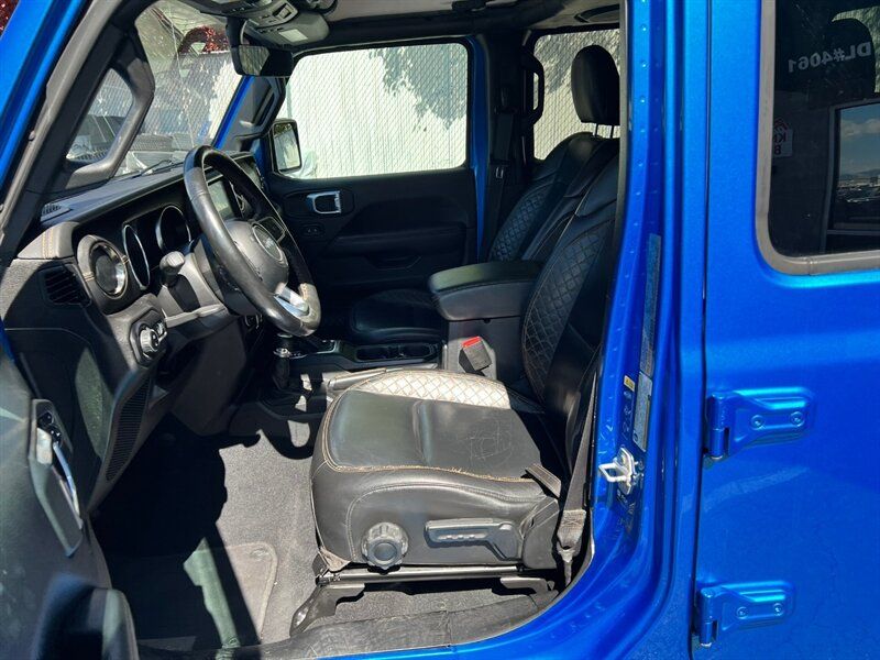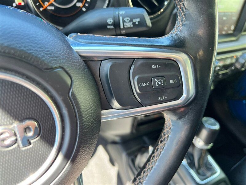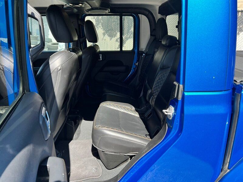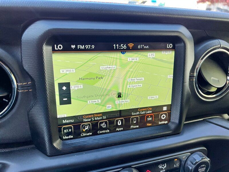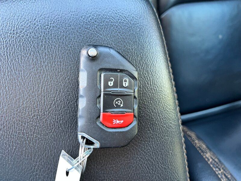 INSTALLED FEATURES: Air filtration, Front air conditioning: automatic climate control, Front air conditioning zones: dual, Rear vents: second row, Airbag deactivation: occupant sensing passenger, Front airbags: dual, Side airbags: front, Antenna type: diversity / mast, Auxiliary audio input: Bluetooth / iPod/iPhone / jack / memory card slot / USB, Premium brand: Alpine, Radio: AM/FM / HD radio / touch screen display / voice operated, Radio data system, Satellite radio: SiriusXM, Speed sensitive volume control, Subwoofer: 1, Total speakers: 8, Watts: 552, ABS: 4-wheel, Braking assist, Electronic brakeforce distribution, Front brake type: ventilated disc, Power brakes, Rear brake type: ventilated disc, Armrests: rear center with cupholders / rear folding, Dash trim: leatherette / simulated alloy, Door trim: simulated alloy, Floor mat material: carpet, Floor material: carpet, Floor mats: front / rear, Parking brake trim: leather, Shift knob trim: leather, Ambient lighting, Assist handle: front / rear, Center console: front console with armrest and storage / locking, Courtesy lights: door, Cruise control, Cupholders: front / illuminated / rear, Footwell lights, Multi-function remote: panic alarm / proximity entry system, One-touch windows: 2, Power outlet(s): 115V front / 12V front / USB front / USB-C front, Power steering, Power windows: lockout button, Push-button start, Reading lights: front / rear, Rearview mirror: auto-dimming, Remote engine start, Steering wheel: tilt and telescopic, Steering wheel mounted controls: audio / cruise control / multi-function / phone / voice control, Storage: door pockets / front seatback, Tool kit, Universal remote transmitter: Homelink - garage door opener, Vanity mirrors: dual illuminating, Door handle color: body-color, Fender lip moldings: body-color, Front bumper color: body-color, Grille color: body-color, Mirror color: black, Pickup bed light, Rear bumper color: body-color, Running board color: black, Running boards, Skid plate(s): powertrain / rear, Tailgate: power locking, Window trim: black, Connected in-car apps: Google POIs / Google search / SiriusXM Travel Link, Infotainment: Uconnect, Infotainment screen size: 8.4 in., Smartphone integration: Android Auto / Apple CarPlay, Clock, Compass, Customizable instrument cluster, Digital odometer, External temperature display, Fuel economy display: MPG / range, Gauge: tachometer, Instrument cluster screen size: 7 in., Multi-function display, Trip odometer, Warnings and reminders: coolant temperature warning / lamp failure / low fuel level / low oil pressure / maintenance due, Daytime running lights: LED, Exterior entry lights: approach lamps, Front fog lights: LED, Headlights: auto delay off / auto on/off / LED, Taillights: LED, Side mirror adjustments: manual folding / power, Side mirrors: heated / integrated turn signals, 4WD selector: manual hi-lo, 4WD type: part time, Alternator: 220 amps, Auto start/stop, Auxiliary oil cooler, Battery: AGM / maintenance-free, Battery rating: 650 CCA, Battery saver, Drive mode selector, Emissions: 50 state, Removable roof: hard top, Blind spot safety: sensor/alert, Camera system: rearview, Child safety door locks, Child seat anchors: LATCH system, Cross traffic alert: rear, Crumple zones: front / rear, Parking sensors: rear, Rearview monitor: in dash, Emergency locking retractors: front / rear, Front seatbelts: 3-point, Rear seatbelts: 3-point, Seatbelt force limiters: front, Seatbelt pretensioners: front, Seatbelt warning sensor: front, Driver seat manual adjustments: 6 / height / lumbar / reclining, Front headrests: 2 / adjustable, Front seat type: bucket, Passenger seat manual adjustments: 4 / reclining, Rear headrests: 3 / adjustable, Rear seat folding: flat / split, Rear seat type: 60-40 split bench, Upholstery: leather-trimmed, Upholstery accents: contrast stitching, Anti-theft system: alarm / vehicle immobilizer, Power door locks: auto-locking, Hill holder control, Off-road driving assist: hill ascent / hill descent, Roll stability control, Stability control, Traction control, Trailer stability control, Front shock type: monotube, Front spring type: coil, Front stabilizer bar, Front suspension classification: solid live axle, Front suspension type: multi-link, Rear shock type: monotube, Rear spring type: coil, Rear stabilizer bar, Rear suspension classification: solid live axle, Rear suspension type: trailing arms, Tuned suspension: sport, Driver assistance app: roadside assistance, Electronic messaging assistance: voice operated / with read function, Hands-free phone call integration: voice operated, Navigation system: hard drive / touch screen display / voice operated, Smart device app compatibility: SiriusXM Guardian, Smart device app function: horn/light operation / lock operation / vehicle location, Wi-Fi: hotspot, Wireless data link: Bluetooth, Pickup bed cargo management: tie-down anchors, Tow hooks: front / rear, Trailer hitch: Class II, Trailer wiring: 4-pin / 7-pin, Spare tire mount location: underbody, Spare tire size: full-size, Spare wheel type: steel, Tire Pressure Monitoring System, Wheels: painted aluminum alloy, Front wipers: variable intermittent, Pickup sliding rear window: manual, Power windows: safety reverse, Rear privacy glass, Solar-tinted glass, Tinted glass: front driver and passenger, Window defogger: rear