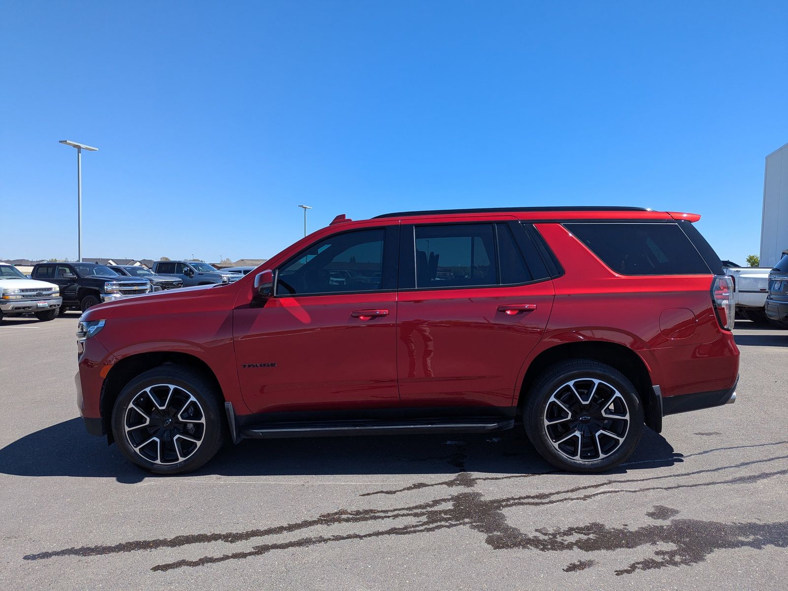 LICENSE PLATE FRONT MOUNTING PACKAGE,SUSPENSION MAGNETIC RIDE CONTROL,LPO MOLDED SPLASH GUARDS (dealer-installed),LUXURY PACKAGE includes (WPD) Driver Alert Package content (UV2) HD Surround Vision (UKK) Rear Pedestrian Alert (A45) memory settings (DXR) outside heated power-adjustable power-folding body-color mirrors with driver-side auto-dimming and integrated turn signal indicators (N38) power tilt and telescopic steering column (KI3) heated steering wheel (KA6) second row outboard heated seats (ATT) second row power 60/40 split-folding bench seats and (AS8) third row power 60/40 split-folding bench seats Also includes (KSG) Adaptive Cruise Control and (UGN) Enhanced Automatic Emergency Braking.,WHEELS 22 X 9 (55.9 CM X 22.9 CM) BRIGHT MACHINED HIGH-GLOSS BLACK PAINTED (Includes (SFE) wheel locks LPO.) (STD),TIRES 275/50R22SL ALL-SEASON BLACKWALL,JET BLACK/VICTORY RED PERFORATED LEATHER SEATING SURFACES 1ST AND 2ND ROW (Interior color has lighter/darker two-tone effect.),AUDIO SYSTEM CHEVROLET INFOTAINMENT 3 PREMIUM SYSTEM WITH GOOGLE BUILT-IN COMPATABILITY (select service plan required terms and limitations apply) including nav capability 10.2 diagonal HD color touchscreen includes multi-touch display AM/FM stereo Bluetooth streaming audio for music and most phones; featuring wireless Apple CarPlay and wireless Android Auto capability for compatible phones advanced voice recognition in-vehicle apps personalized profiles for infotainment and vehicle settings (STD),LPO WHEEL LOCKS SET OF 4 (dealer-installed) (Beginning with start of production through December 1 2023 certain vehicles will be forced to include (RFV) Not Equipped with (SFE) Wheel Locks LPO which removes (SFE) Wheel Locks LPO. See dealer for details or the window label for the features on a specific vehicle. Included with any 22 RPO wheels. Not available with any LPO wheels. Note that LPO 22 wheels will come with wheel locks without the LPO code (SFE).),DRIVER ALERT PACKAGE includes (UKC) Lane Change Alert with Side Blind Zone Alert and (UFG) Rear Cross Traffic Alert,REAR PEDESTRIAN ALERT,SEATS SECOND ROW BUCKET POWER RELEASE,SPORT PERFORMANCE PACKAGE includes (L87) 6.2L EcoTec3 V8 engine (Z95) Magnetic Ride Control and (N10) dual twin polished stainless-steel exhaust tips,STEERING WHEEL HEATED,EXHAUST DUAL SYSTEM with dual twin polished stainless-steel tips,REAR AXLE 3.23 RATIO,REAR CROSS TRAFFIC ALERT,LANE CHANGE ALERT WITH SIDE BLIND ZONE ALERT,MIRRORS OUTSIDE HEATED POWER-ADJUSTABLE POWER-FOLDING DRIVER-SIDE AUTO-DIMMING integrated turn signal indicators and puddle lighting,HD SURROUND VISION,SEATS THIRD ROW 60/40 SPLIT-BENCH POWER FOLDING,REAR SEAT MEDIA SYSTEM includes dual rear seat-mounted 12.6 diagonal color-touch LCD HD screens two Bluetooth headphones with 2 HDMI ports on the back of the center console,ADAPTIVE CRUISE CONTROL,SUNROOF POWER PANORAMIC DUAL-PANE TILT-SLIDING with express-open and close and power sunshade,ENHANCED AUTOMATIC EMERGENCY BRAKING,STEERING COLUMN POWER TILT AND TELESCOPIC,LPO ALL-WEATHER FLOOR LINERS 1ST 2ND AND 3RD ROWS (dealer-installed),MEMORY SETTINGS RECALLS 2 DRIVER PRESETS FOR POWER DRIVER SEAT OUTSIDE REARVIEW MIRRORS AND POWER AND TILT AND TELESCOPIC STEERING COLUMN,RST PREFERRED EQUIPMENT GROUP includes standard equipment,GVWR 7500 LBS. (3402 KG) (STD),TRANSMISSION 10-SPEED AUTOMATIC electronically controlled with overdrive includes Traction Select System including tow/haul (STD),SEATS FRONT BUCKET (STD),RADIANT RED TINTCOAT,SEATS HEATED SECOND ROW OUTBOARD SEATS,ENGINE 6.2L ECOTEC3 V8 with Dynamic Fuel Management Direct Injection and Variable Valve Timing includes aluminum block construction (420 hp [313 kW] @ 5600 rpm 460 lb-ft of torque [624 Nm] @ 4100 rpm),Lane Departure Warning,Lane Keeping Assist,Front Collision Mitigation,Front Collision Warning,Automatic Highbeams,Immobilizer,Keyless Start,Locking/Limited Slip Differential,Four Wheel Drive,Tow Hitch,Power Steering,ABS,4-Wheel Disc Brakes,Aluminum Wheels,Wheel Locks,Tires - Front Performance,Tires - Rear Performance,Conventional Spare Tire,Conventional Spare Tire,Luggage Rack,Running Boards/Side Steps,Automatic Highbeams,Heated Mirrors,Power Mirror(s),Privacy Glass,Intermittent Wipers,Variable Speed Intermittent Wipers,Rain Sensing Wipers,Intermittent Wipers,Remote Trunk Release,Power Liftgate,AM/FM Stereo,MP3 Capability,Bluetooth Connection,Auxiliary Audio Input,Smart Device Integration,Premium Sound System,MP3 Capability,Bluetooth Connection,Auxiliary Audio Input,Navigation System,Satellite Radio,Requires Subscription,Bluetooth Connection,Bluetooth Connection,Smart Device Integration,WiFi Hotspot,Leather Seats,Power Driver Seat,Power Passenger Seat,Driver Adjustable Lumbar,Passenger Adjustable Lumbar,Heated Front Seat(s),Pass-Through Rear Seat,Rear Bench Seat,3rd Row Seat,Floor Mats,Adjustable Steering Wheel,Cruise Control,Steering Wheel Audio Controls,Front Collision Warning,Power Door Locks,Keyless Entry,Power Door Locks,Remote Engine Start,Cruise Control,Universal Garage Door Opener,Security System,MP3 Capability,Auxiliary Audio Input,Power Windows,Power Windows,Power Windows,Seat Memory,Climate Control,Multi-Zone A/C,A/C,Rear A/C,A/C,Rear A/C,Rear Defrost,Auto-Dimming Rearview Mirror,Driver Vanity Mirror,Passenger Vanity Mirror,Driver Illuminated Vanity Mirror,Passenger Illuminated Visor Mirror,Front Collision Mitigation,Front Collision Warning,Traction Control,Stability Control,Brake Assist,Daytime Running Lights,Driver Air Bag,Passenger Air Bag,Front Side Air Bag,Front Head Air Bag,Rear Head Air Bag,Passenger Air Bag Sensor,Telematics,Requires Subscription,Rear Parking Aid,Back-Up Camera,Front Collision Mitigation,Lane Departure Warning,Lane Keeping Assist,Front Collision Warning,Child Safety Locks,Driver Restriction Features,Tire Pressure Monitor
