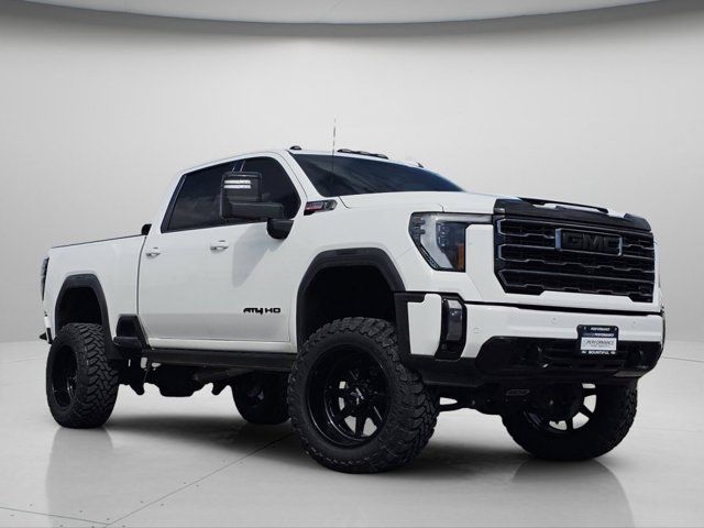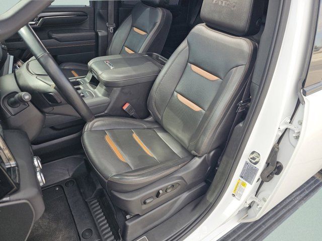 REAR AXLE 3.42 RATIO,EXHAUST BRAKE,MULTIPRO AUDIO SYSTEM BY KICKER,TIRES LT275/65R20 ALL-TERRAIN BLACKWALL (STD),LPO HITCH PACKAGE Gooseneck ball and chain tiedown kit with case (dealer-installed),GVWR 11 350 LBS. (5148 KG),LICENSE PLATE KIT FRONT INCANDESCENT LIGHTING (will be forced on orders with ship-to states that require front license plate),TECHNOLOGY PACKAGE includes (DRZ) Rear Camera Mirror and (UV6) Multicolor 15 Diagonal Head-Up Display,ADAPTIVE CRUISE CONTROL,REAR CAMERA MIRROR inside rearview auto-dimming with full camera display,LPO GMC MULTIPRO TAILGATE STEP LIGHTS (dealer-installed),LPO CONSOLE-MOUNTED SAFE (dealer-installed),LAMPS SMOKED AMBER ROOF MARKER (LED),WINDOW POWER REAR SLIDING WITH REAR DEFOGGER,GOOSENECK / 5TH WHEEL PREP PACKAGE -- HITCH PLATFORM TO ACCEPT GOOSENECK OR 5TH WHEEL HITCH. Includes hitch platform with tray to accept ball stamped bed holes with removable caps installed and bed mounted 7-pin trailer harness (similar to UY2 harness).,AUDIO SYSTEM 13.4 DIAGONAL PREMIUM GMC INFOTAINMENT SYSTEM WITH GOOGLE BUILT IN APPS SUCH AS NAVIGATION AND VOICE ASSISTANCE includes color touch-screen multi-touch display AM/FM stereo Bluetooth streaming audio for music and most phones; featuring wireless Android Auto and Apple CarPlay capability for compatible phones (STD),WHEELS 20 (50.8 CM) HIGH GLOSS BLACK ALUMINUM WHEELS 8 spokes (STD),SUNROOF POWER,SEATS FRONT BUCKET with center console (STD),AT4 PREMIUM PLUS PACKAGE includes (PDO) AT4 Preferred Package (CF5) power sunroof (CWM) Technology Package and (VXW) AT4 high clearance step LPO,AT4 PREFERRED EQUIPMENT GROUP includes standard equipment,LPO CARGO CONVENIENCE PACKAGE includes (S1O) Console-Mounted Safe LPO and (VBJ) rear under seat storage LPO (dealer-installed),WINTER GRILLE COVER,ENGINE BLOCK HEATER,LPO REAR UNDERSEAT STORAGE composite storage bin includes lockable lid (dealer-installed),ALTERNATOR 220 AMP,SUMMIT WHITE,ASSIST STEPS POWER RETRACTABLE BLACK includes LED lighting,TRANSMISSION ALLISON 10-SPEED AUTOMATIC,AT4 PREFERRED PACKAGE includes (UG1) Universal Home Remote (A48) rear sliding power window (U01) Roof Marker Lamps and (KSG) adaptive Cruise Control,MULTICOLOR 15 DIAGONAL HEAD-UP DISPLAY,ENGINE DURAMAX 6.6L TURBO-DIESEL V8 B20-DIESEL COMPATIBLE (470 hp [350.5 kW] @ 2800 rpm 975 lb-ft of torque [1322 Nm] @ 1600 rpm) (Includes (K05) engine block heater.),JET BLACK WITH KALAHARI ACCENTS PERFORATED FRONT LEATHER SEAT TRIM,UNIVERSAL HOME REMOTE,Lane Departure Warning,Front Collision Mitigation,Front Collision Warning,Automatic Highbeams,Tow Hitch,Running Boards/Side Steps,Keyless Start,Locking/Limited Slip Differential,Four Wheel Drive,Tow Hooks,Power Steering,ABS,4-Wheel Disc Brakes,Aluminum Wheels,Tires - Front All-Terrain,Tires - Rear All-Terrain,Conventional Spare Tire,Bed Liner,Daytime Running Lights,Automatic Highbeams,Fog Lamps,Heated Mirrors,Power Mirror(s),Integrated Turn Signal Mirrors,Power Folding Mirrors,Privacy Glass,Intermittent Wipers,Variable Speed Intermittent Wipers,Rain Sensing Wipers,Integrated Tailgate Step,AM/FM Stereo,Navigation System,MP3 Capability,Bluetooth Connection,Auxiliary Audio Input,Smart Device Integration,Satellite Radio,Requires Subscription,Satellite Radio,Requires Subscription,Premium Sound System,Bluetooth Connection,Bluetooth Connection,Smart Device Integration,WiFi Hotspot,Bucket Seats,Leather Seats,Rear Bench Seat,Power Driver Seat,Driver Adjustable Lumbar,Power Passenger Seat,Passenger Adjustable Lumbar,Heated Front Seat(s),Heated Front Seat(s),Cooled Front Seat(s),Heated Rear Seat(s),Mirror Memory,Seat Memory,Floor Mats,Floor Mats,Heated Steering Wheel,Steering Wheel Audio Controls,Adjustable Steering Wheel,Power Windows,Power Windows,Power Windows,Power Door Locks,Keyless Entry,Power Door Locks,Keyless Start,Remote Engine Start,Cruise Control,Security System,MP3 Capability,Auxiliary Audio Input,MP3 Capability,Auxiliary Audio Input,Climate Control,Multi-Zone A/C,A/C,Rear Defrost,Auto-Dimming Rearview Mirror,Front Collision Mitigation,Front Collision Mitigation,Front Collision Warning,Traction Control,Stability Control,Daytime Running Lights,Daytime Running Lights,Driver Air Bag,Passenger Air Bag,Front Side Air Bag,Front Head Air Bag,Rear Head Air Bag,Passenger Air Bag Sensor,Telematics,Requires Subscription,Rear Parking Aid,Back-Up Camera,Aerial View Display System,Back-Up Camera,Front Collision Warning,Lane Departure Warning,Cross-Traffic Alert,Blind Spot Monitor,Driver Restriction Features,Tire Pressure Monitor,Telematics,Requires Subscription