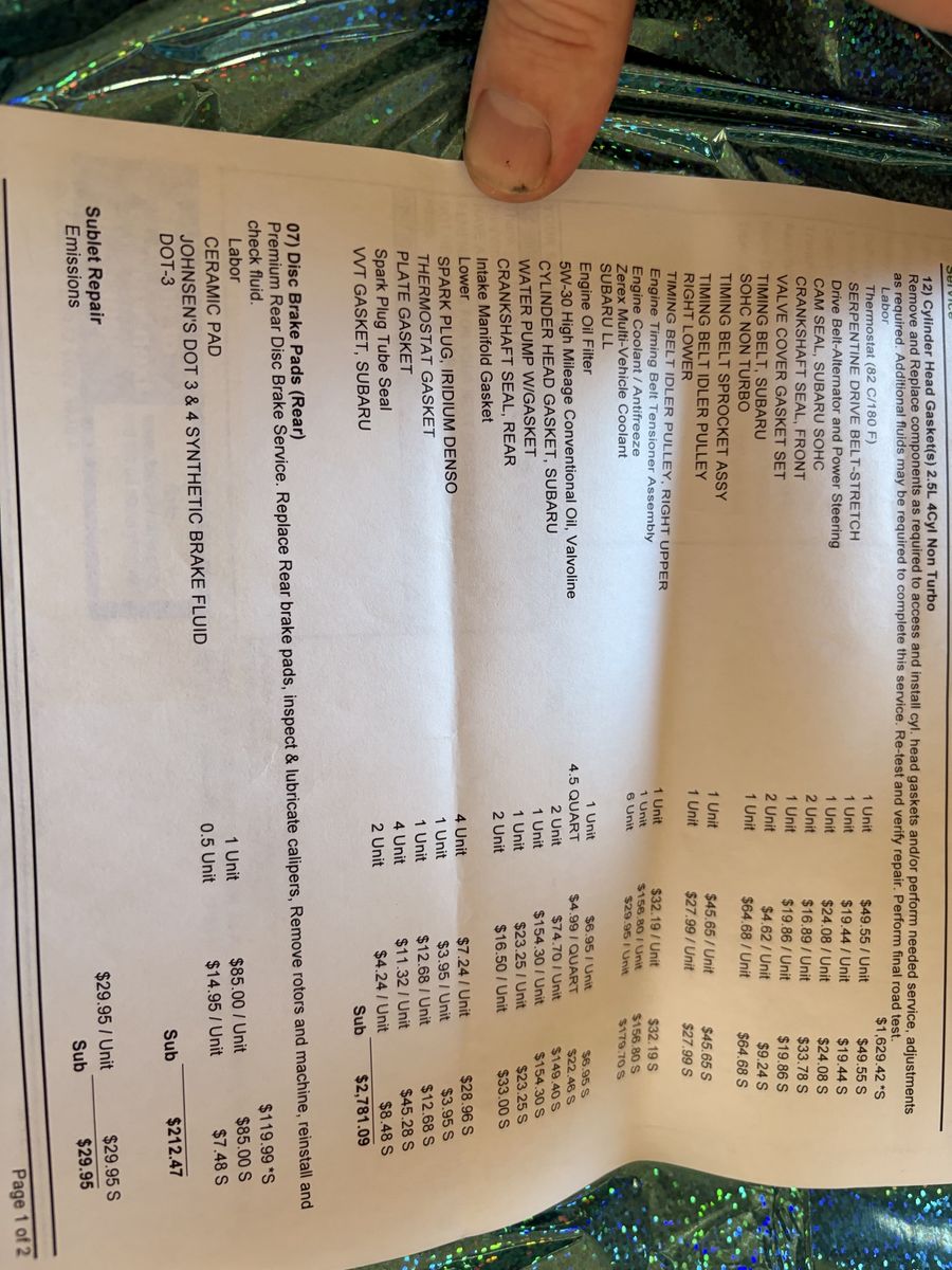 Major $3200 service done at 105k (gaskets, timing belt, brakes and MUCH MORE - details in pictures)