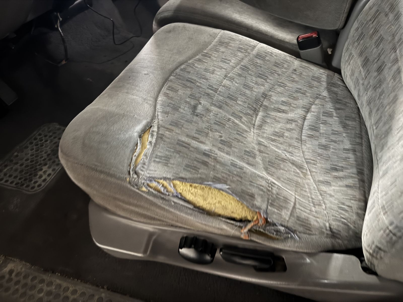 The bad: driver seat torn, center armrest torn, console latch broken, speedometer doesn’t work though odometer does, passenger window needs motor/regulator, passenger door won’t unlock from outside, suspension rides just okay, and body rust in two spots. Paint still shines up well, but it has scratches and dents. It’s loud, slow, thirsty, and rides like a truck.
