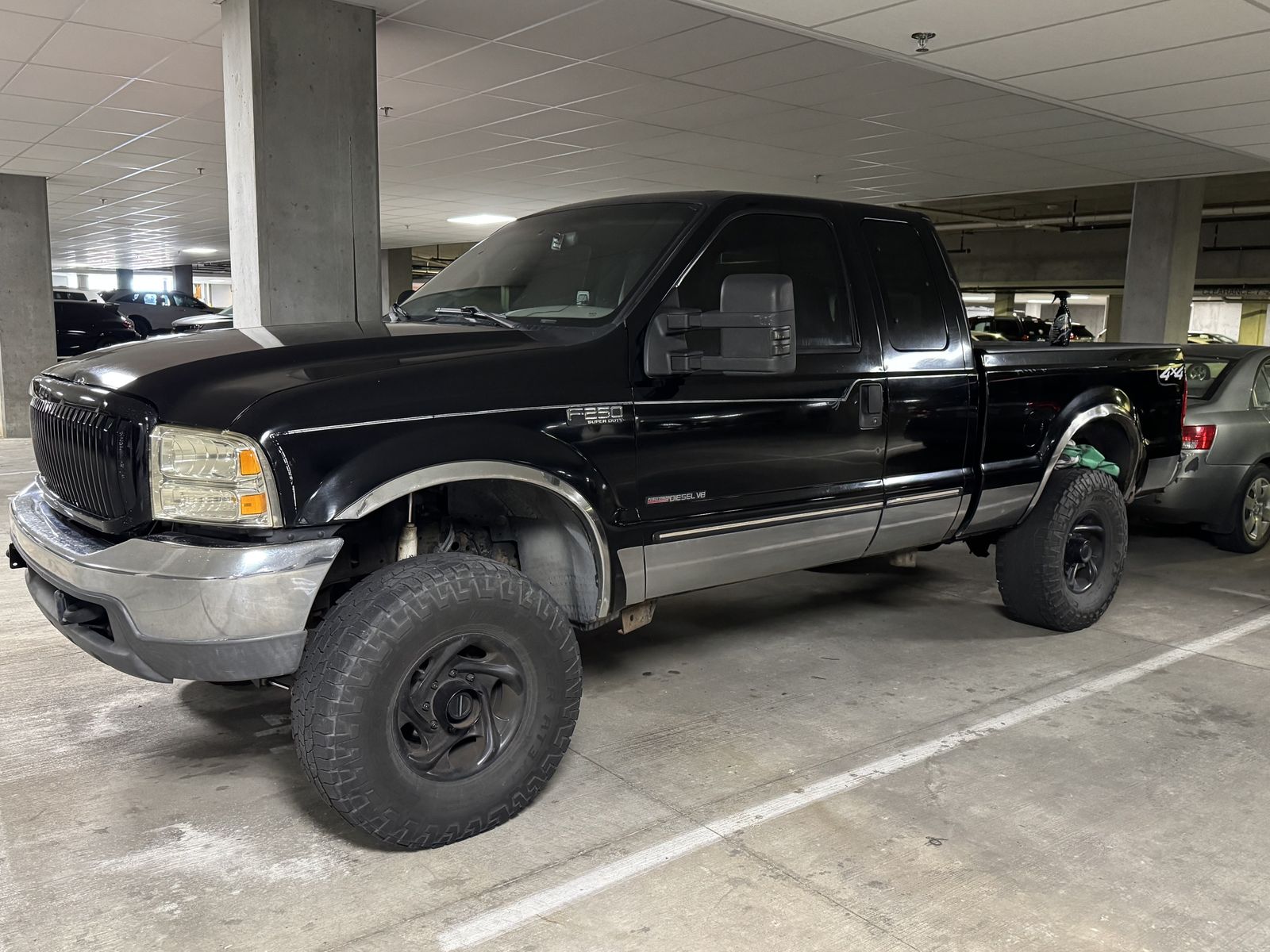 Built late 1999. Clean-title F-250 Super Duty XLT, crew cab, long bed, 4WD, 7.3 Powerstroke turbo diesel, 4R100 automatic, around 258k miles.