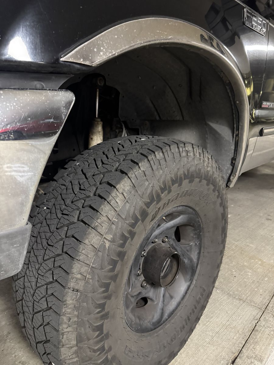 Major recent work includes upgraded transmission with cooler, full steering assembly, brakes/master cylinder, alternator, batteries, charging system wiring, high-pressure oil system overhaul, glow plugs, fuel/injector service, rear main seal, valve cover gaskets, injector harness, belt and pulleys. It also has newer 35” Hankook Dynapro AT2 tires, an older 4” lift, upgraded lights, JVC head unit, and Kicker speakers.