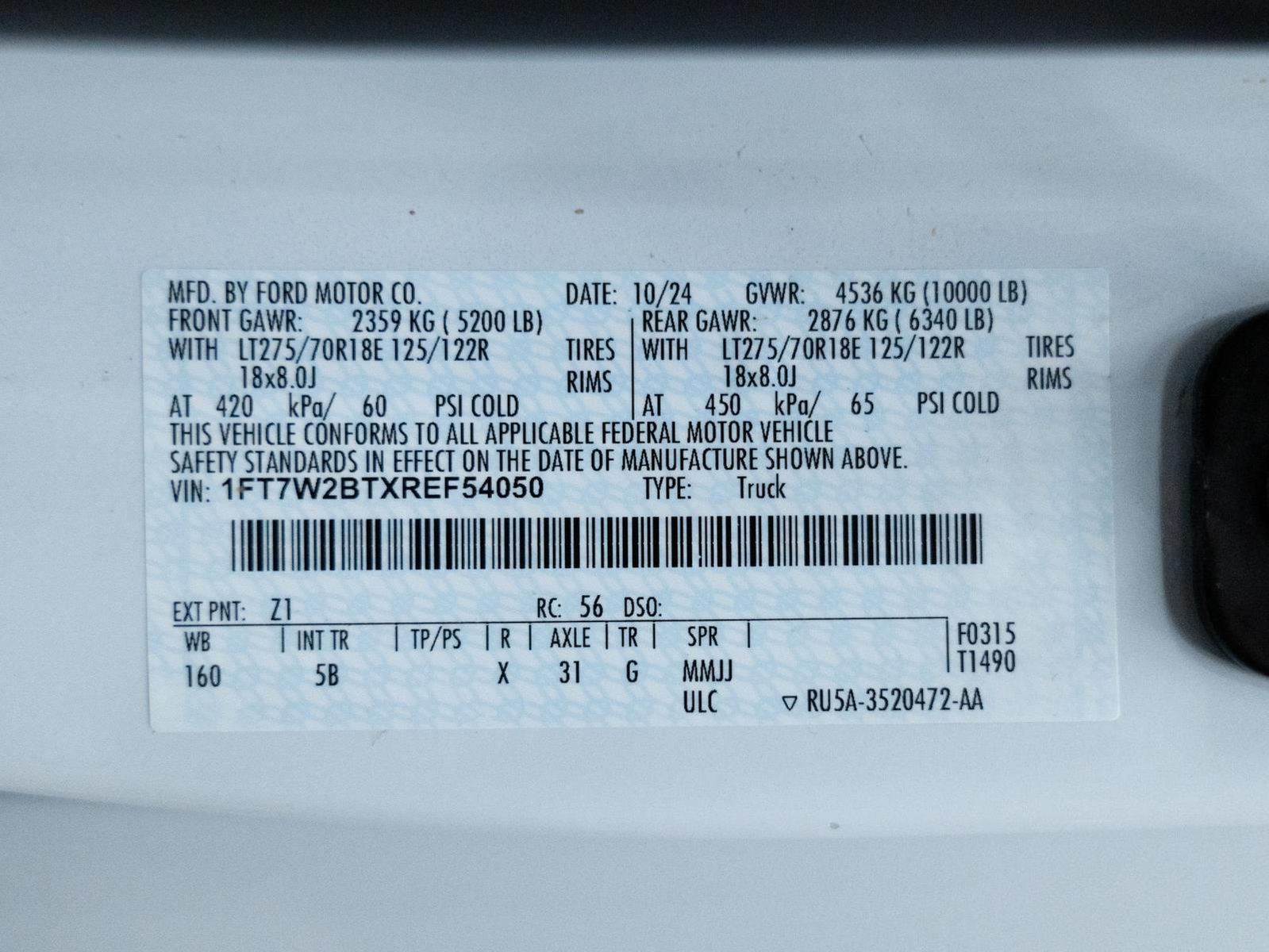 ENGINE: 6.7L 4V OHV POWER STROKE V8 TURBO DIESEL B20, OXFORD WHITE